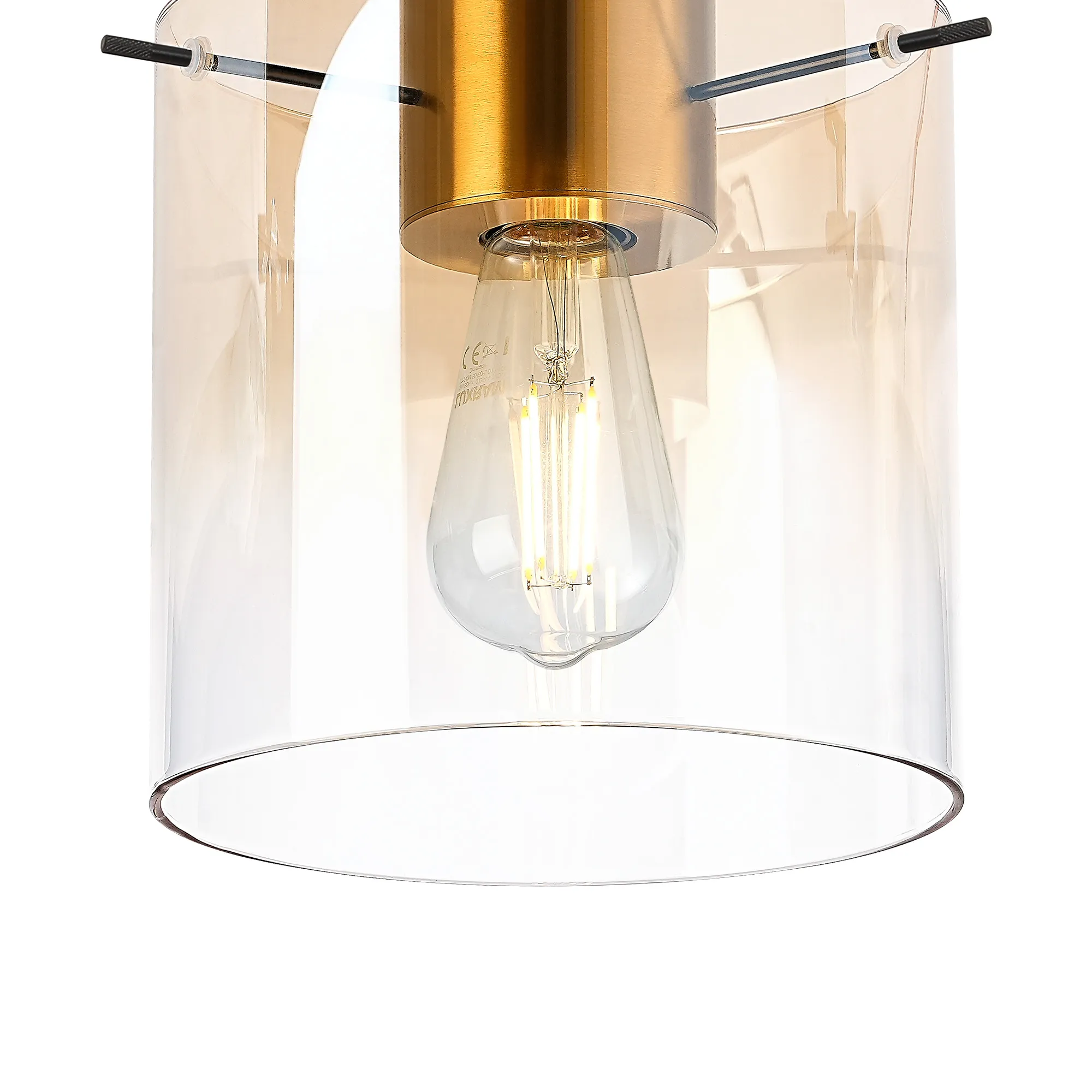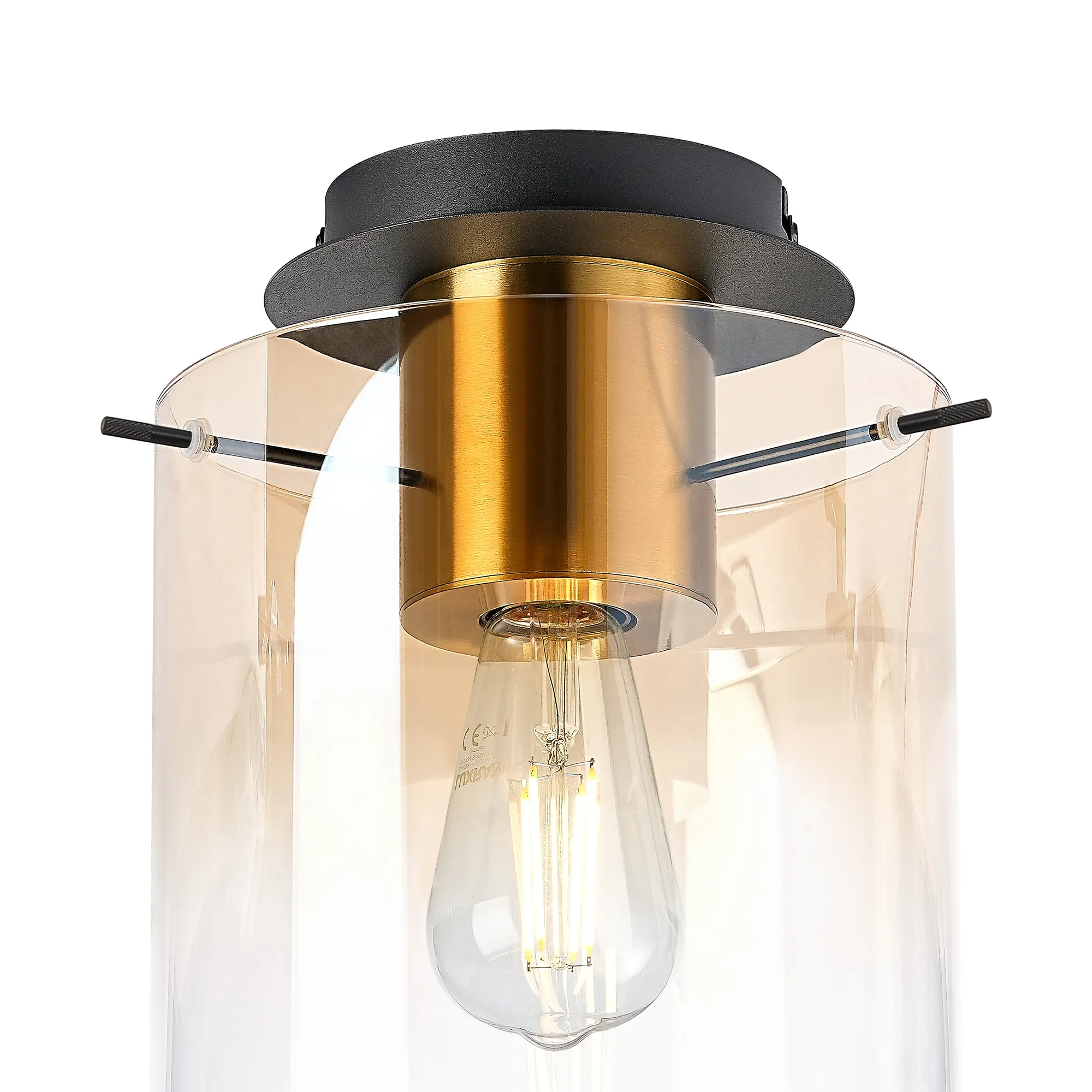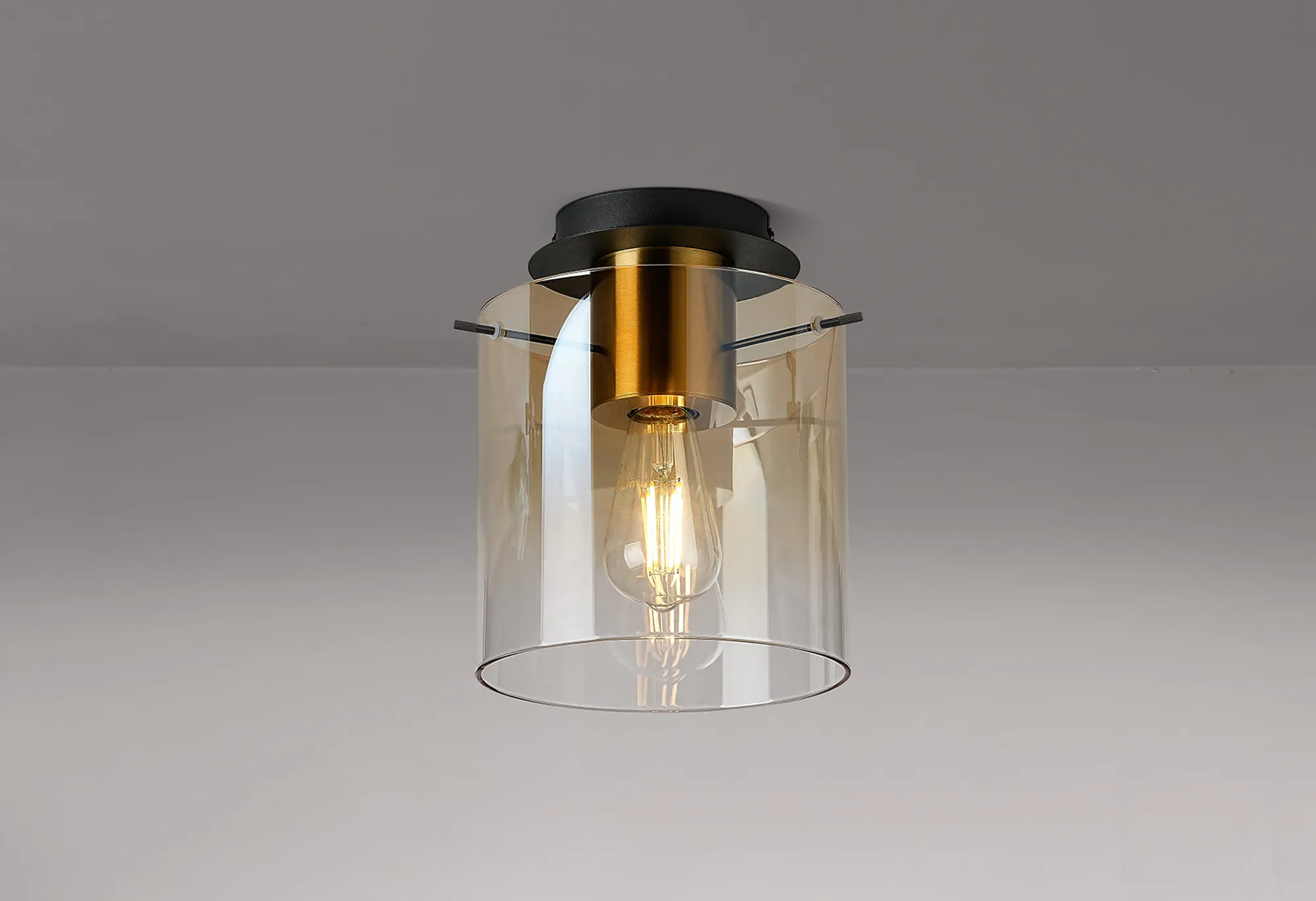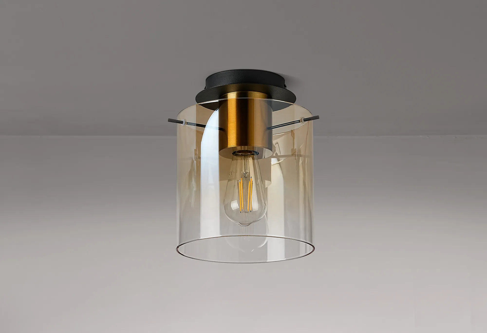 OTHER Mangere 20cm Round Ceiling Flush, 1 Light Flush Fitting E27, Brass/Sand Black/Amber Fade Glass