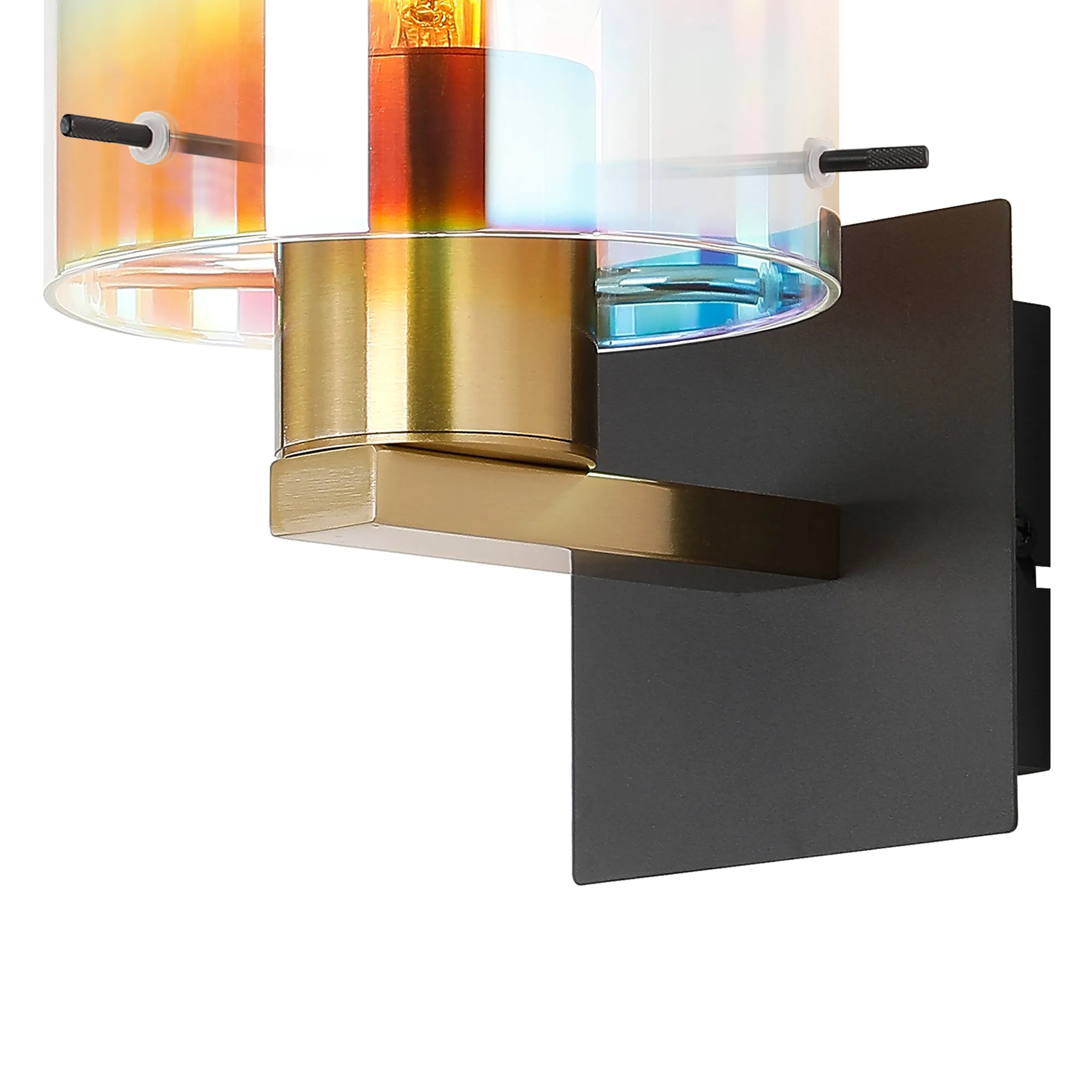 Mangere 80cm Round Pendant, 9 Light Adjustable E27, Brass/Sand Black/Iridescent Fade Glass Item Weight: 22kg