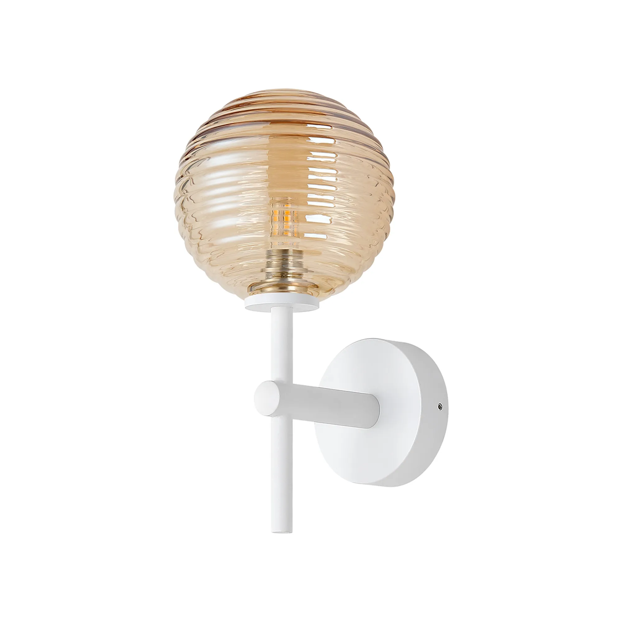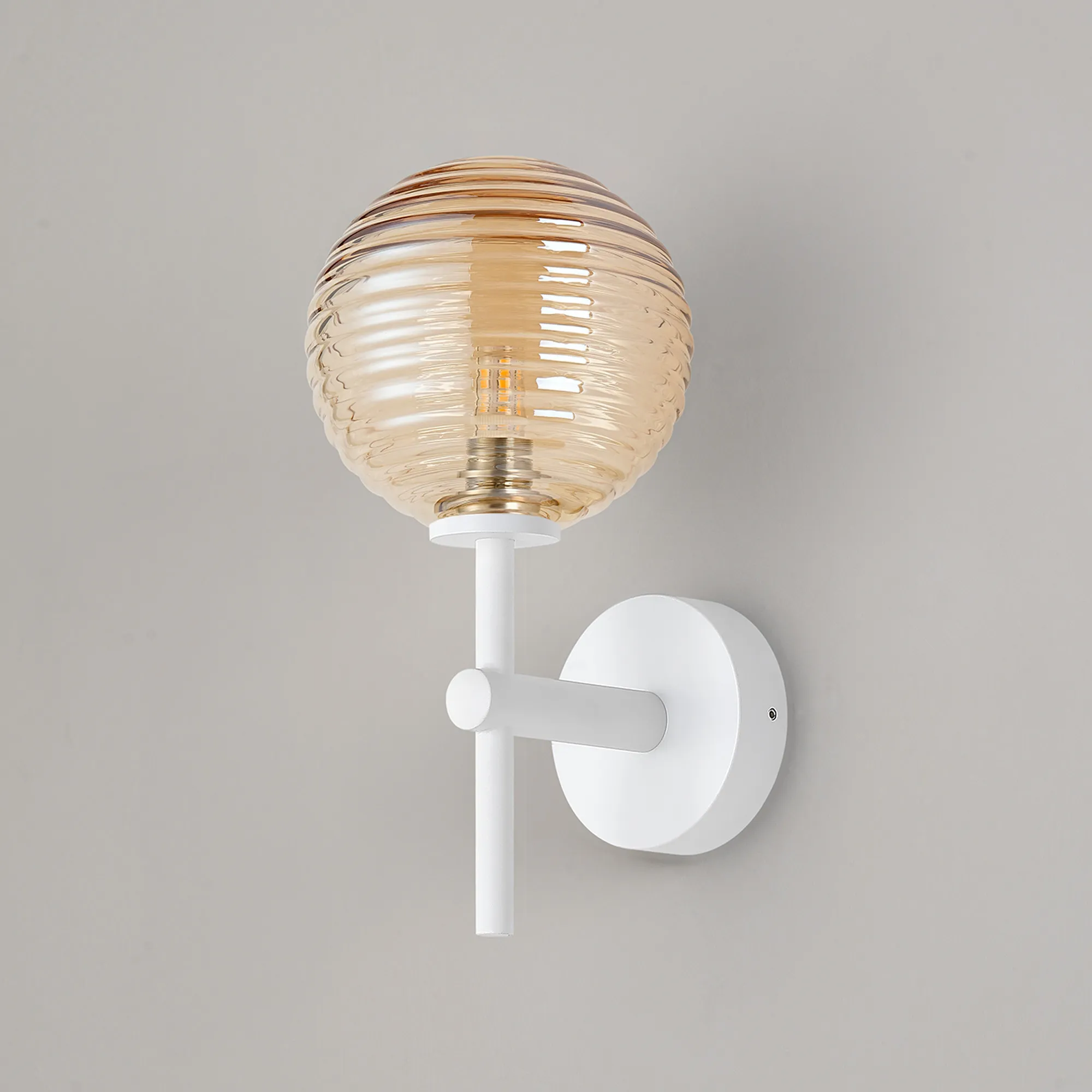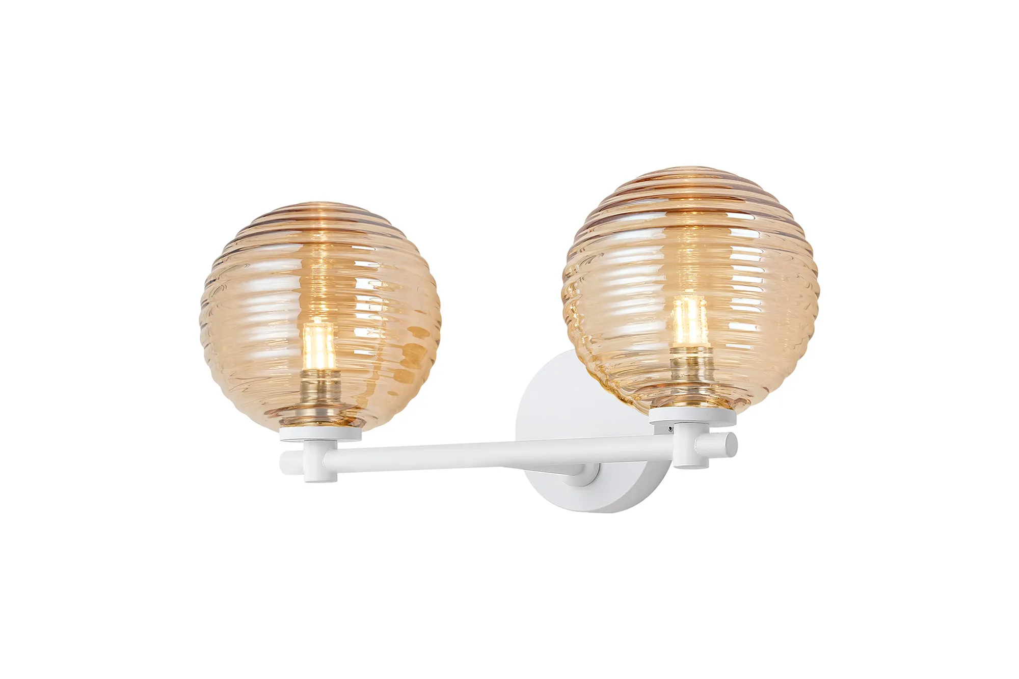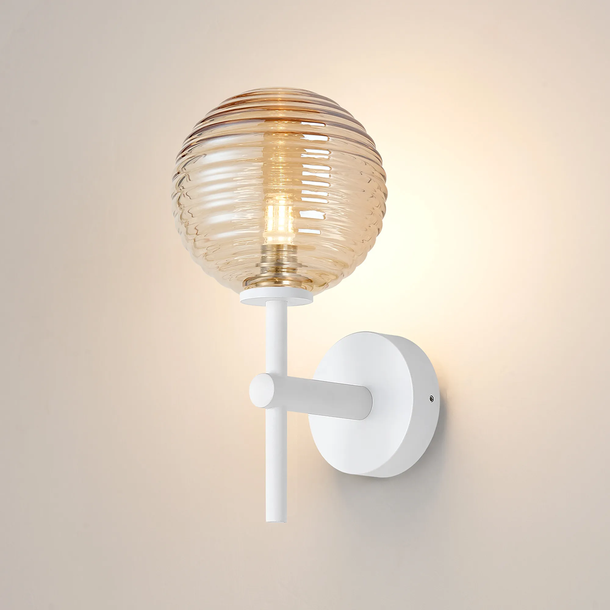 OTHER Nova Medium Arm Wall Light, 1 Light G9, IP44, Satin White/Amber Ribbed Round Glass
