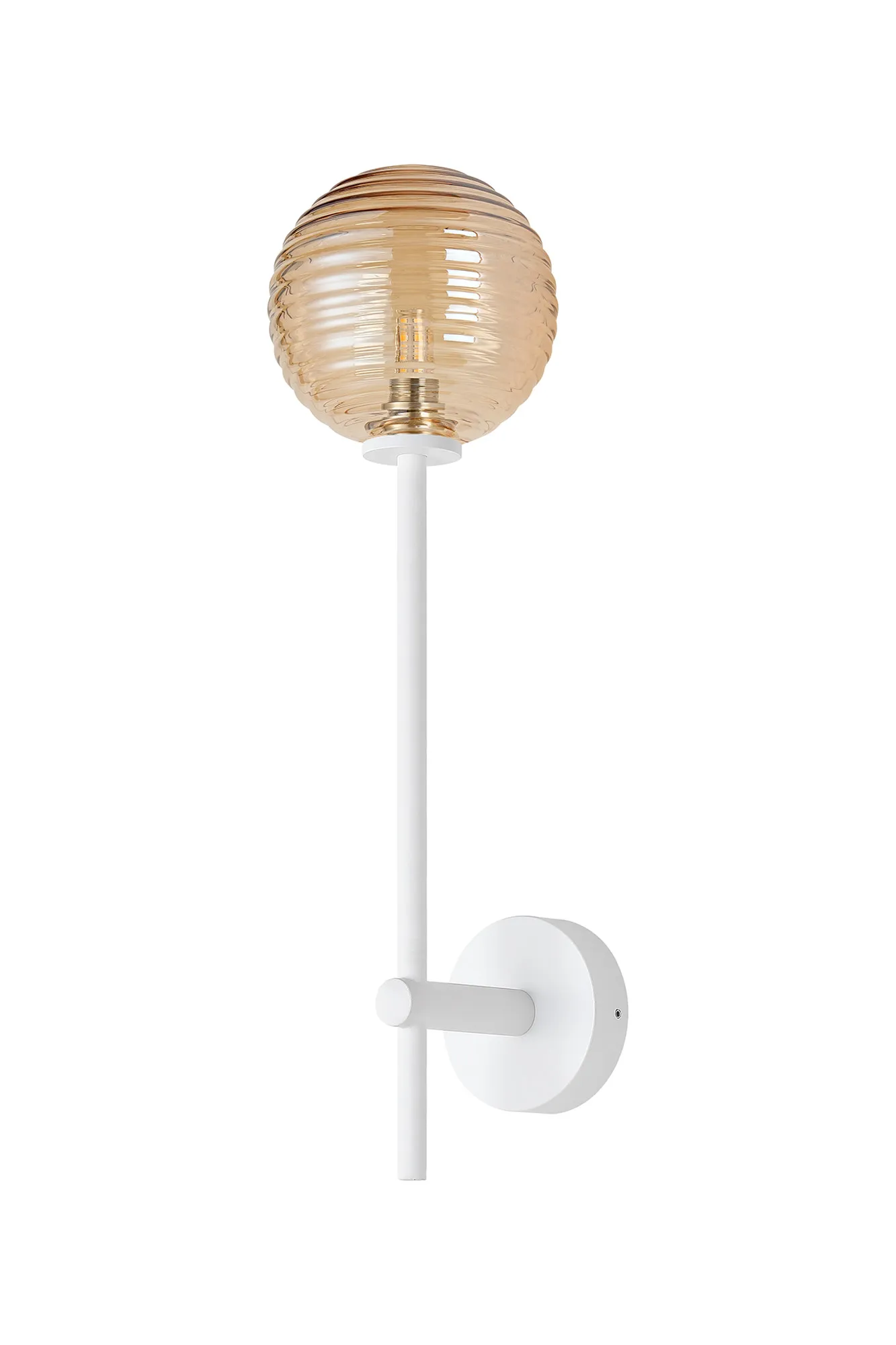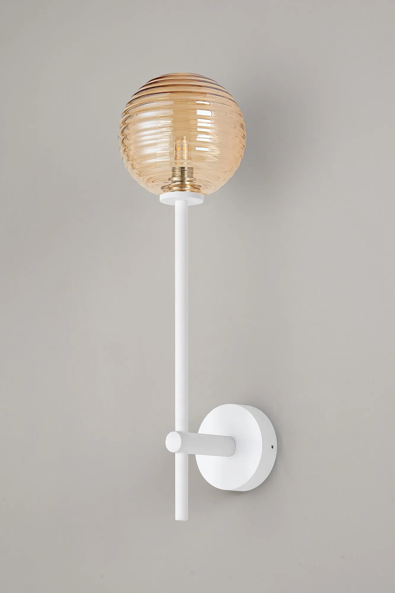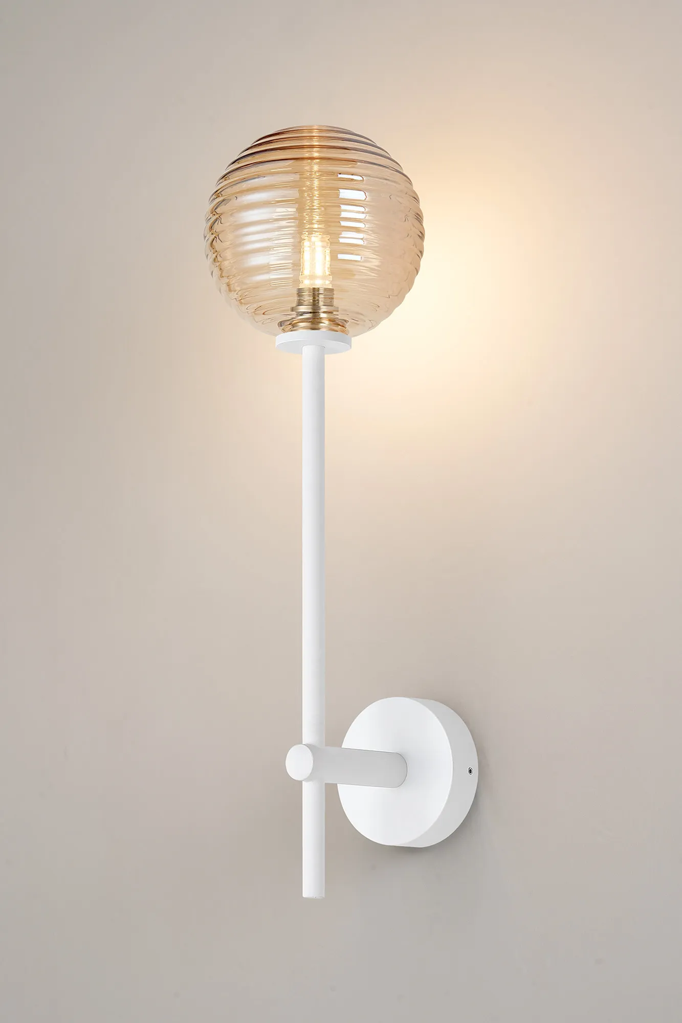 OTHER Nova Tall Arm Wall Light, 1 Light G9, IP44, Satin White/Amber Ribbed Round Glass