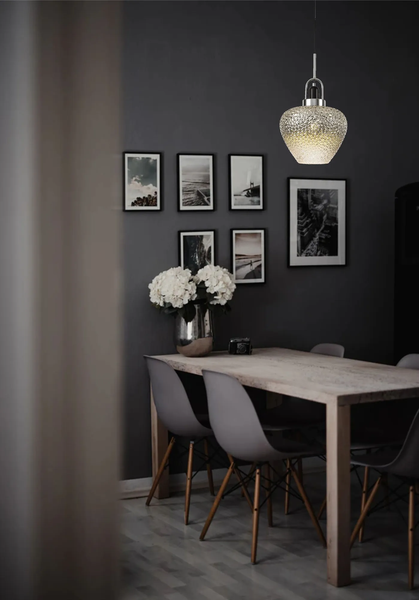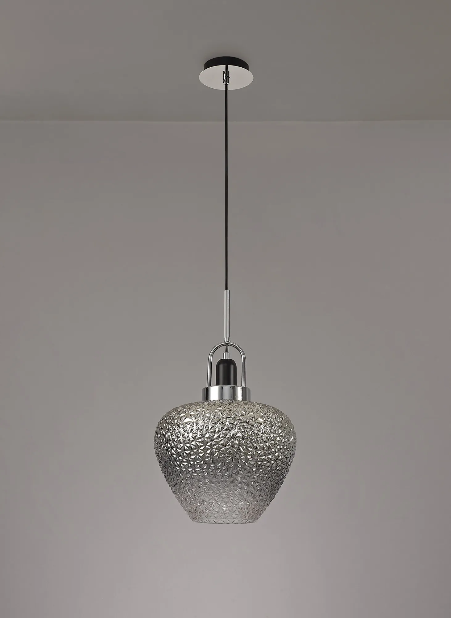 Roskill Pendant, 1 x E27, Black Smoke Plated & Clear/Polished Chrome
