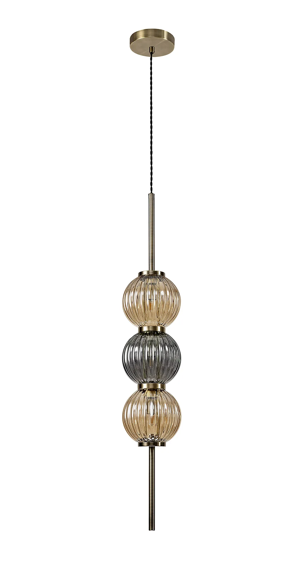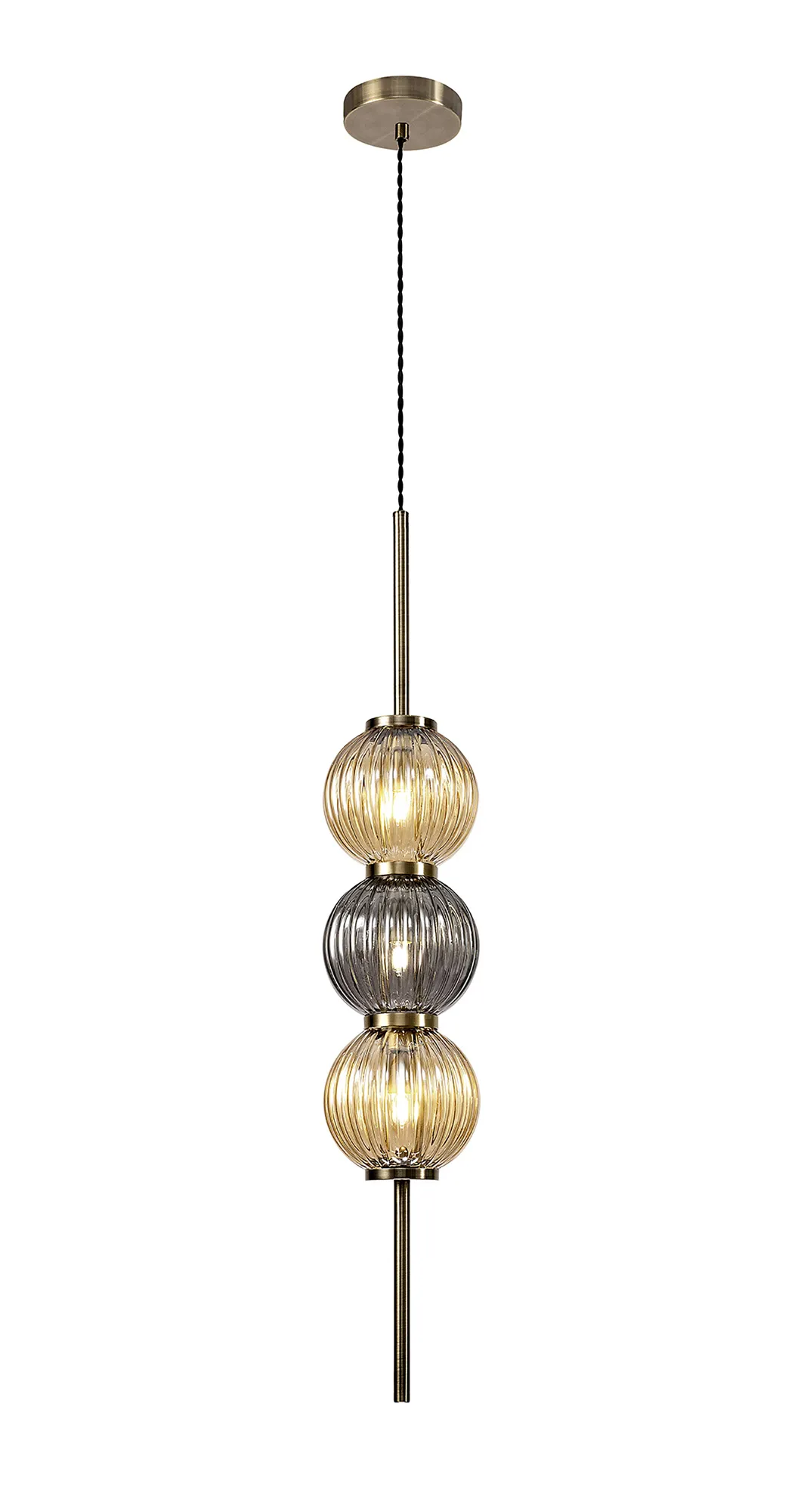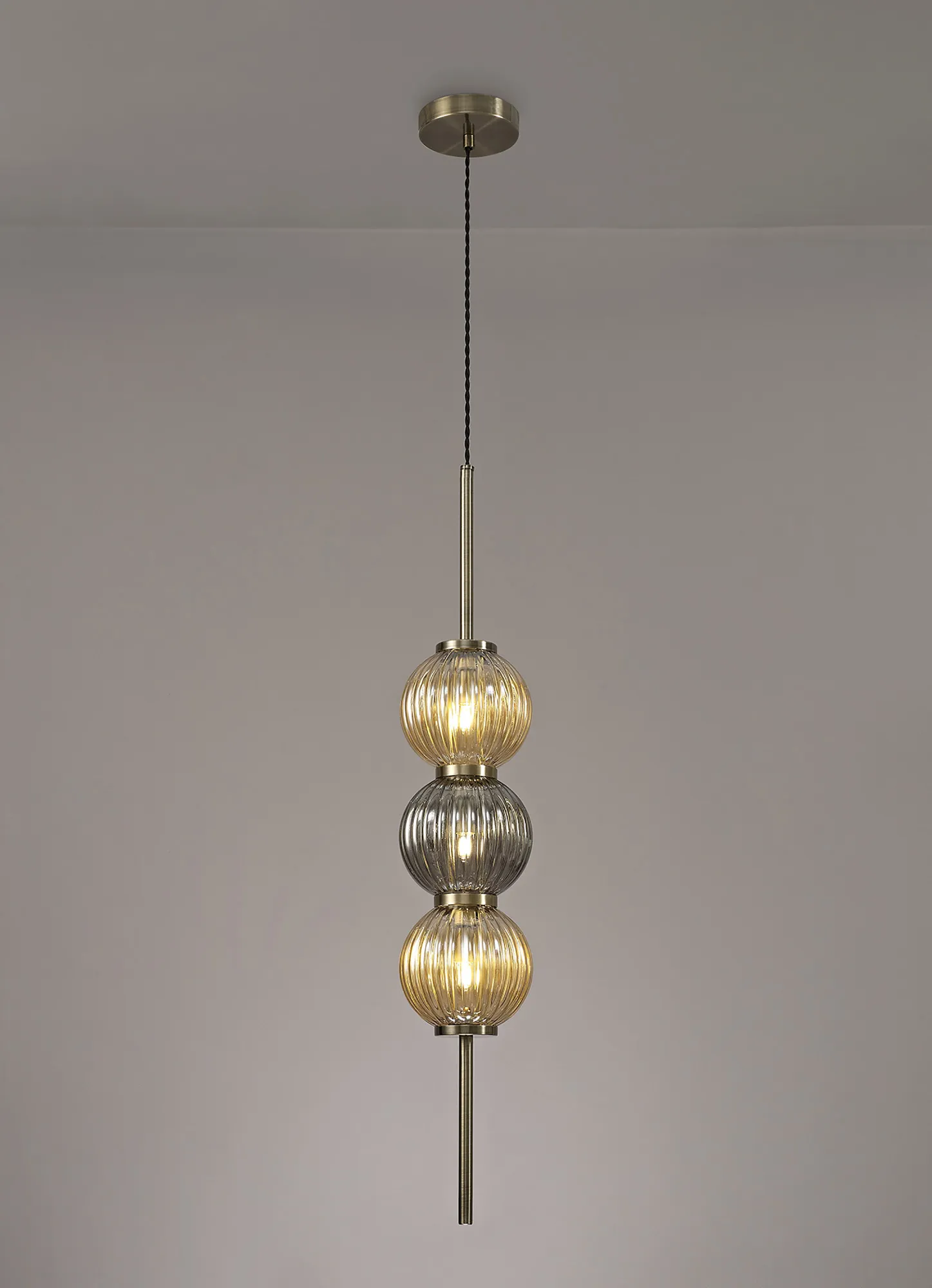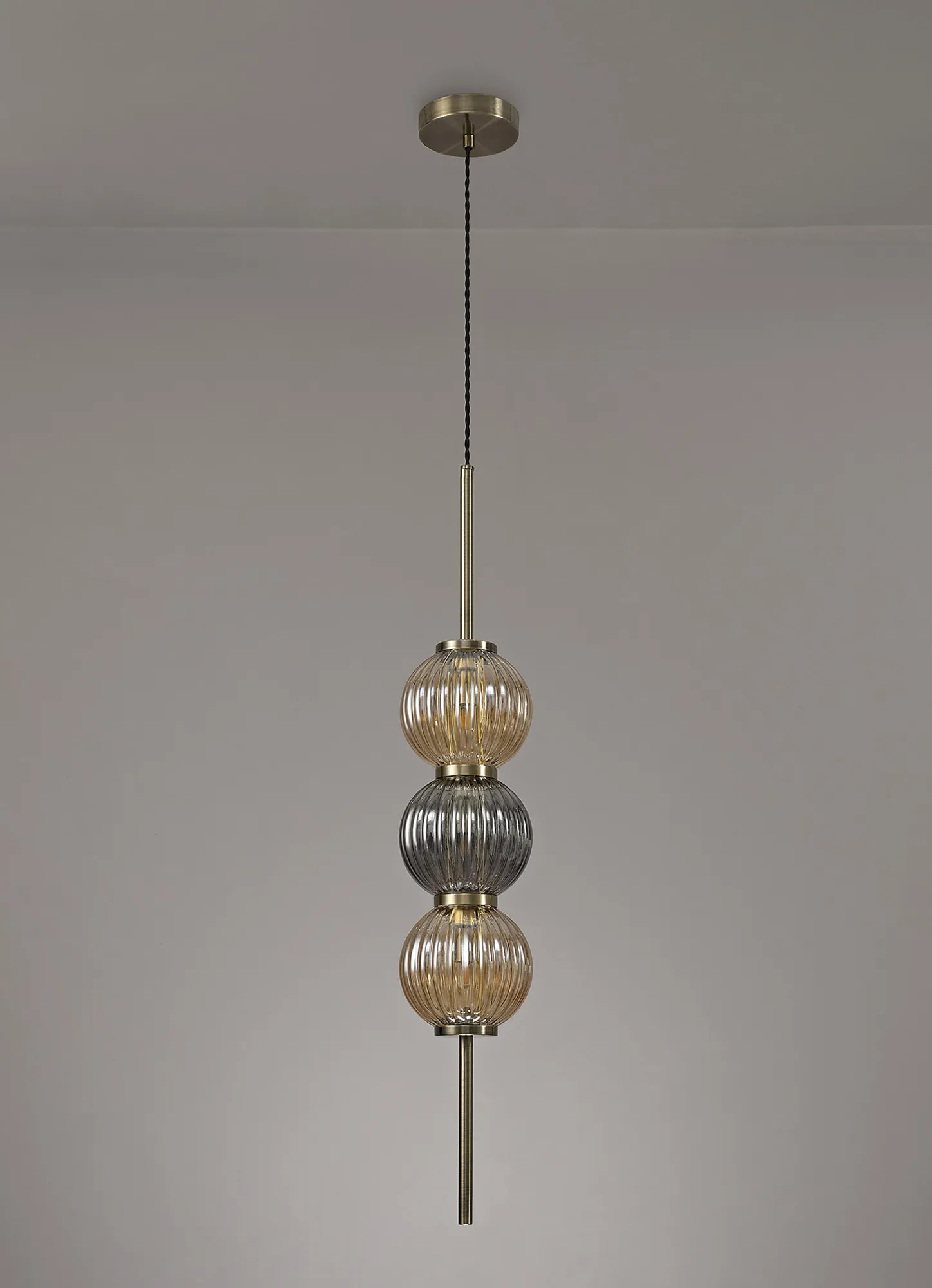 OTHER Leigh Pendant, 3 x G9, Antique Brass/Smoked & Amber Glass