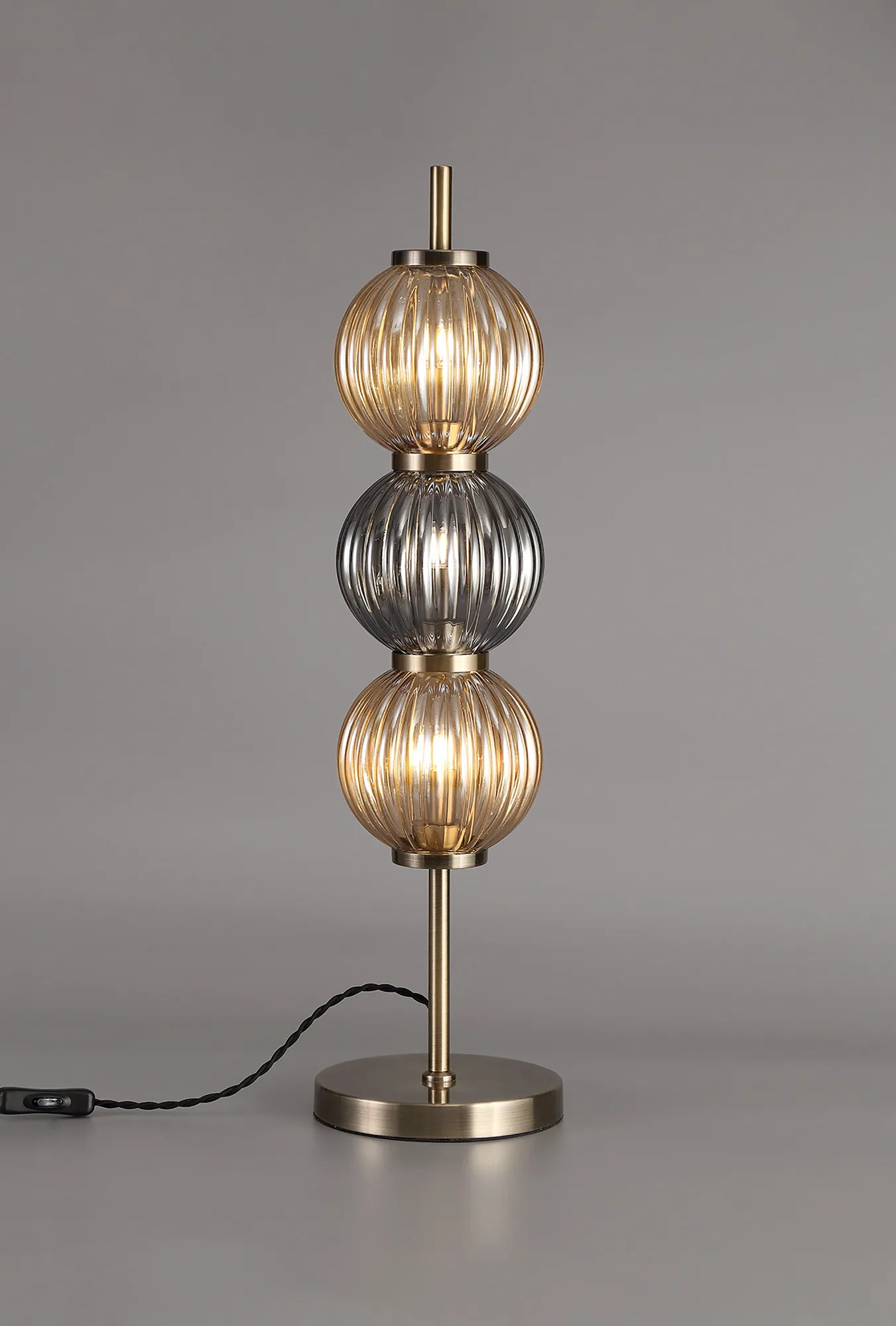 OTHER Leigh Table Lamp, 3 x G9, Antique Brass/Smoked & Amber Glass