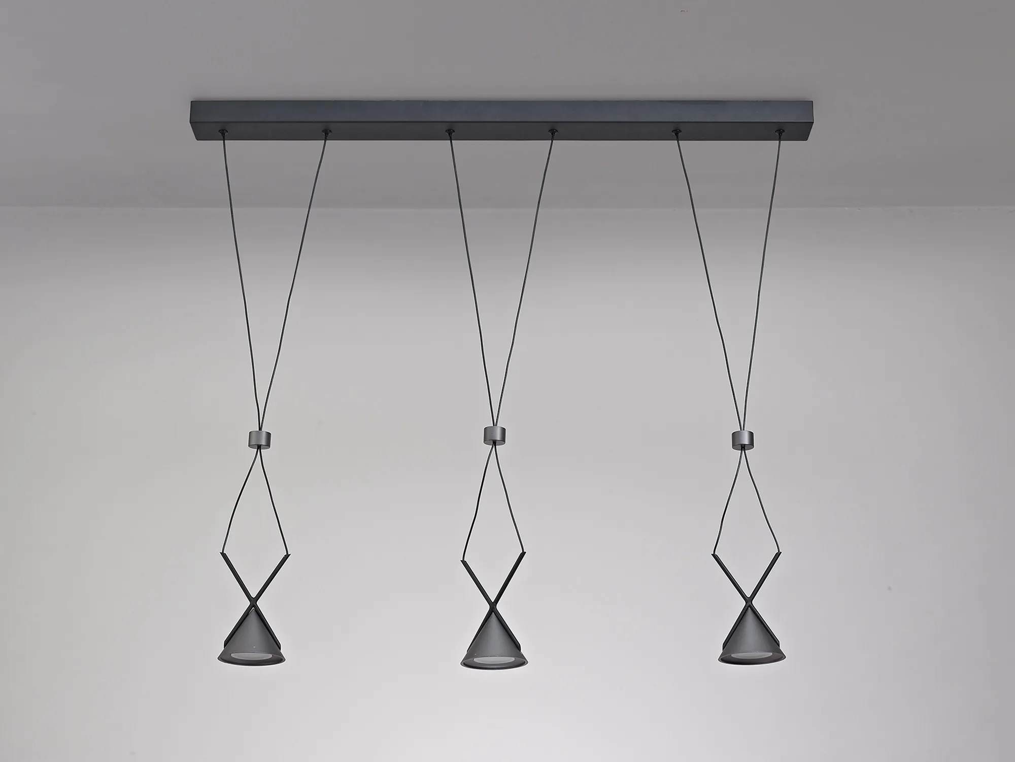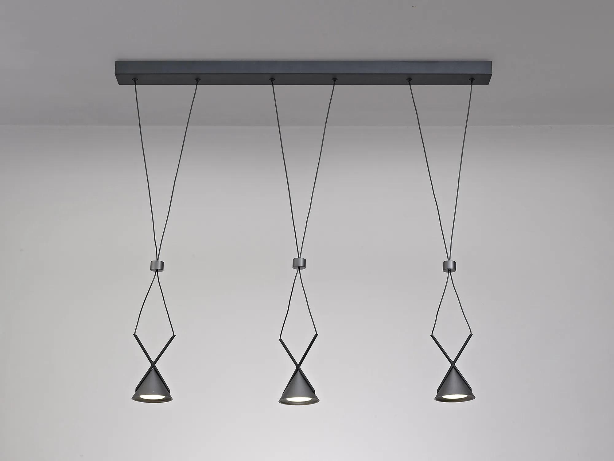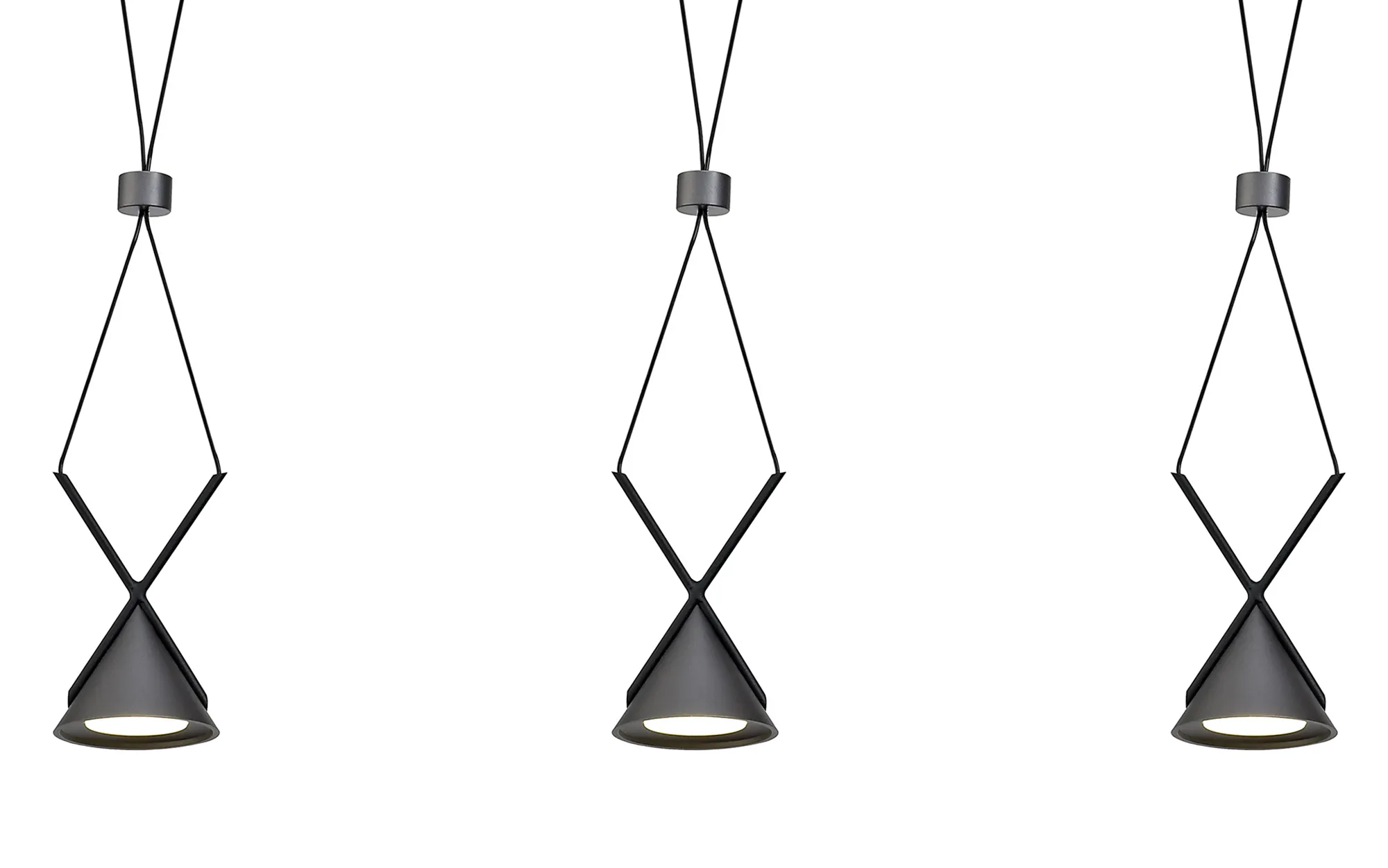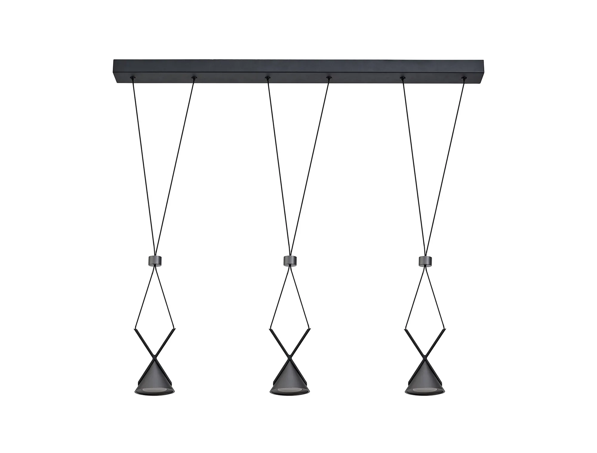 Auckland is a modern collection that uses a theme of triangular shapes, this range sits small cone shades which house the integral LEDs inside the bottom of a cross shape. The two suspension cables for each shade are held together by a small cylinder that can be slid along the cables to create shapes along the drop that seamlessly coordinate with the style of the frame. The three light linear pendant is perfect for use in a modern kitchen or dining room to be set above a table or worktop whilst the single pendant and wall lamps can be used to build feature in a living area.