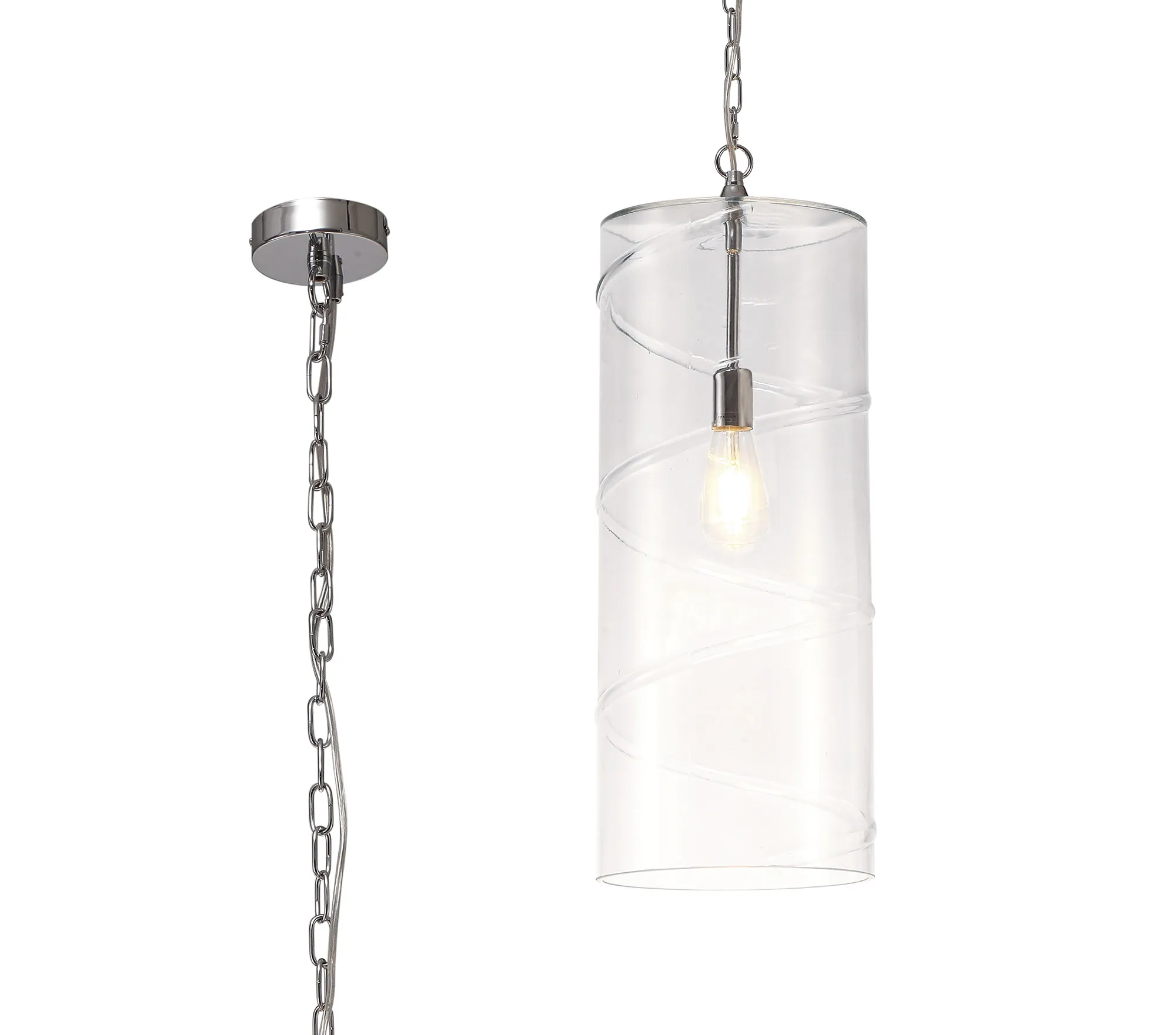 Ramsay Glass Cylinder Pendant, 1 x E27, Polished Chrome/Clear