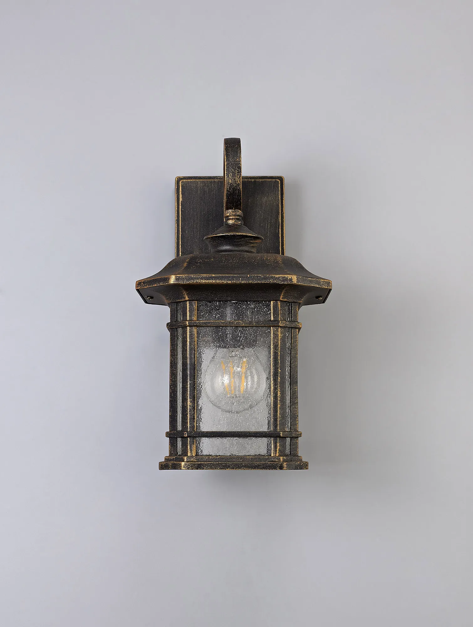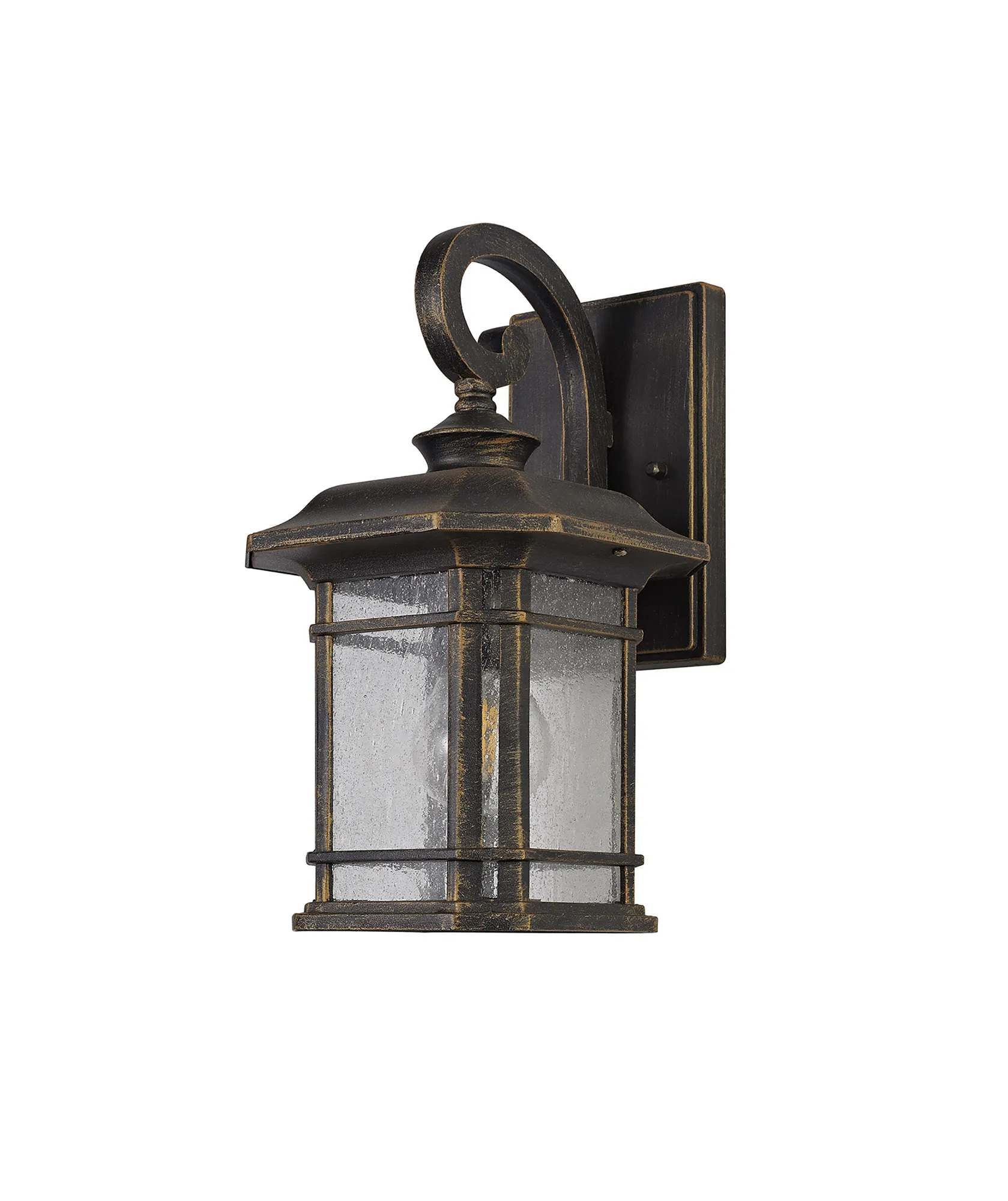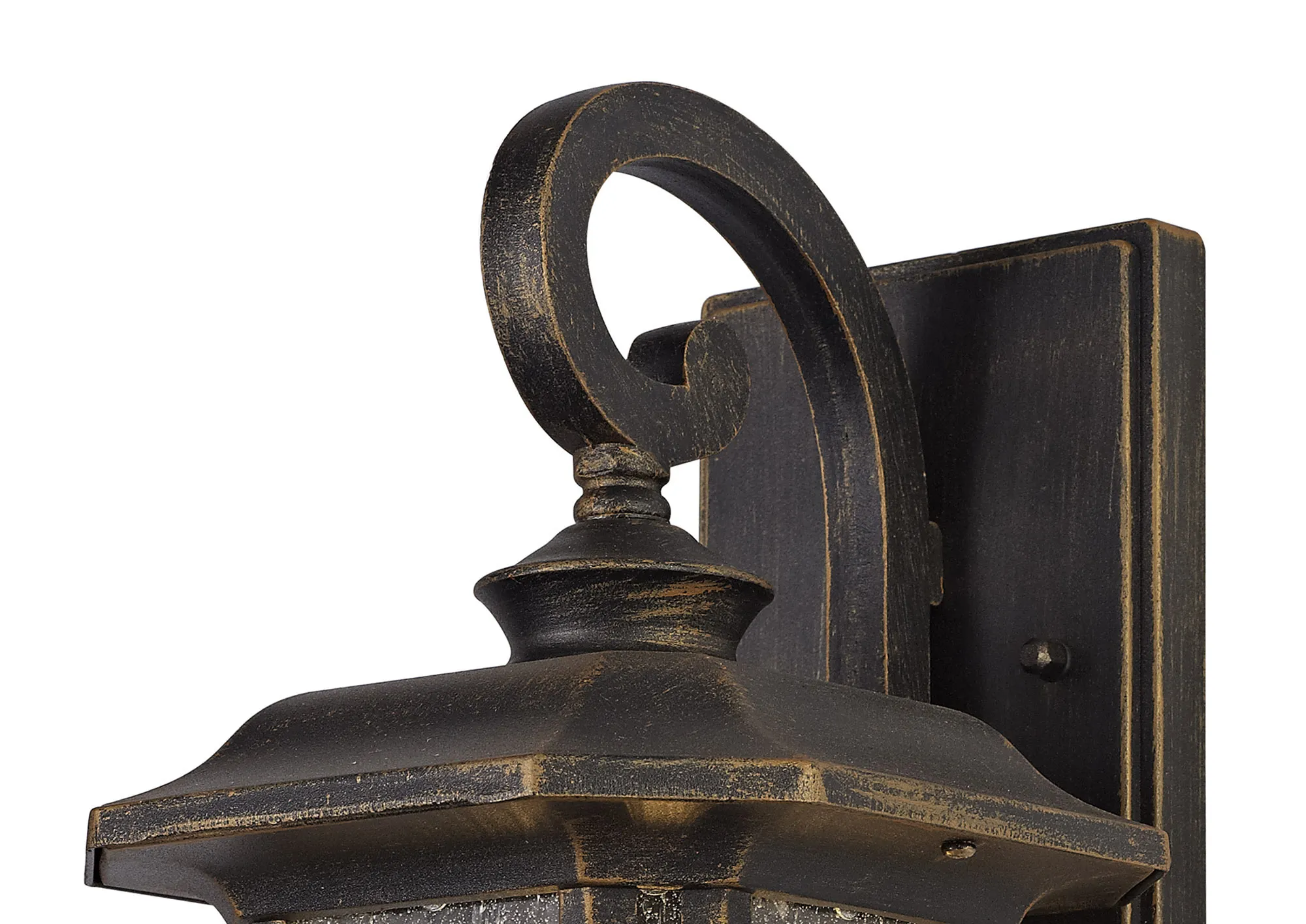 Christchurch Large Wall Lamp, 1 x E27, Brushed Black Gold/Seeded Glass, IP54, 2yrs Warranty
