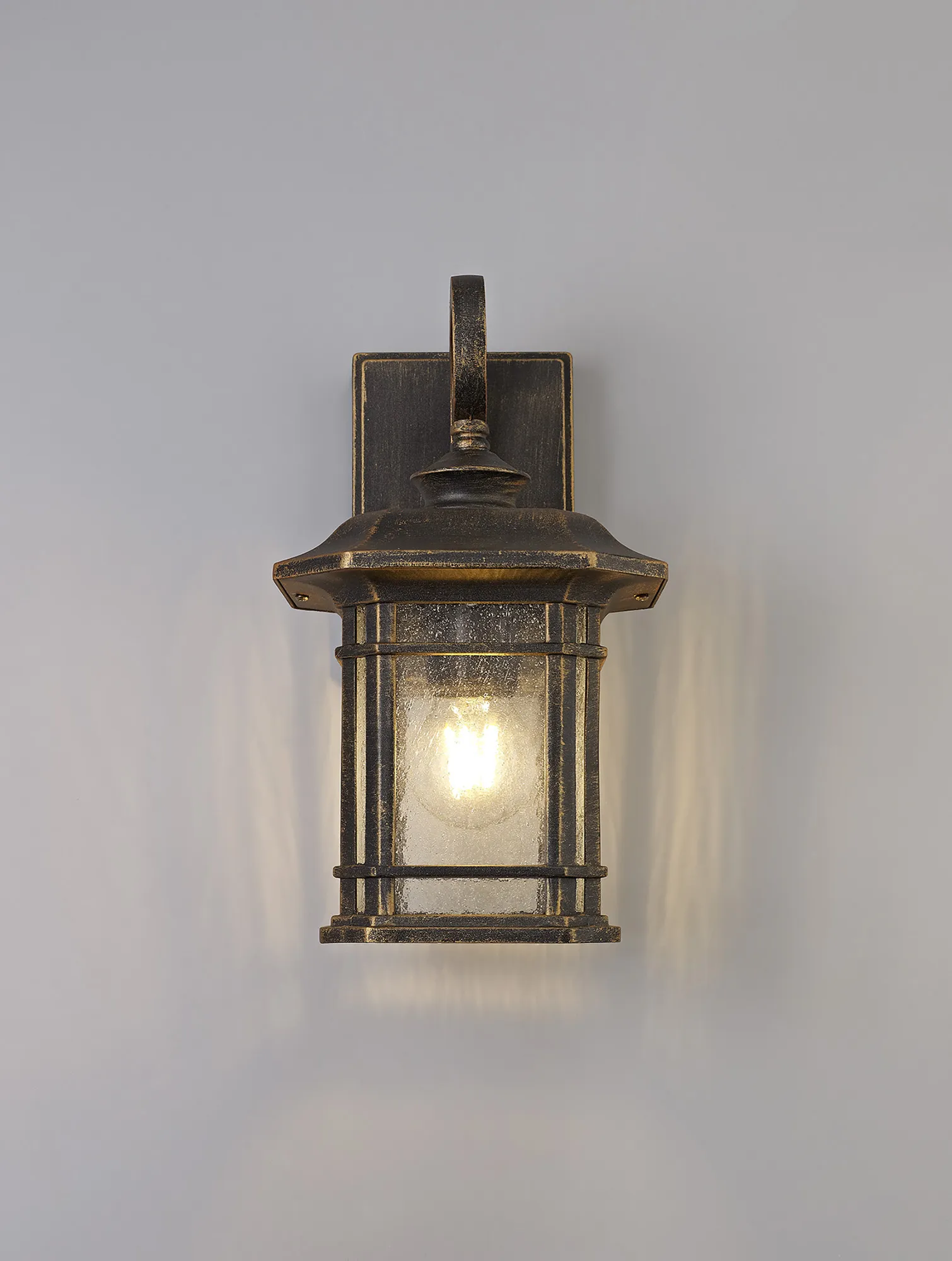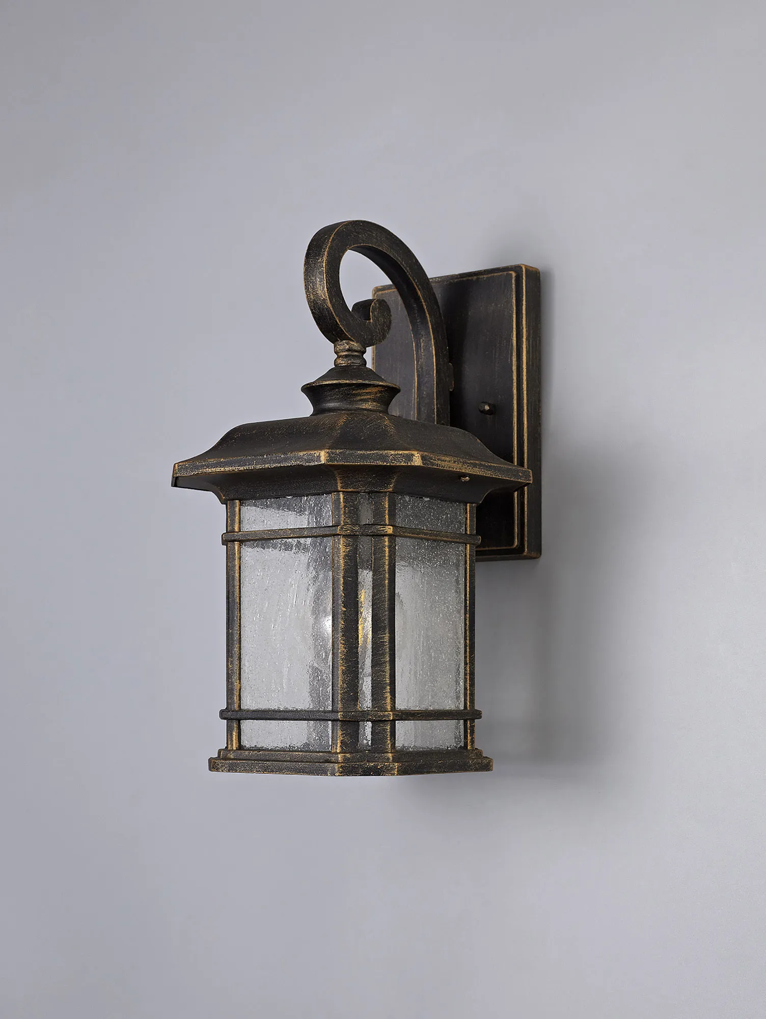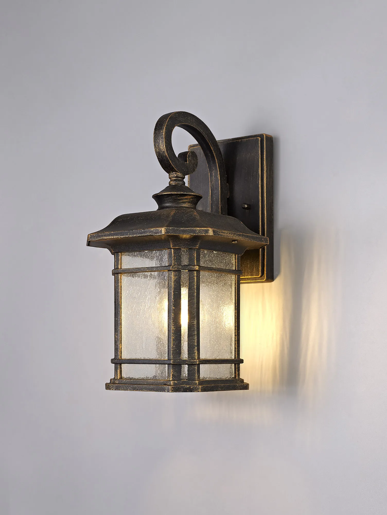 Christchurch Large Wall Lamp, 1 x E27, Brushed Black Gold/Seeded Glass, IP54, 2yrs Warranty