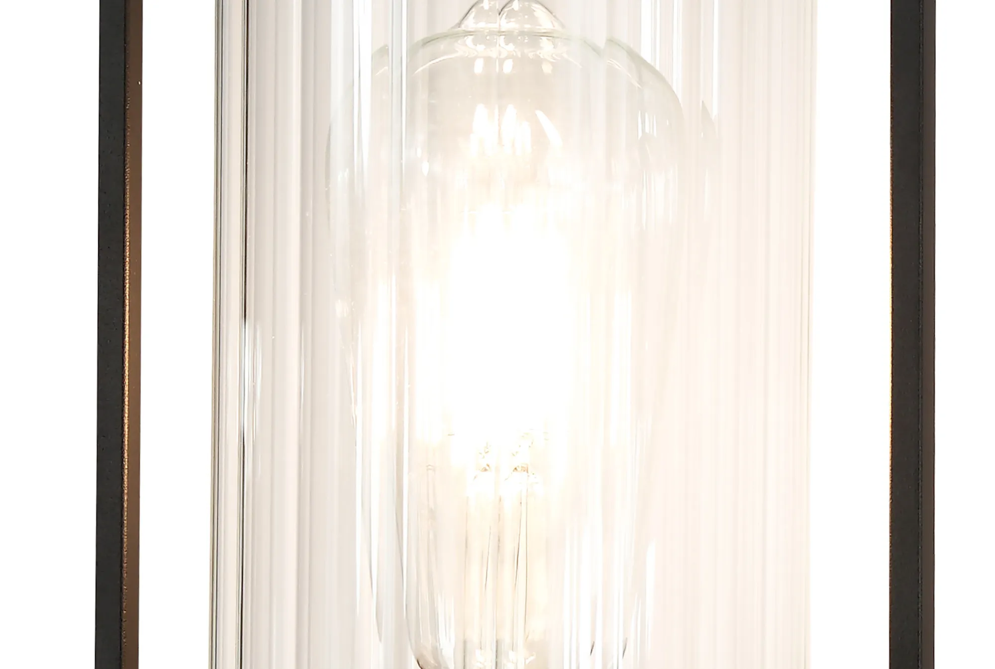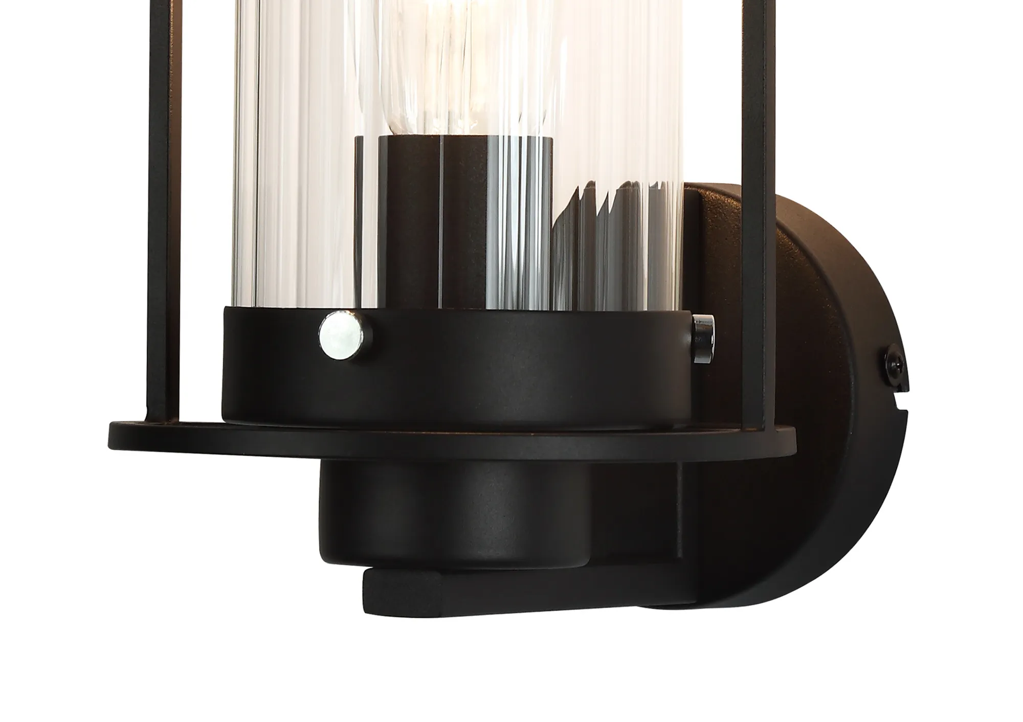 Dunedin is a complete collection including a linear three light pendant and singular one light pendant, with matching wall and table lamps available. The subtle line effect moulded into the glass cylinders, which sit around the E27 lamp holders, give the impression of caging around the lamp enhancing the minimalistic design of the slim black framework.