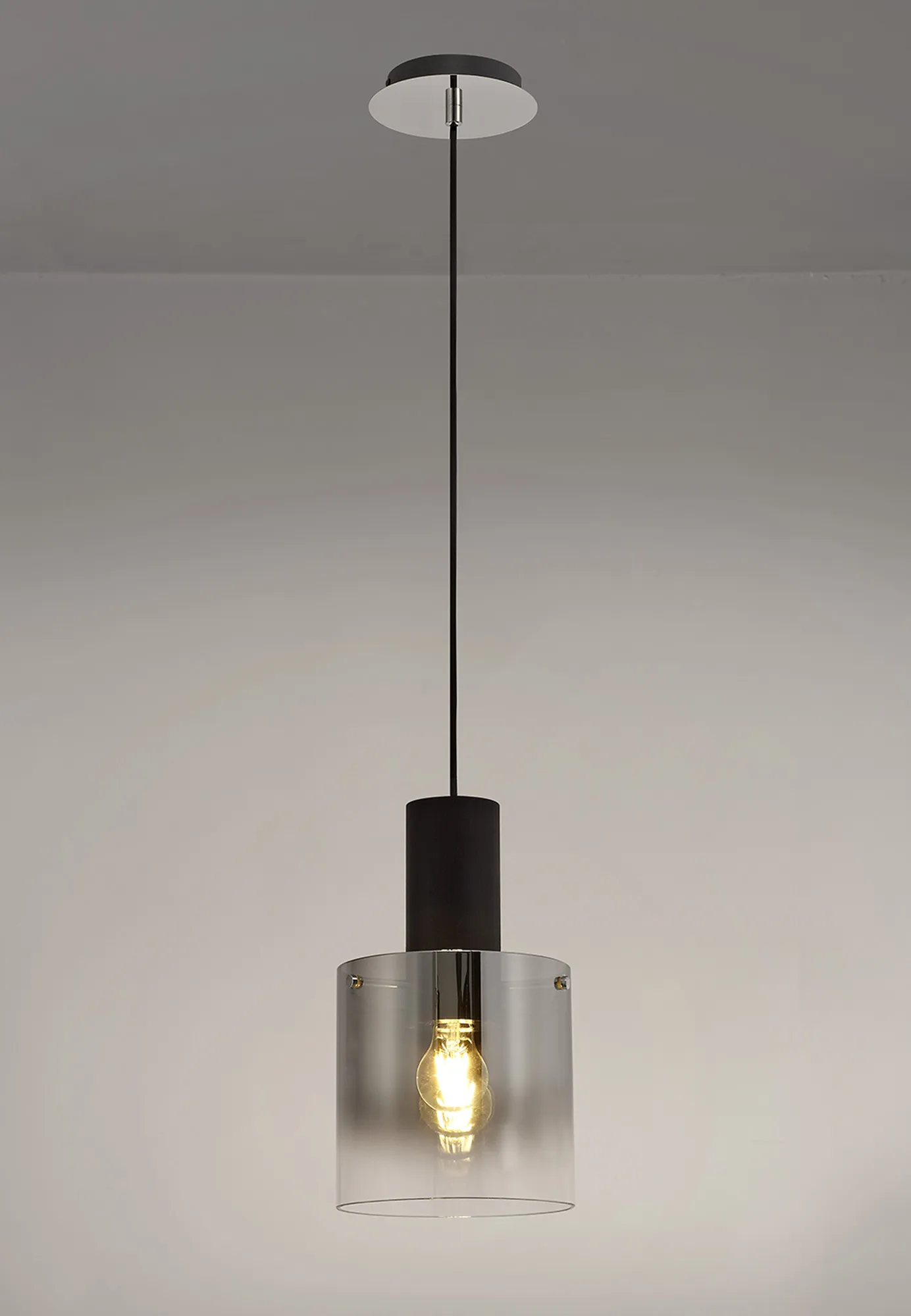 Mangere Single Switched Wall Lamp, 1 Light, E27, Black/Smoke Fade Glass