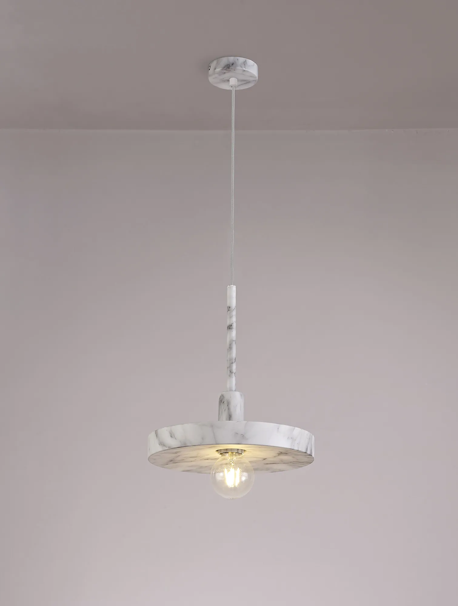 Greymouth Single Pendant, 1 Light Adjustable E27, Marble Effect