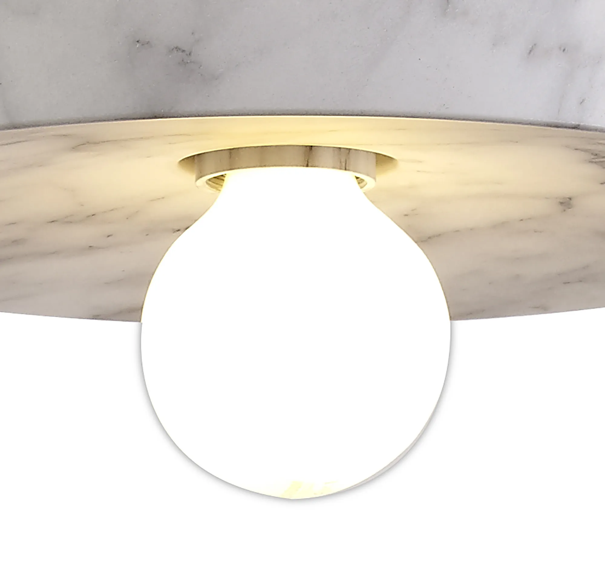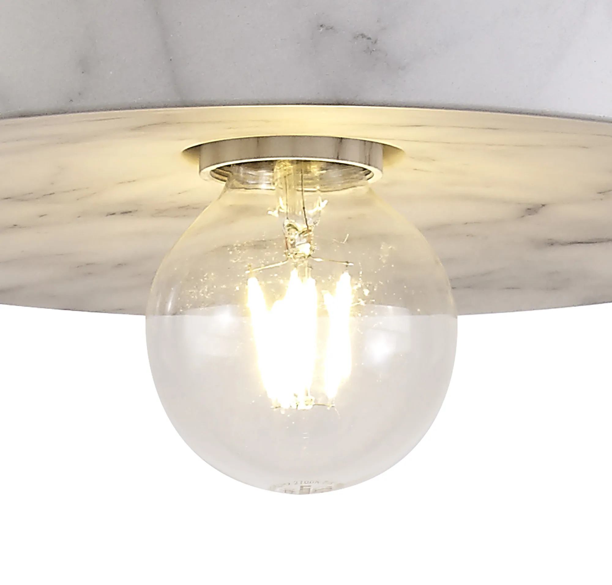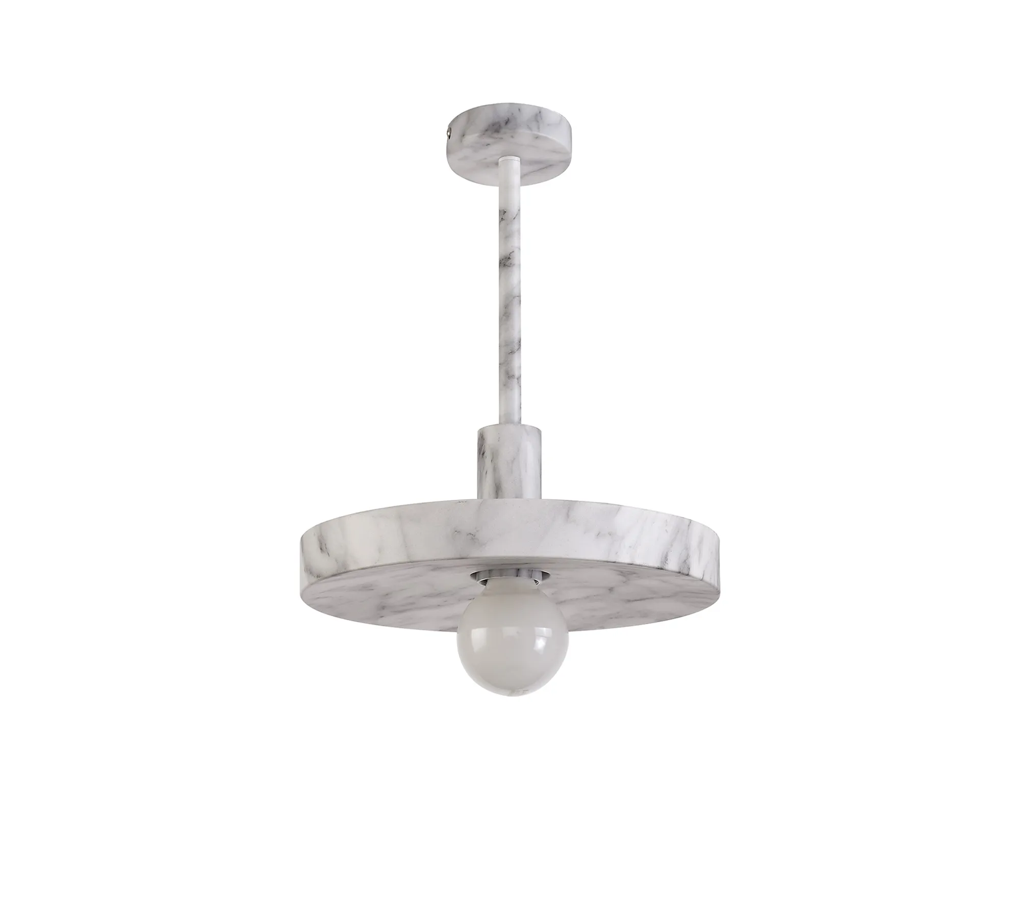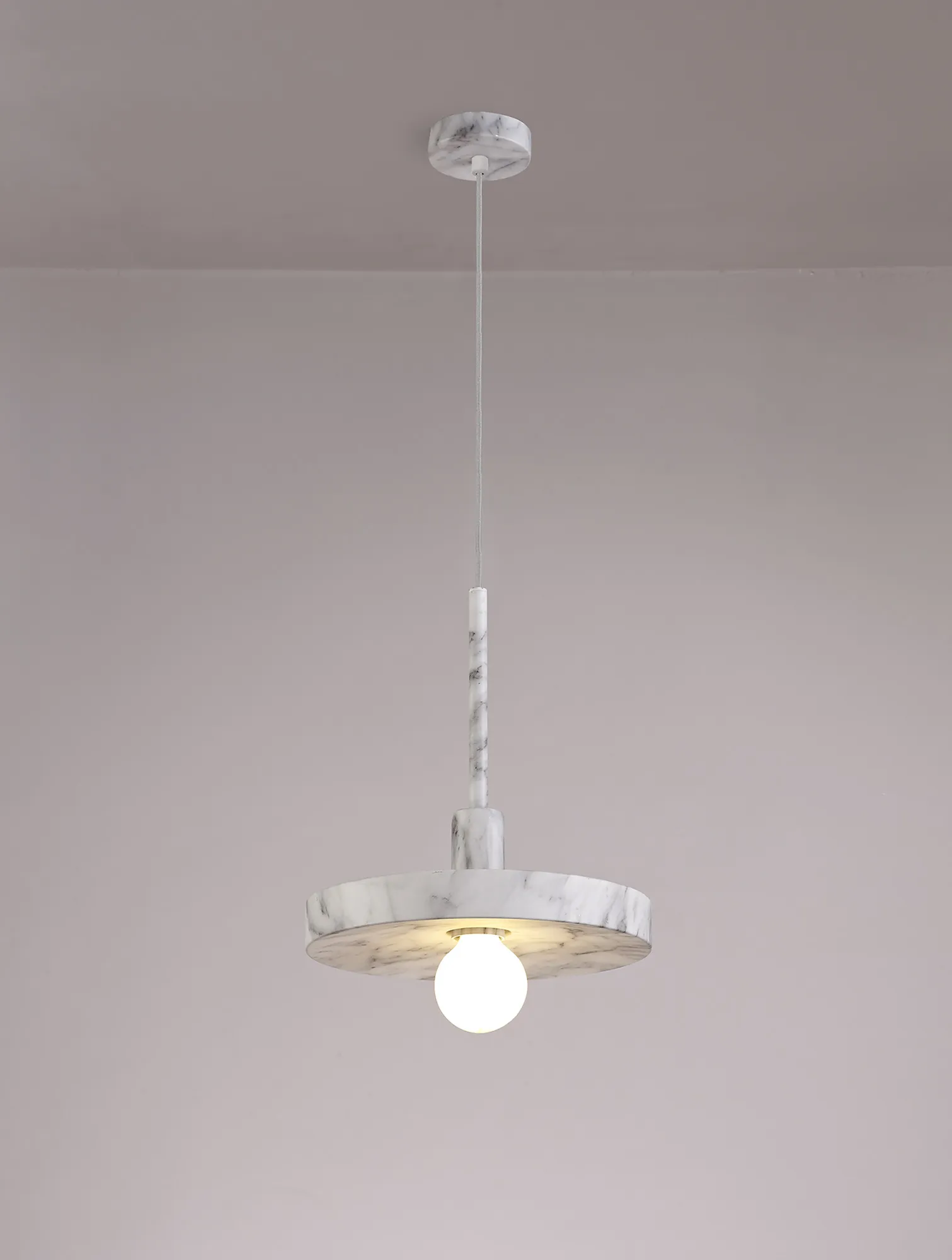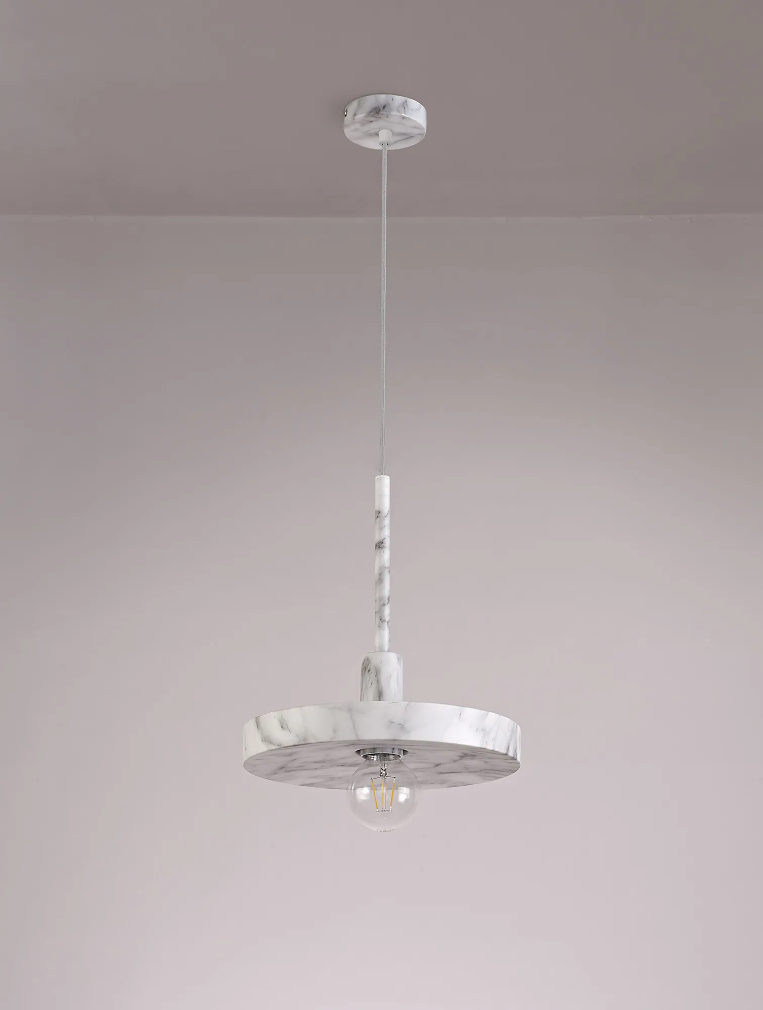 This modern single pendant design uses a smooth, round, shallow frame to hold the E27 lamp holder providing substantial presence with its rare wood or marble effect finish without impeding the ambient illumination from the chosen lamp. Greymouth's concept permits the maximum lighting output without compromising unique design.