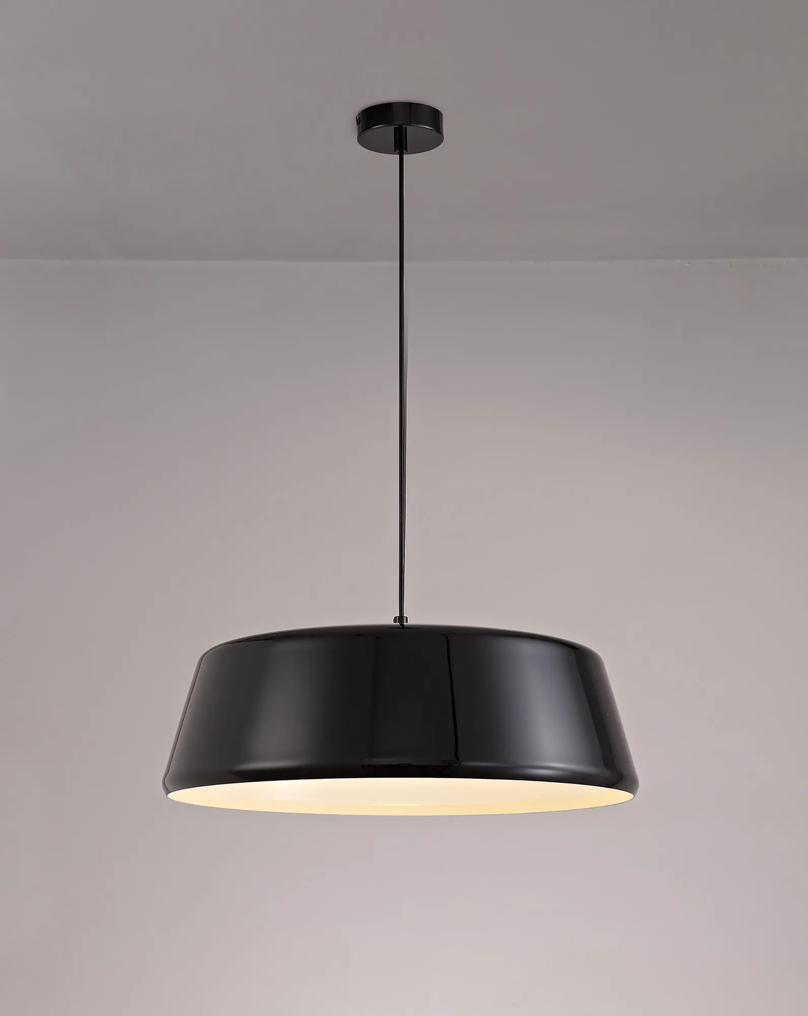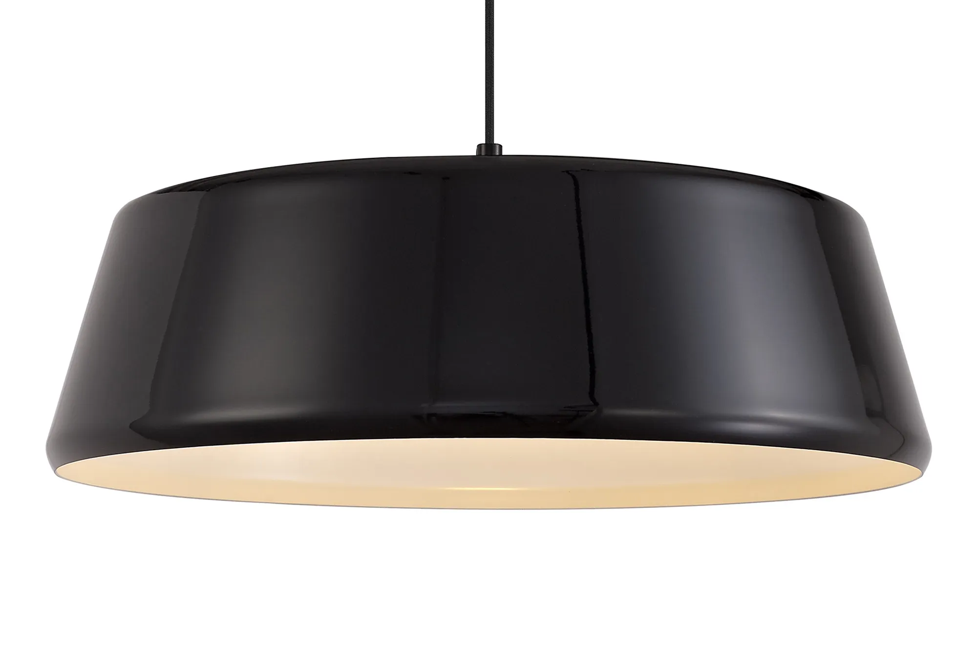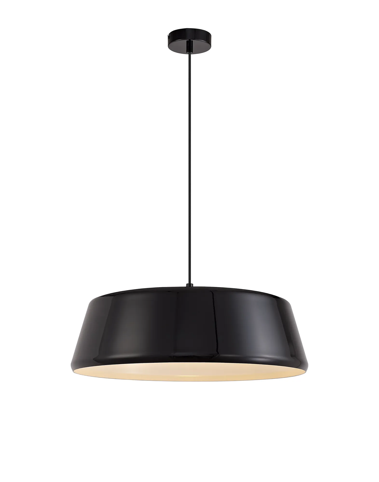 A wide dispersal of light is offered by the large open shade on these single pendants, Denniston. The gloss black and gloss white colour finishes transform a simplistic lighting format into a must have modern collection. The fittings can take a maximum 60W E27 lamp granting the usage of a range of lamps to suit your needs.