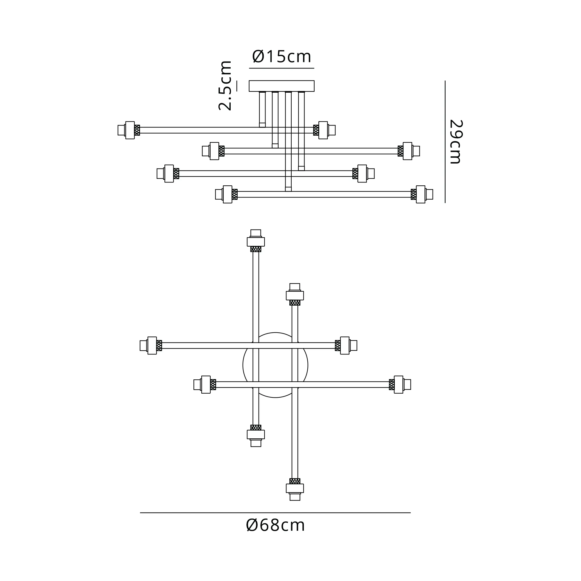 Kiwitea 68cm Antique Brass 8 Light G9 Universal Crossed Arm Semi Flush Light (FRAME ONLY), For A Vast Range Of Glass Shades