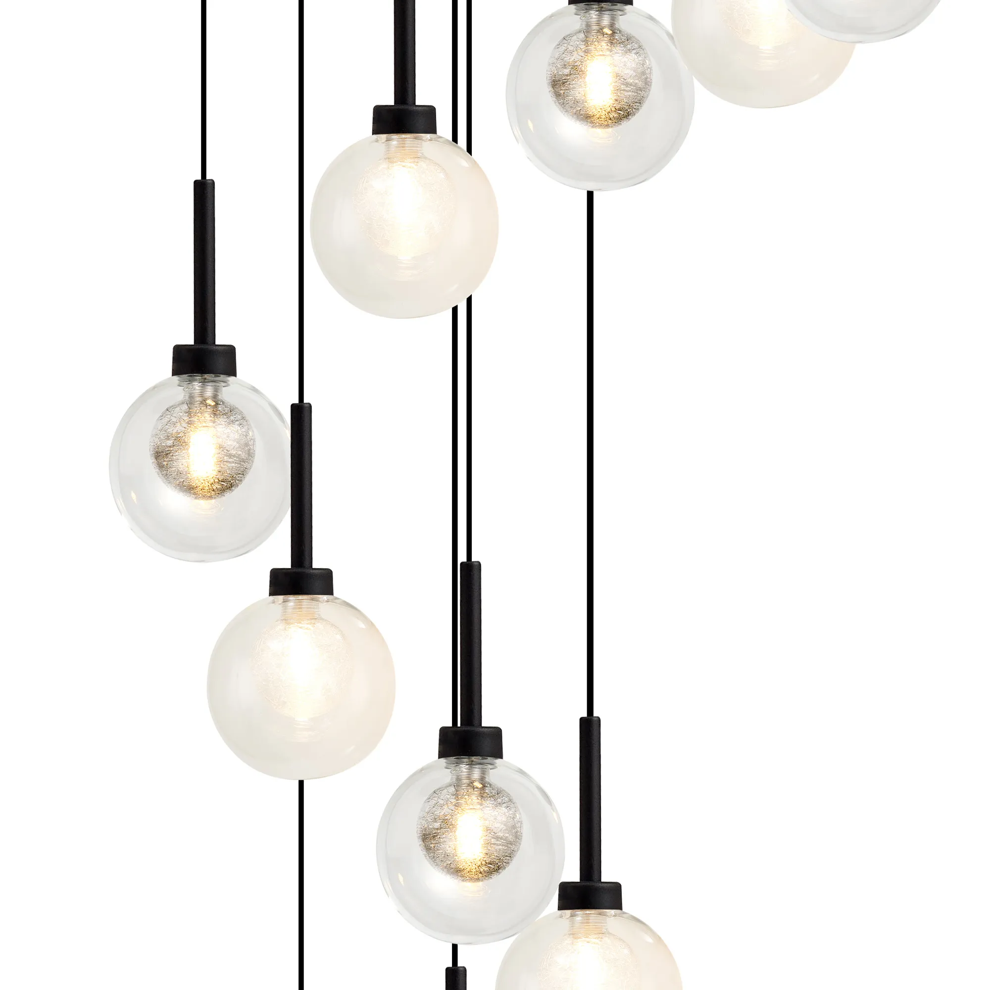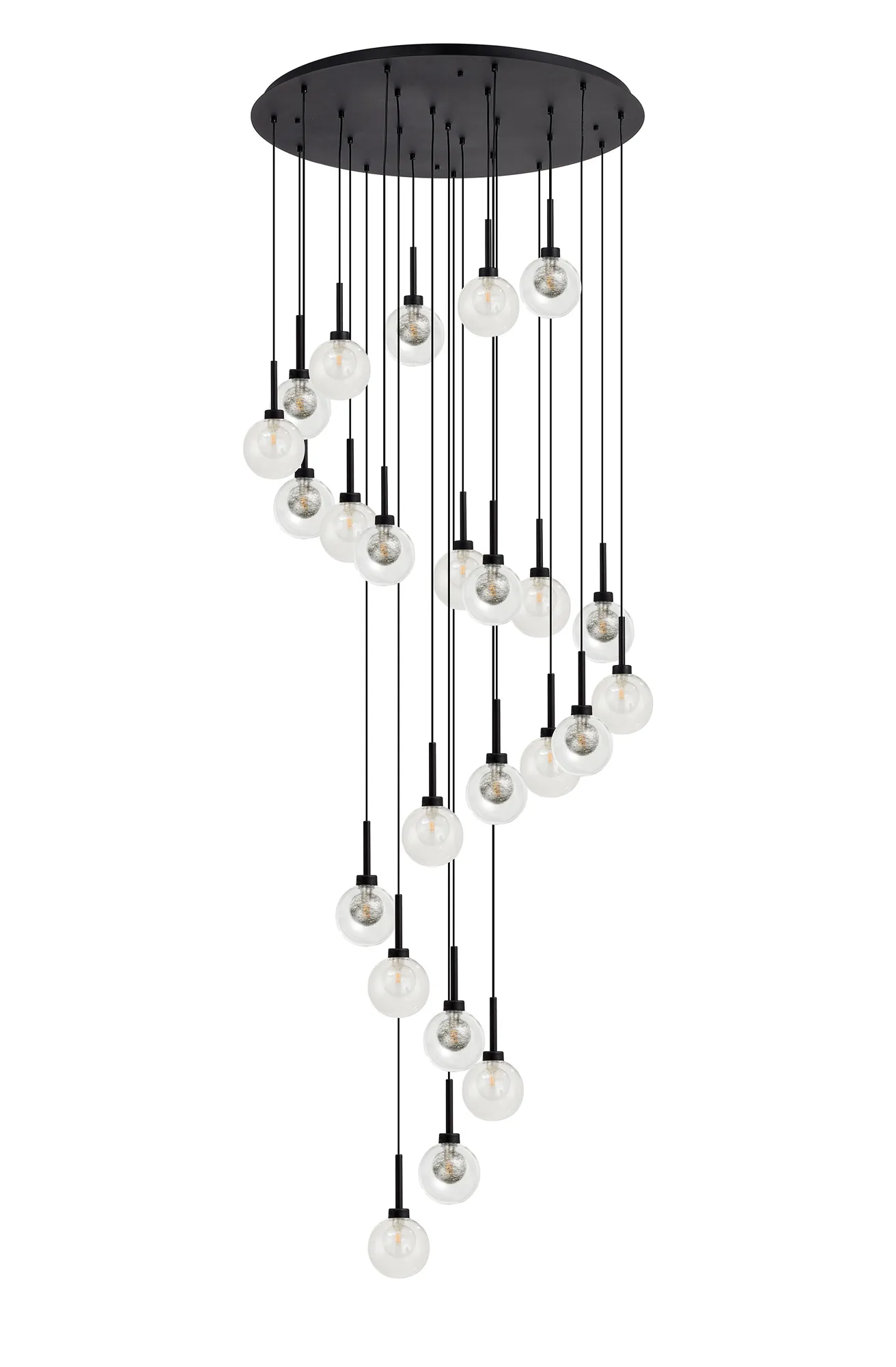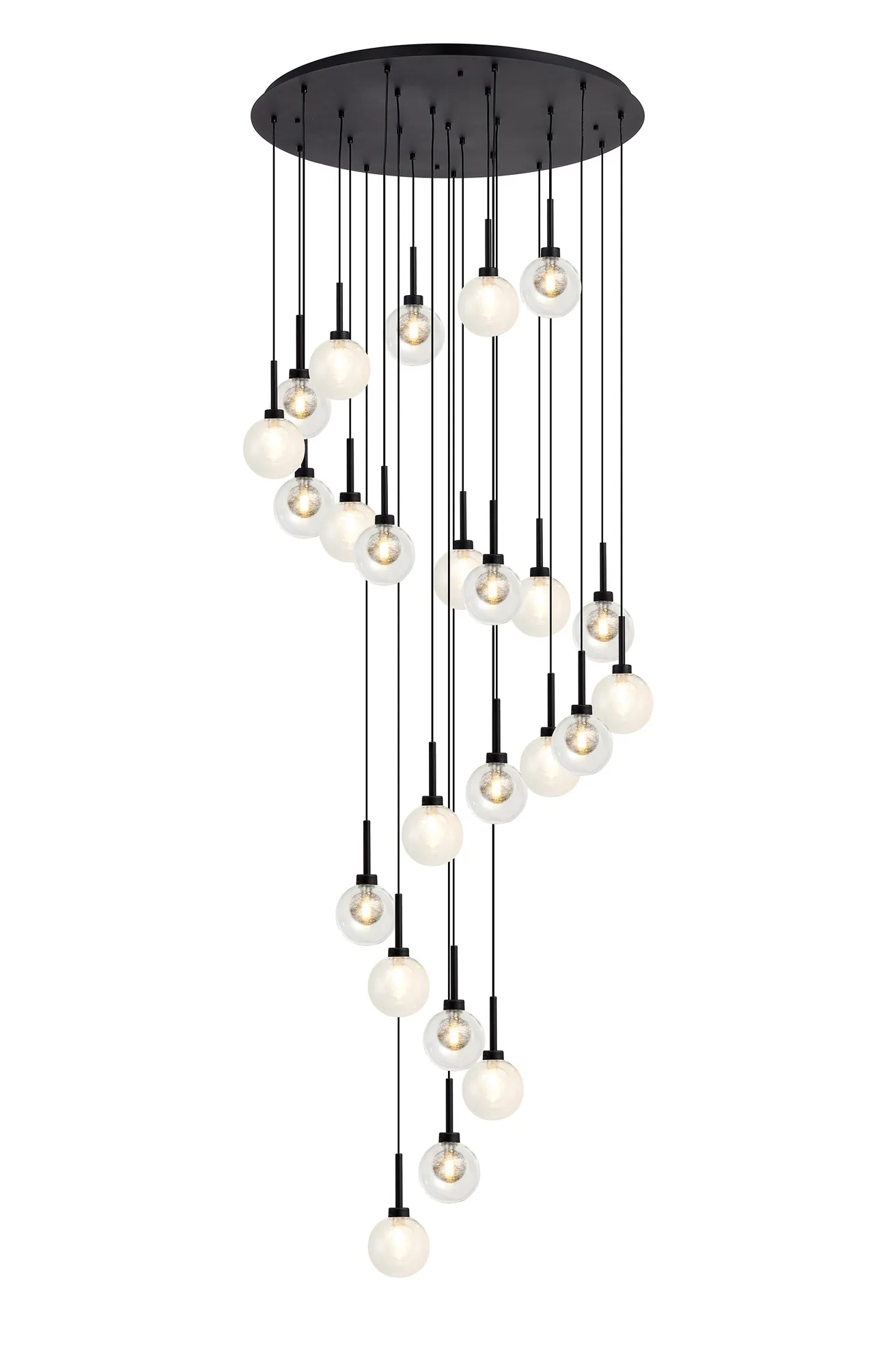 Kiwitea Single Pendant 2m With Round Clear With Inner Black Globe (AA), 1 Light G9, Satin Black/Black