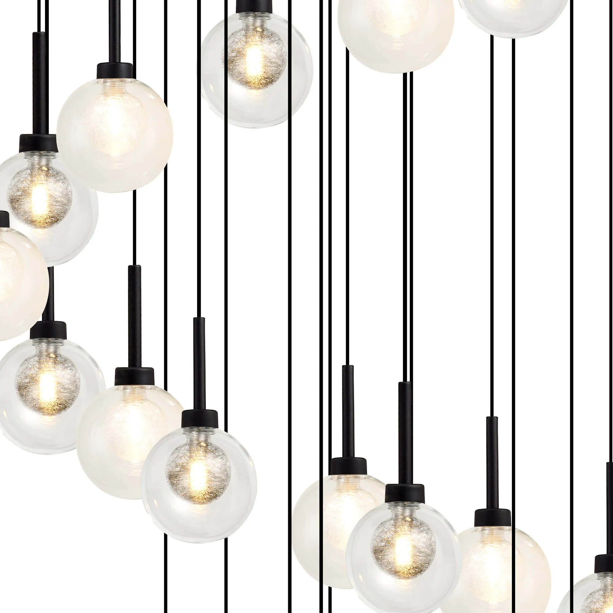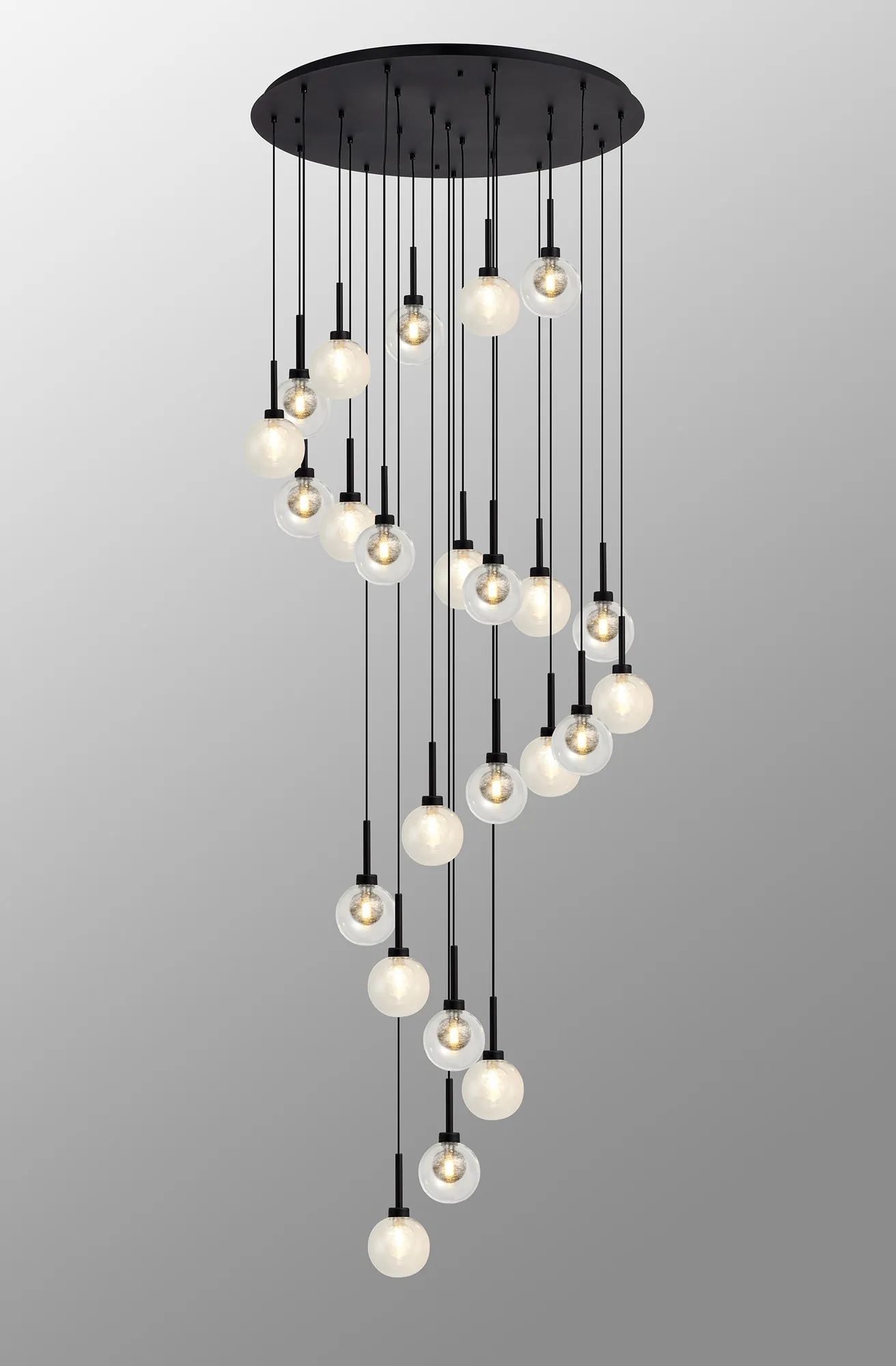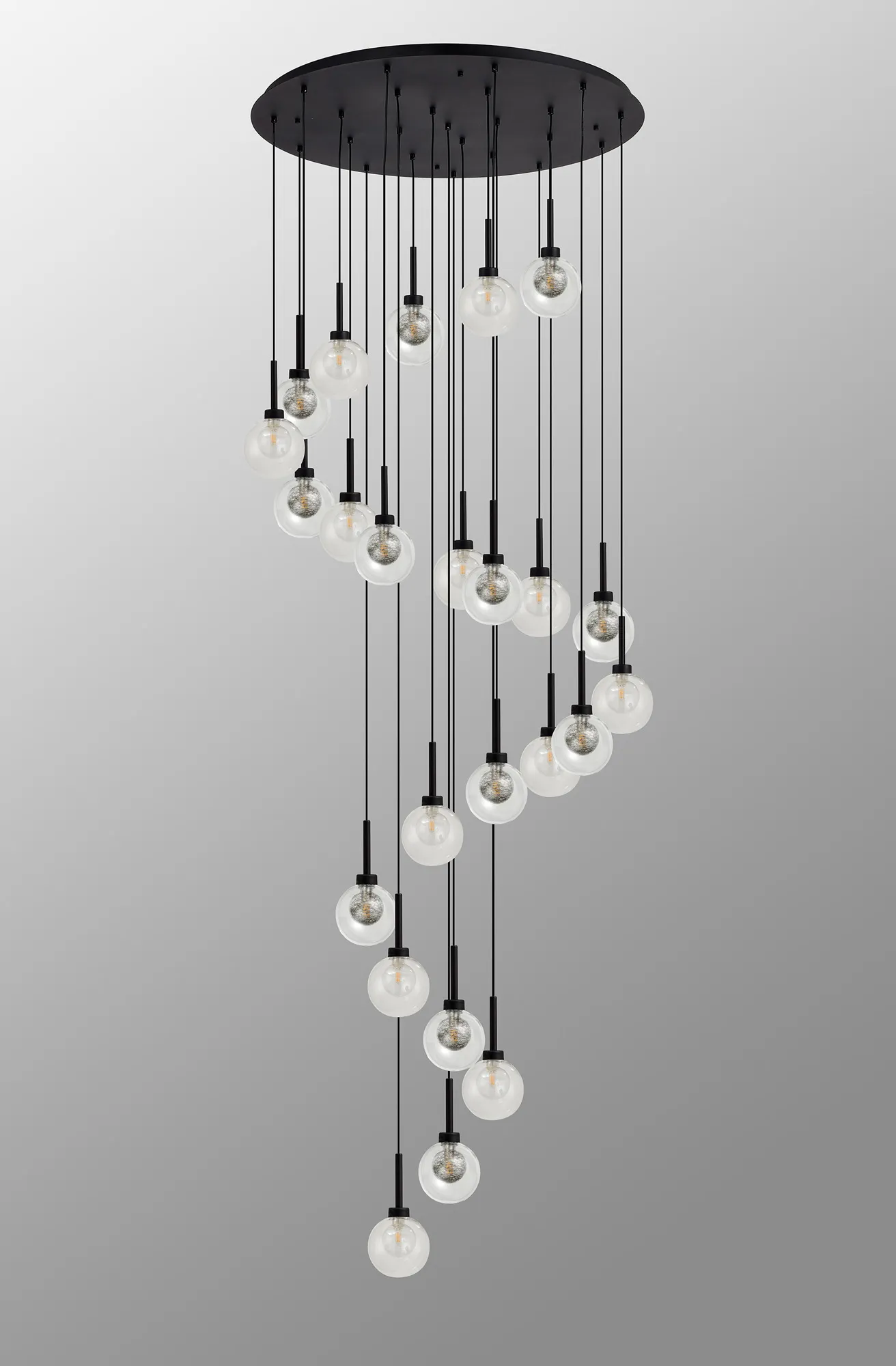 Kiwitea Single Pendant 2m With Round Clear With Inner Black Globe (AA), 1 Light G9, Satin Black/Black