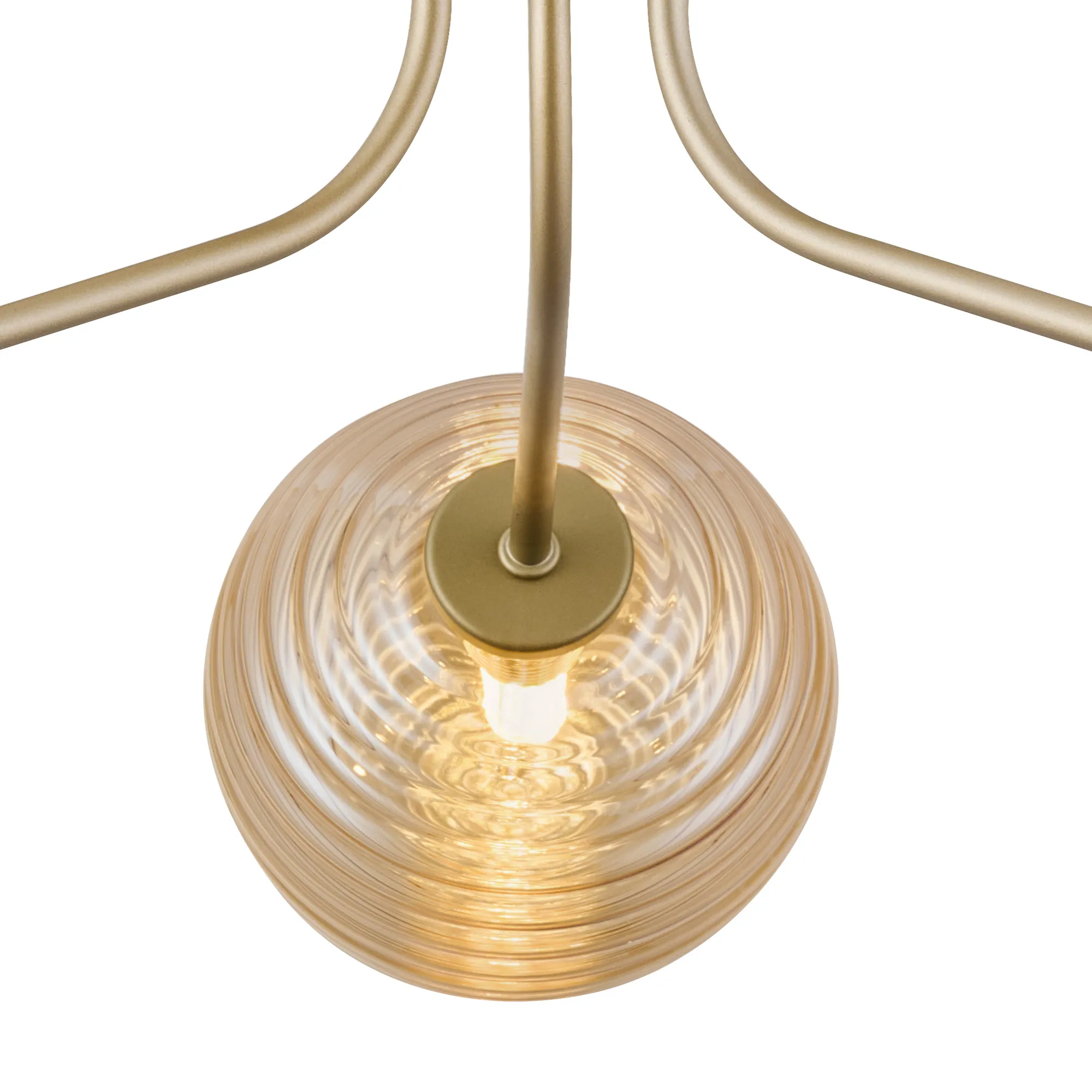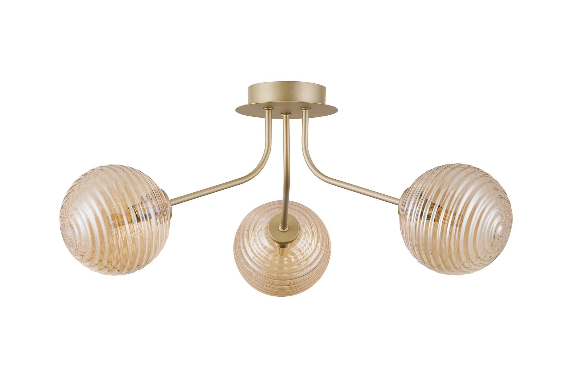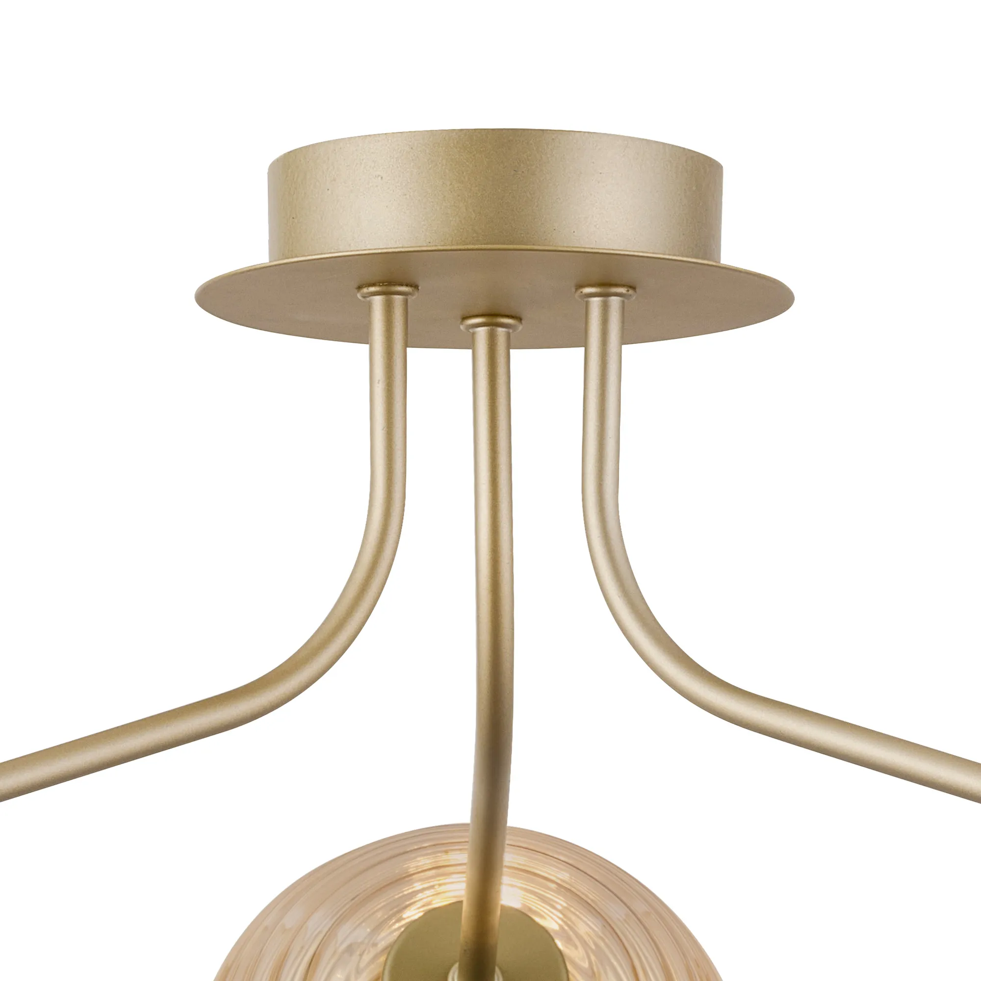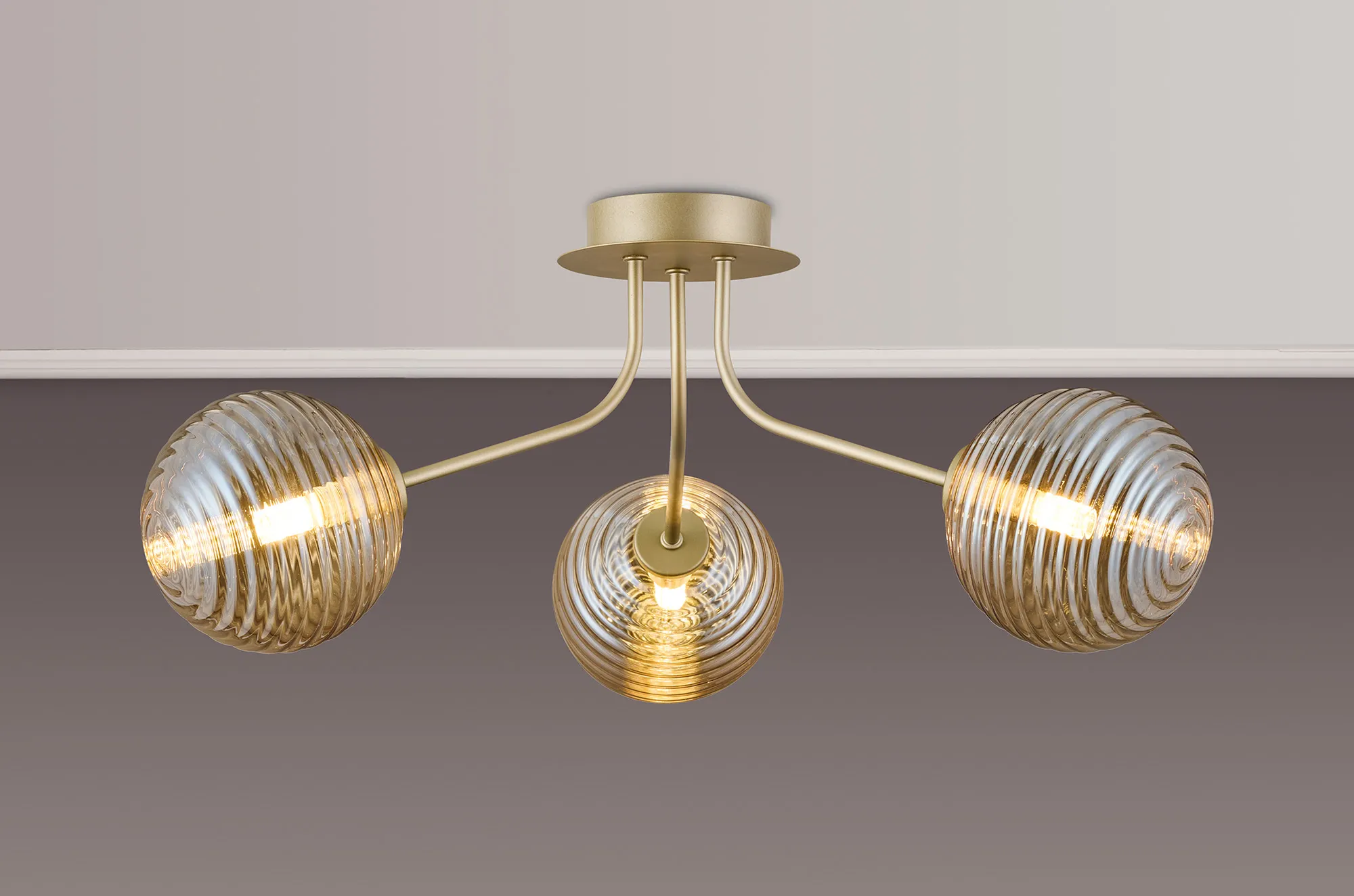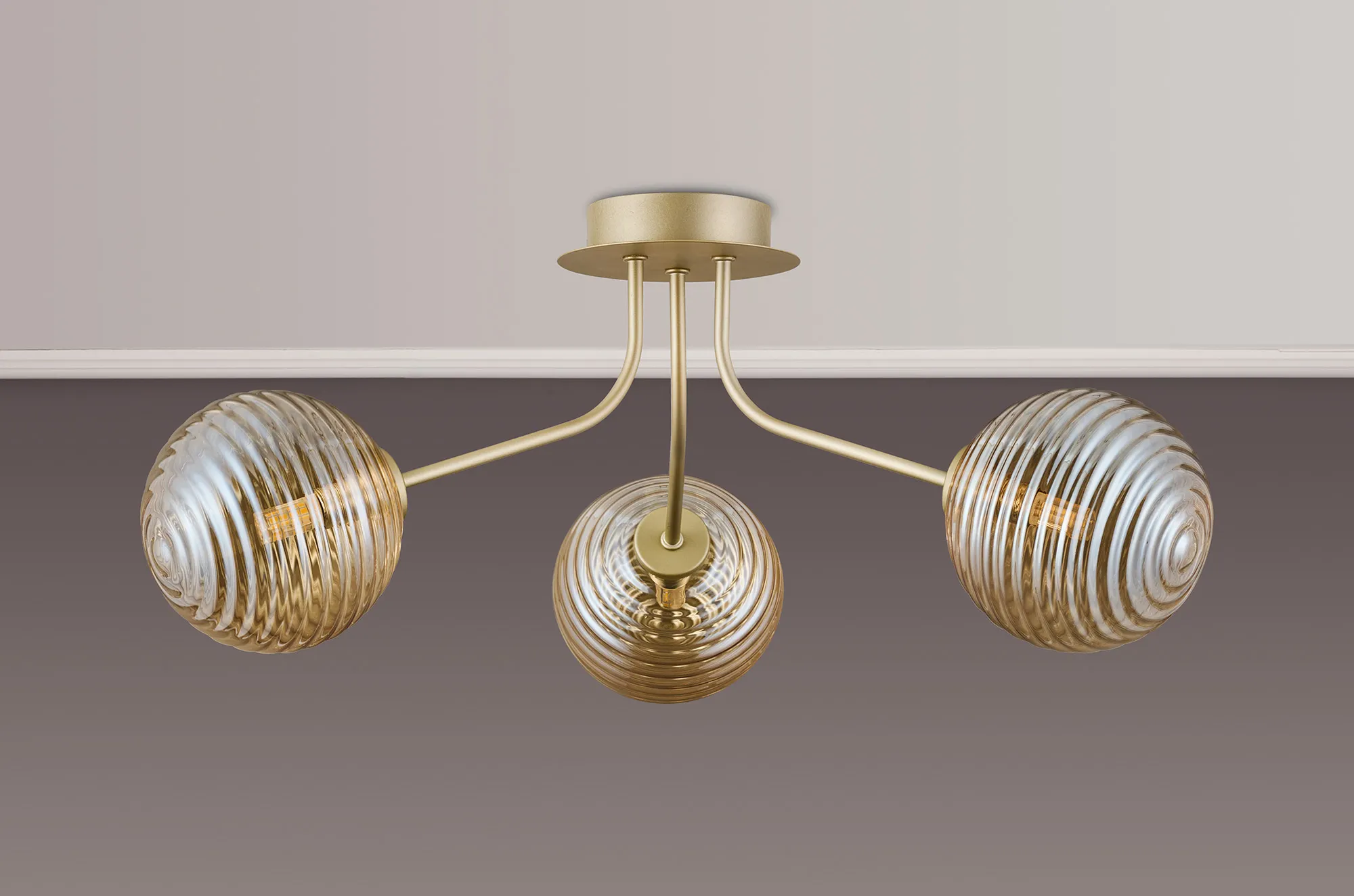 OTHER Duncan Semi Flush Light, 3 Light G9, Light Painted Beige/Amber Ribbed Round Glass Shade