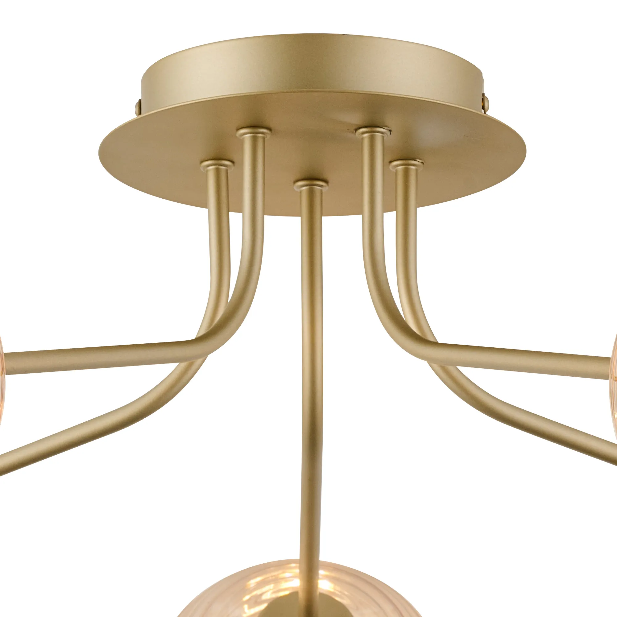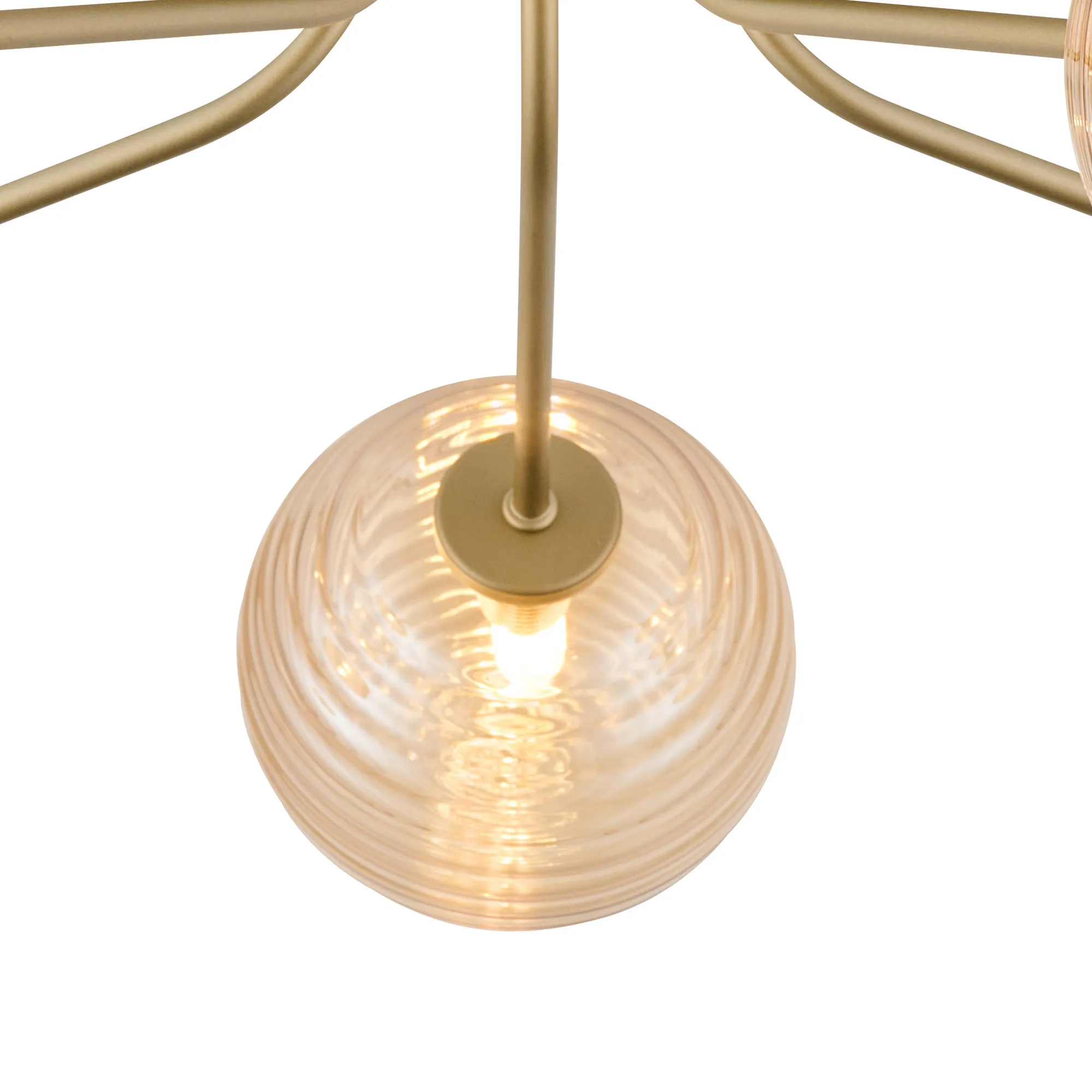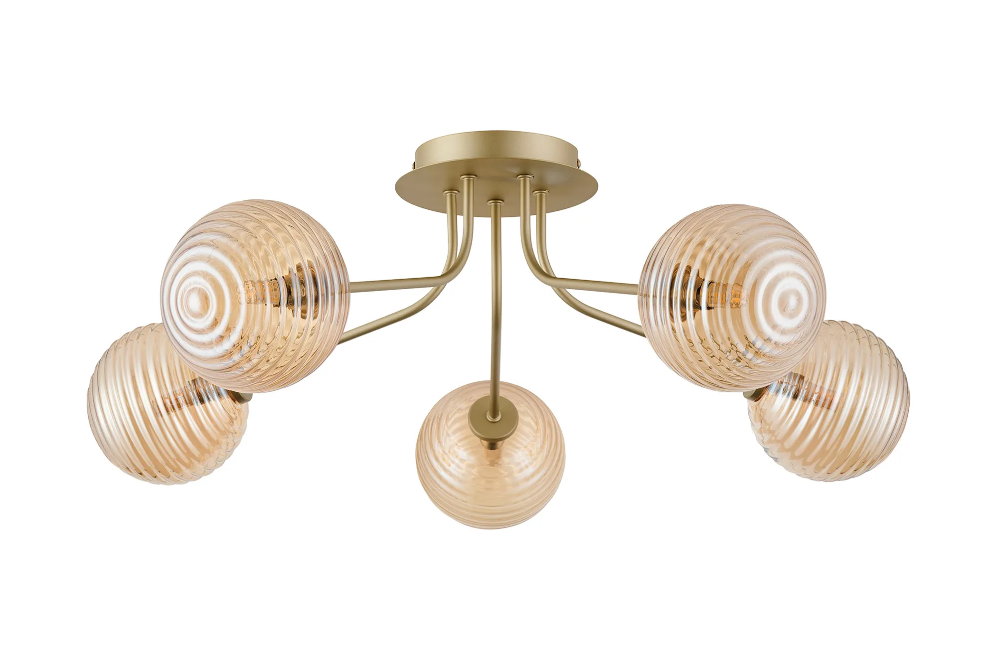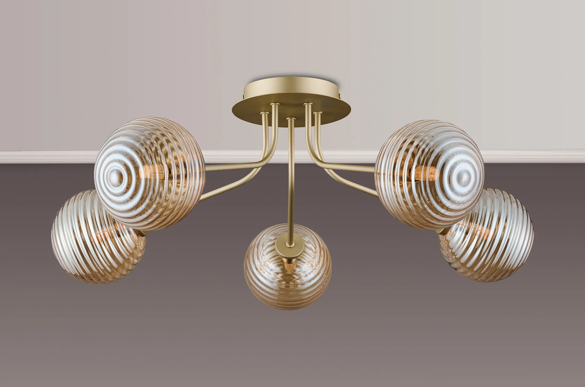 OTHER Duncan Semi Flush Light, 5 Light G9, Light Painted Beige/Amber Ribbed Round Glass Shade