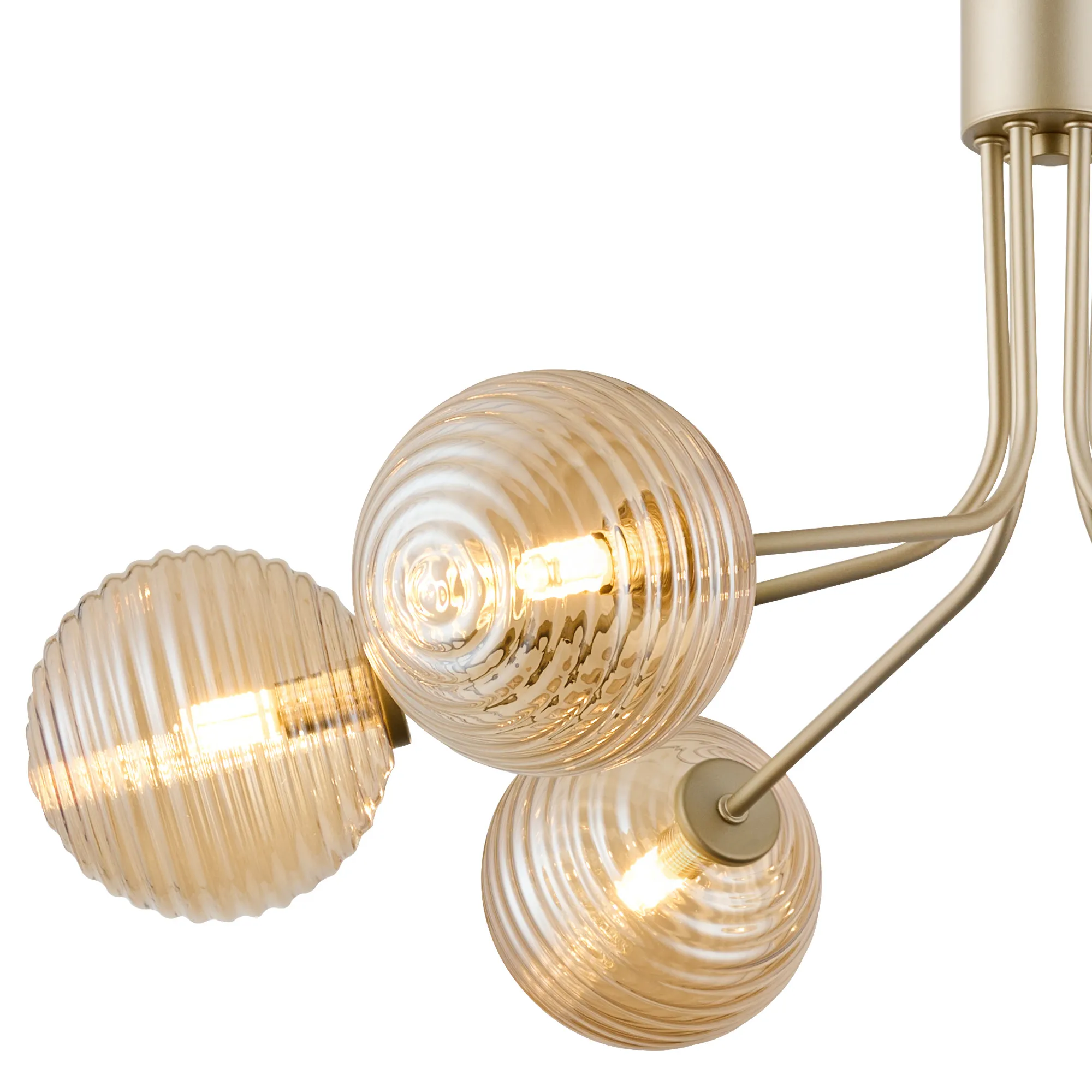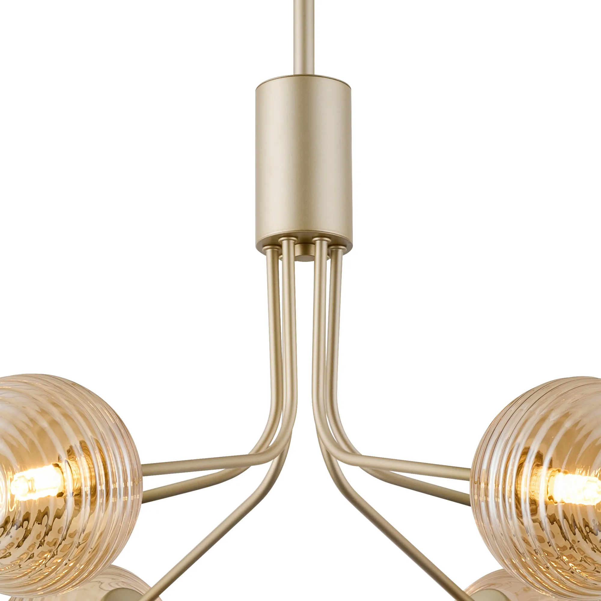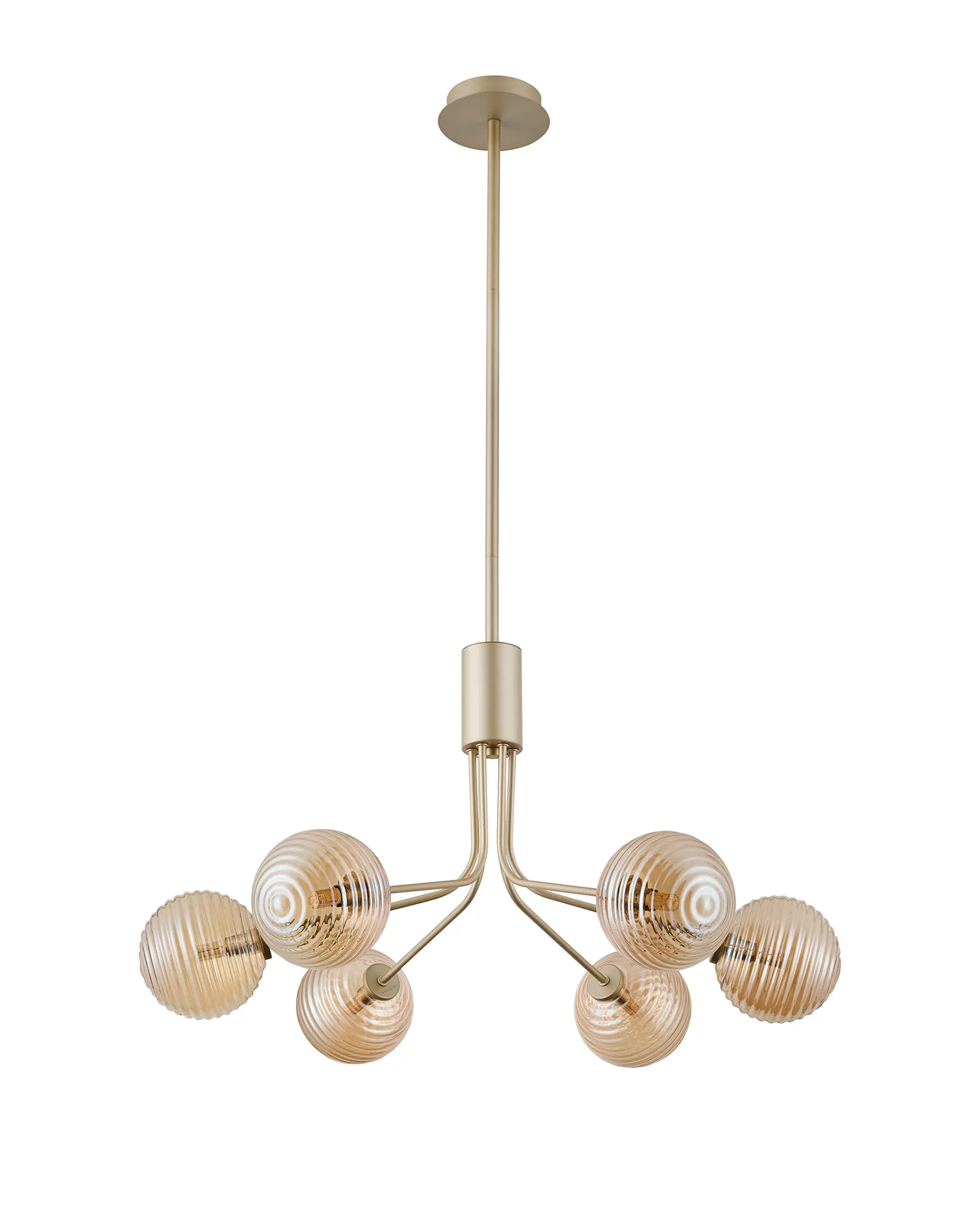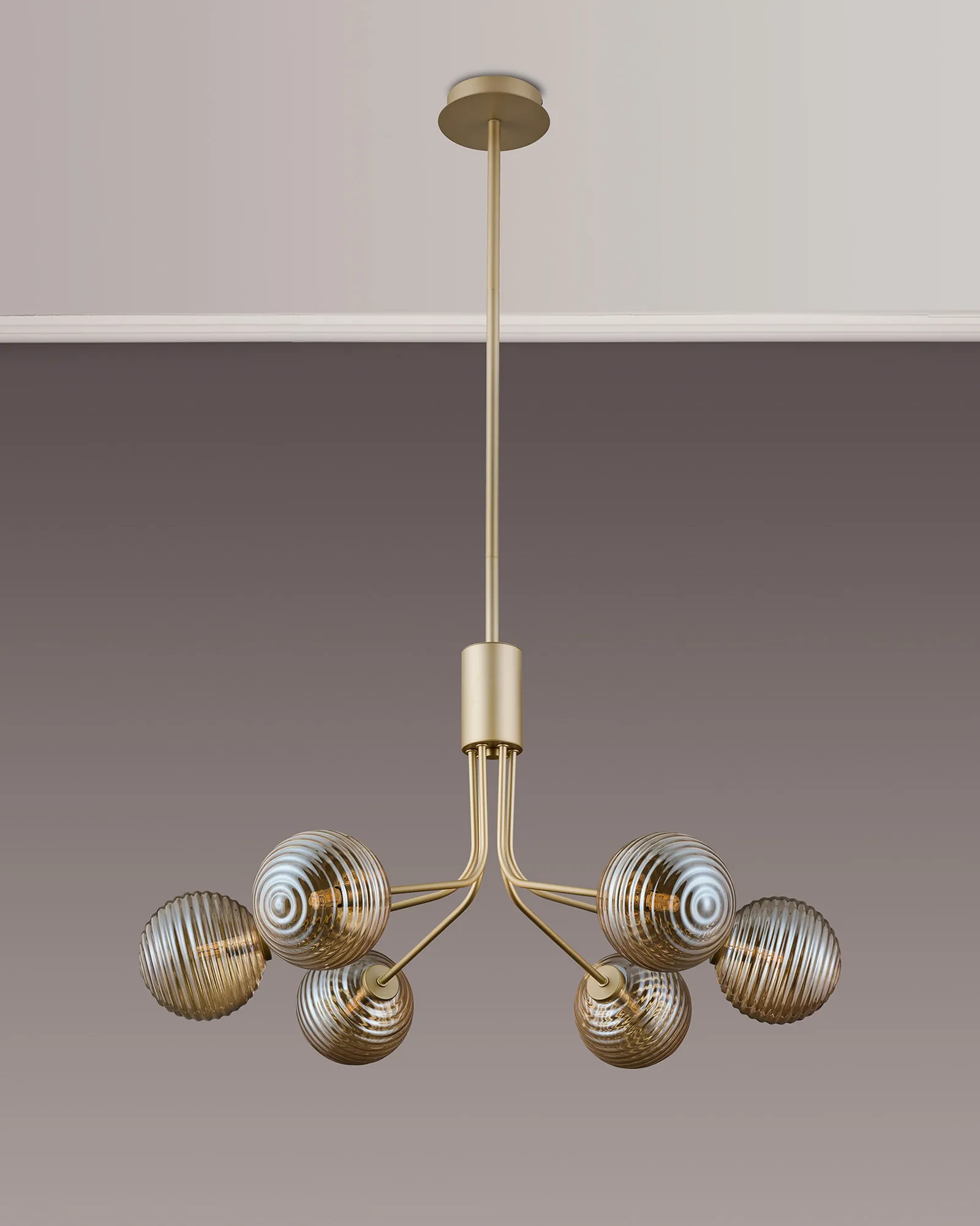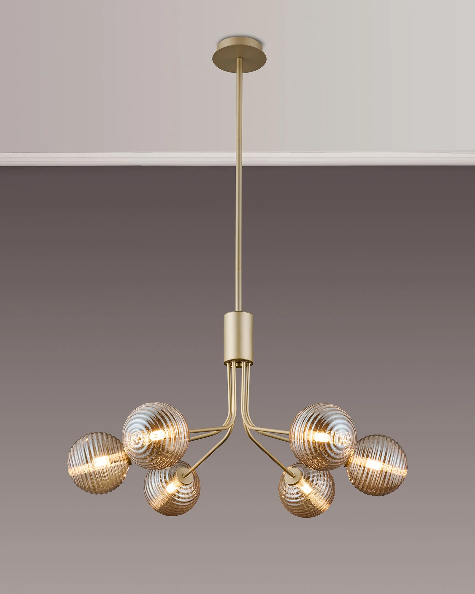 OTHER Duncan Fixed Pendant, 6 Light G9, Light Painted Beige/Amber Ribbed Round Glass Shade