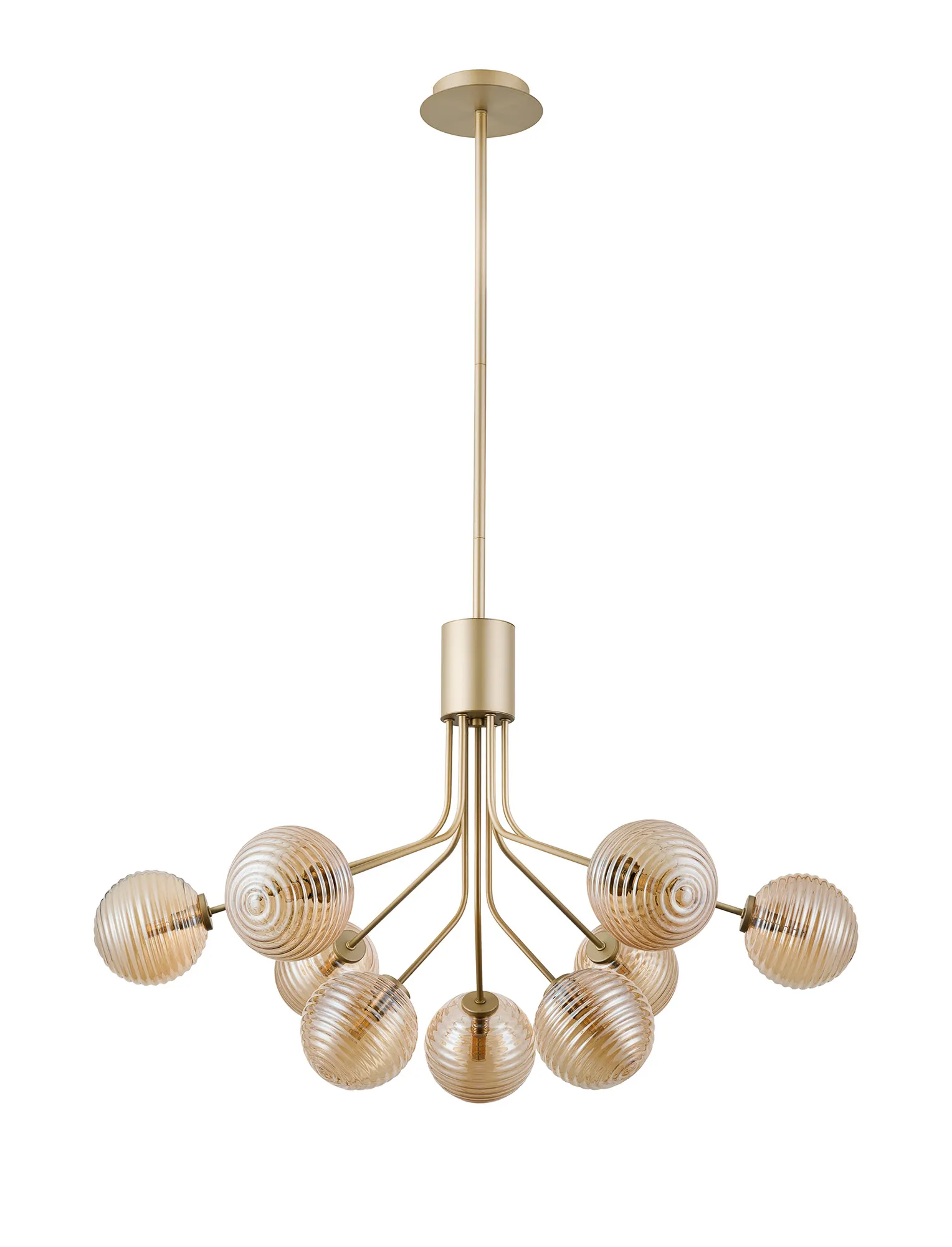OTHER Duncan Fixed Pendant, 6 + 3 Light G9, Light Painted Beige/Amber Ribbed Round Glass Shade