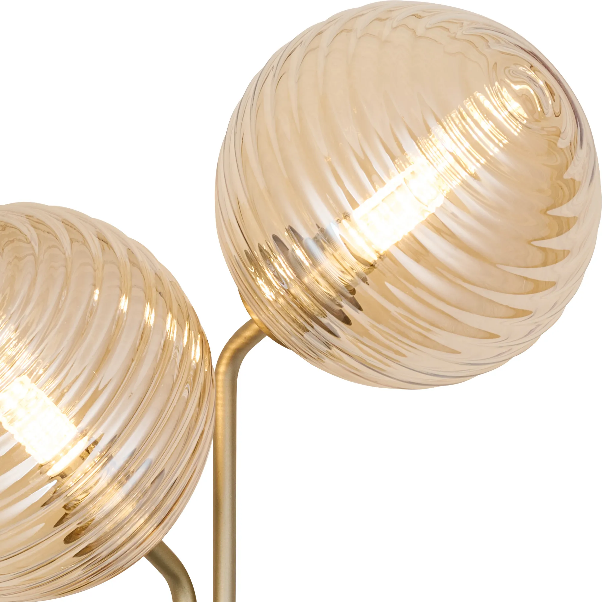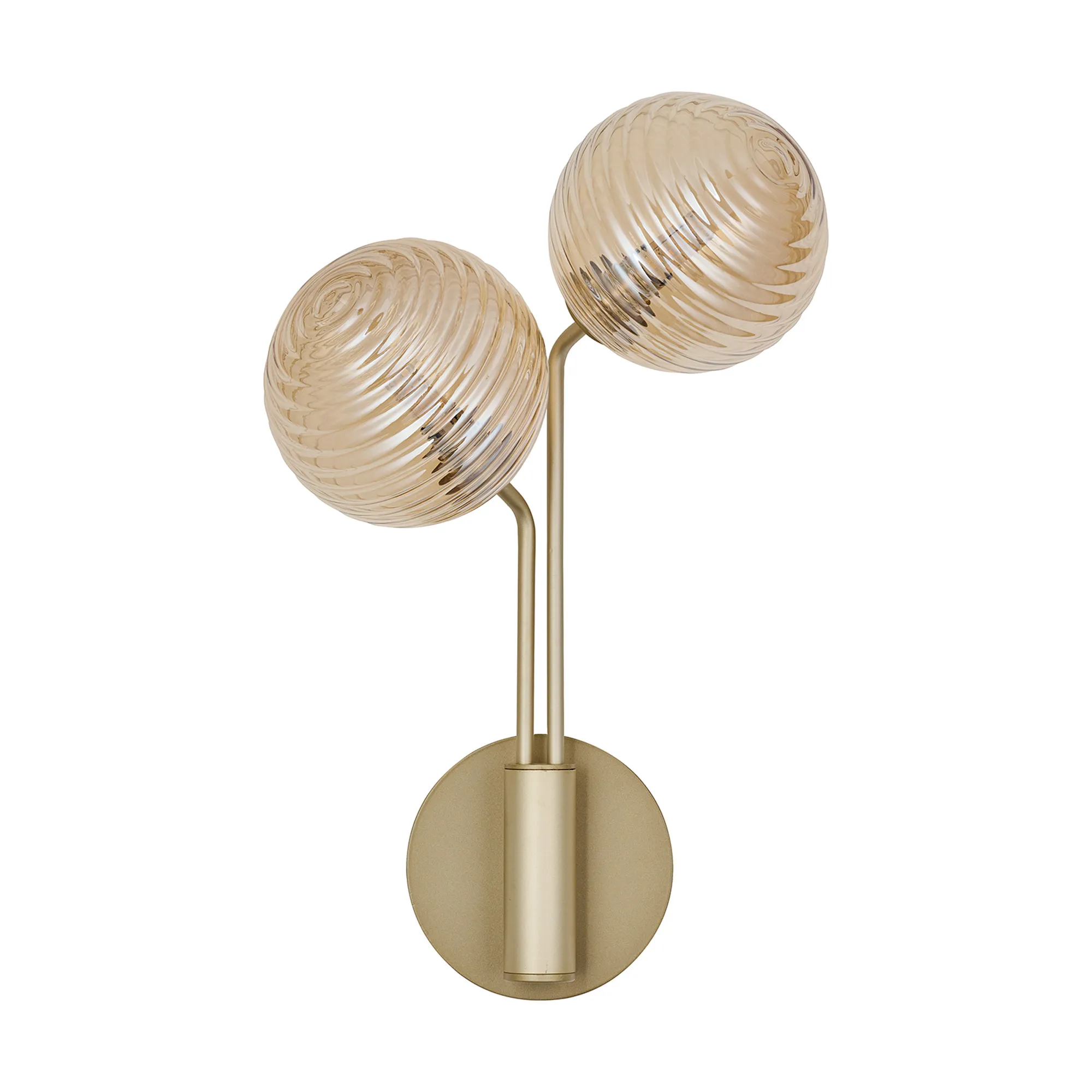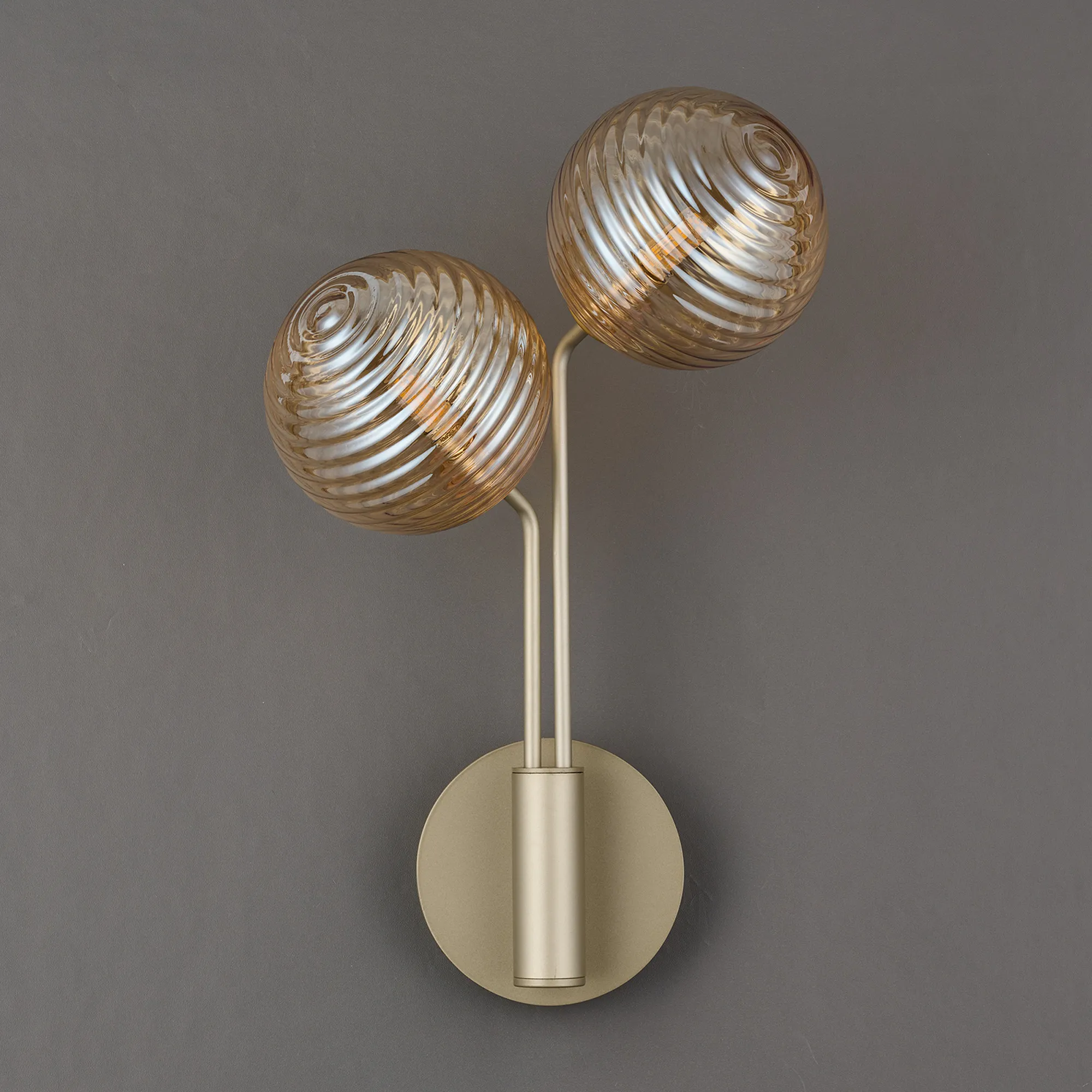 OTHER Duncan Wall Light, 2 Light G9, Light Painted Beige/Amber Ribbed Round Glass Shade