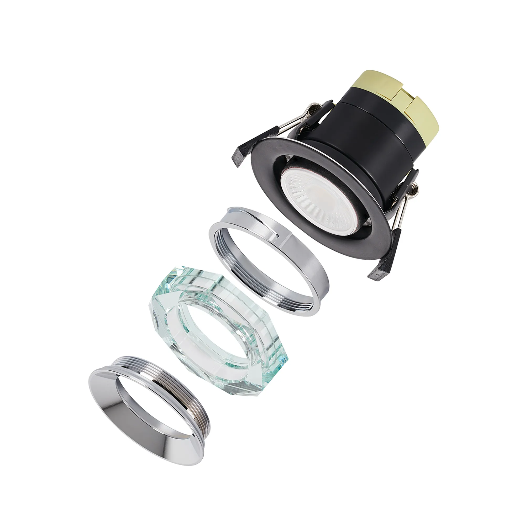 Troon is a range of versatile and stylish Fire Rated LED downlights with numerous features and finishes. You can adjust the colour temperature to 3000K, 4000K, or 6000K with the built in CCT switch. Each downlight is Triac dimmable, have loop in/out quick fit connectors and an IP65 rating for water resistance. You can also cover them with insulation materials, making them suitable for a vast range of indoor settings. They can even be used outdoors, providing the top of the downlights are in a dry and sealed area. Troon also offers fascias in 29 different colours to complement your chosen colour scheme. As the fascias are made from ABS, they will not rust under damp conditions.