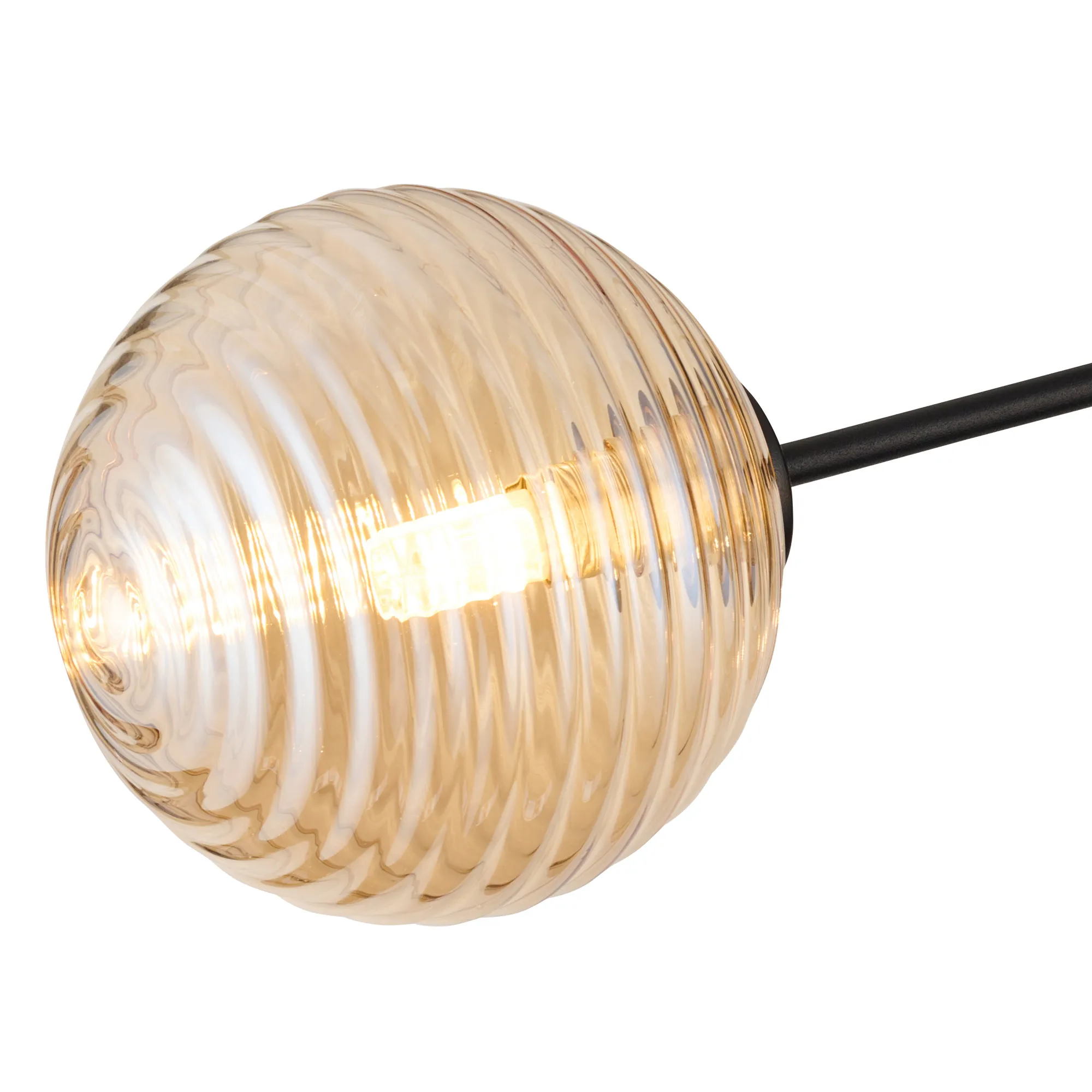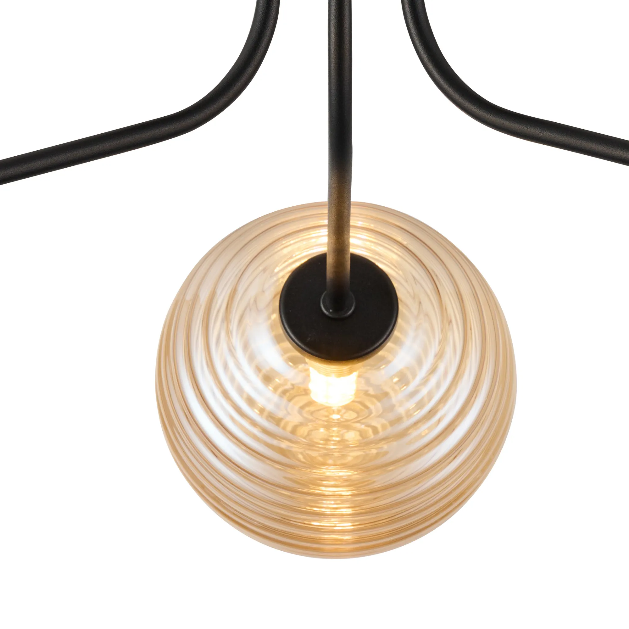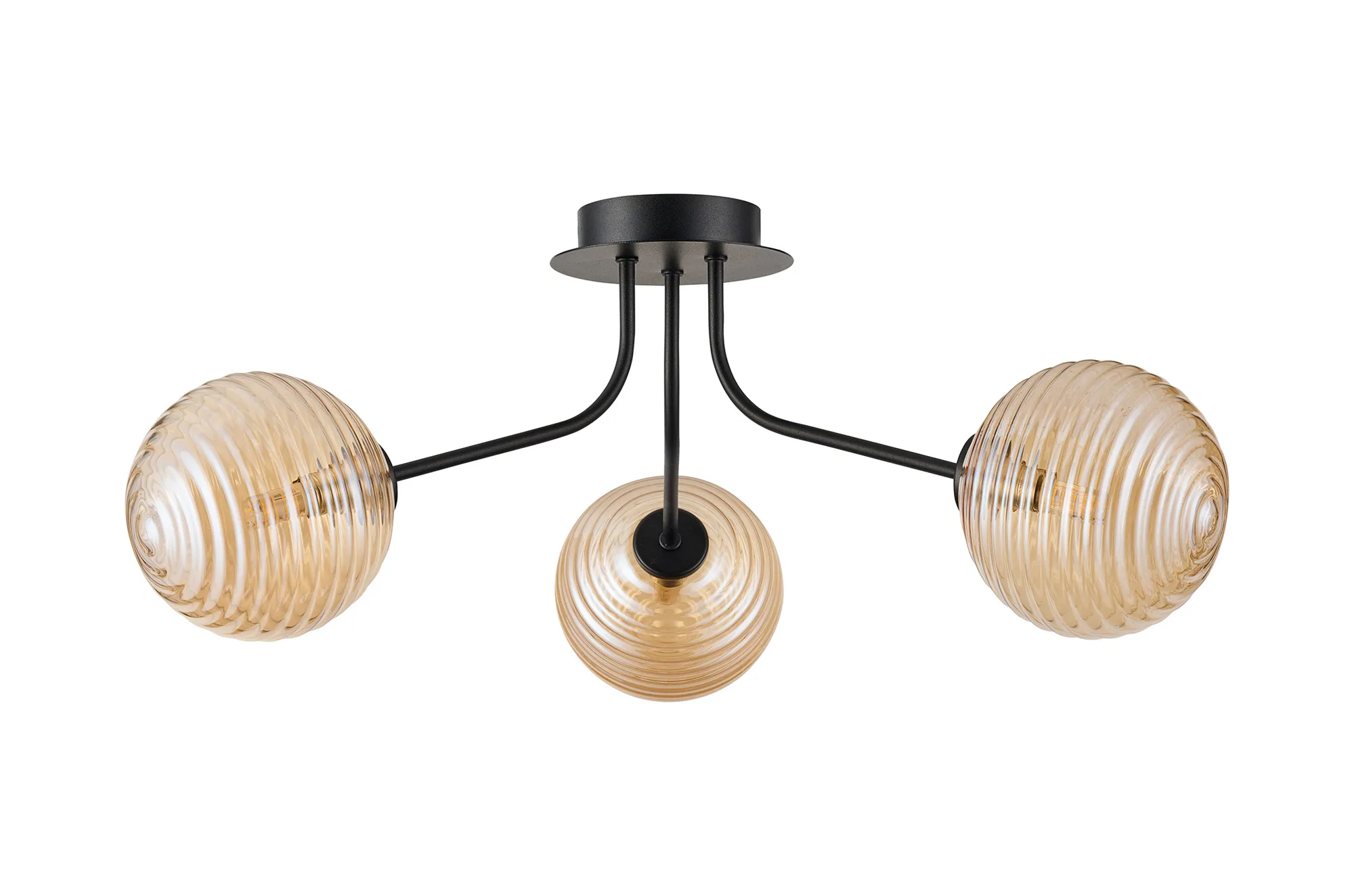 OTHER Duncan Semi Flush Light, 3 Light G9, Satin Black/Amber Ribbed Round Glass Shade