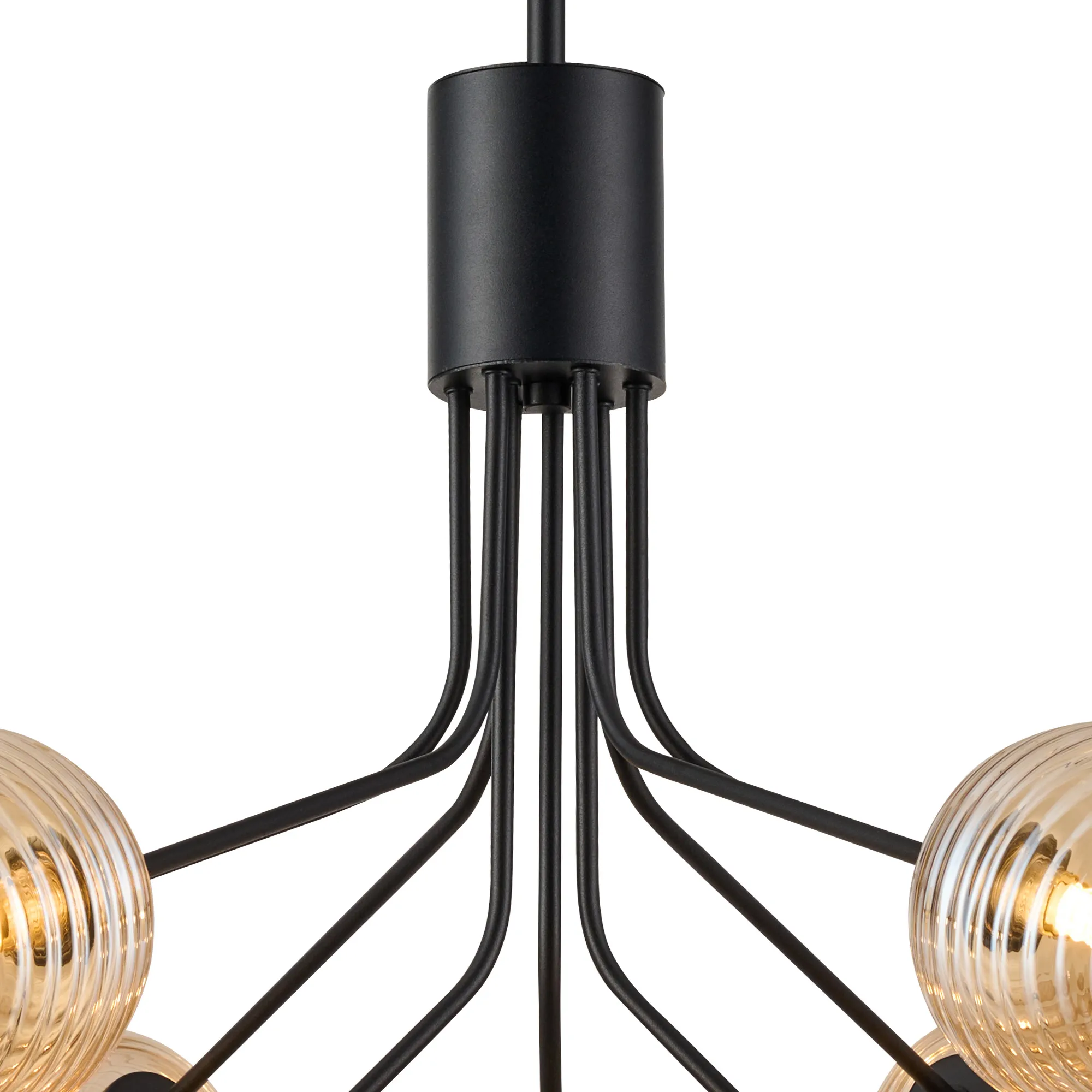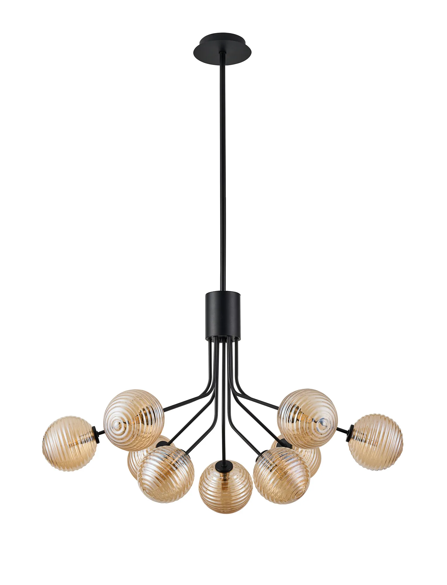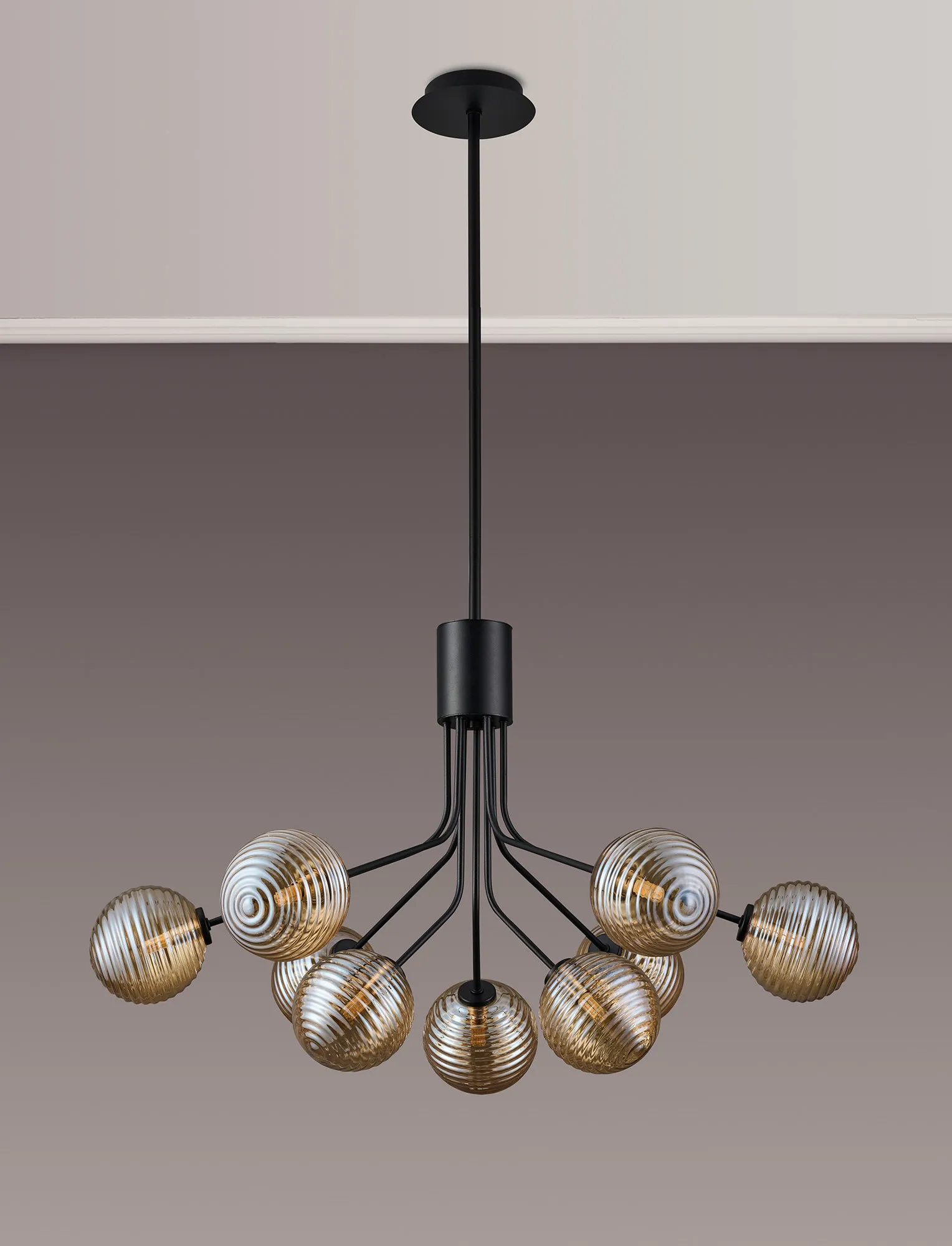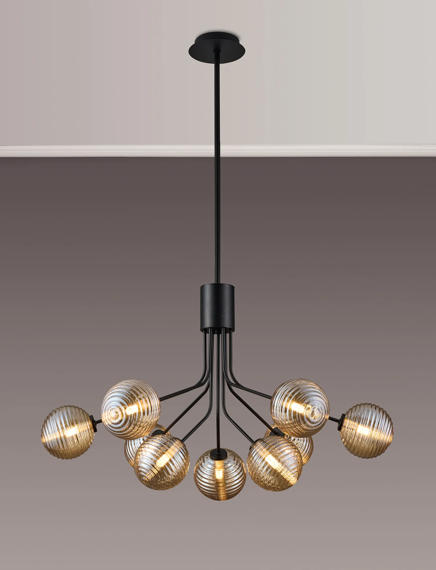Duncan Fixed Pendant, 6 + 3 Light G9, Satin Black/Opal Round Segment Glass Shade