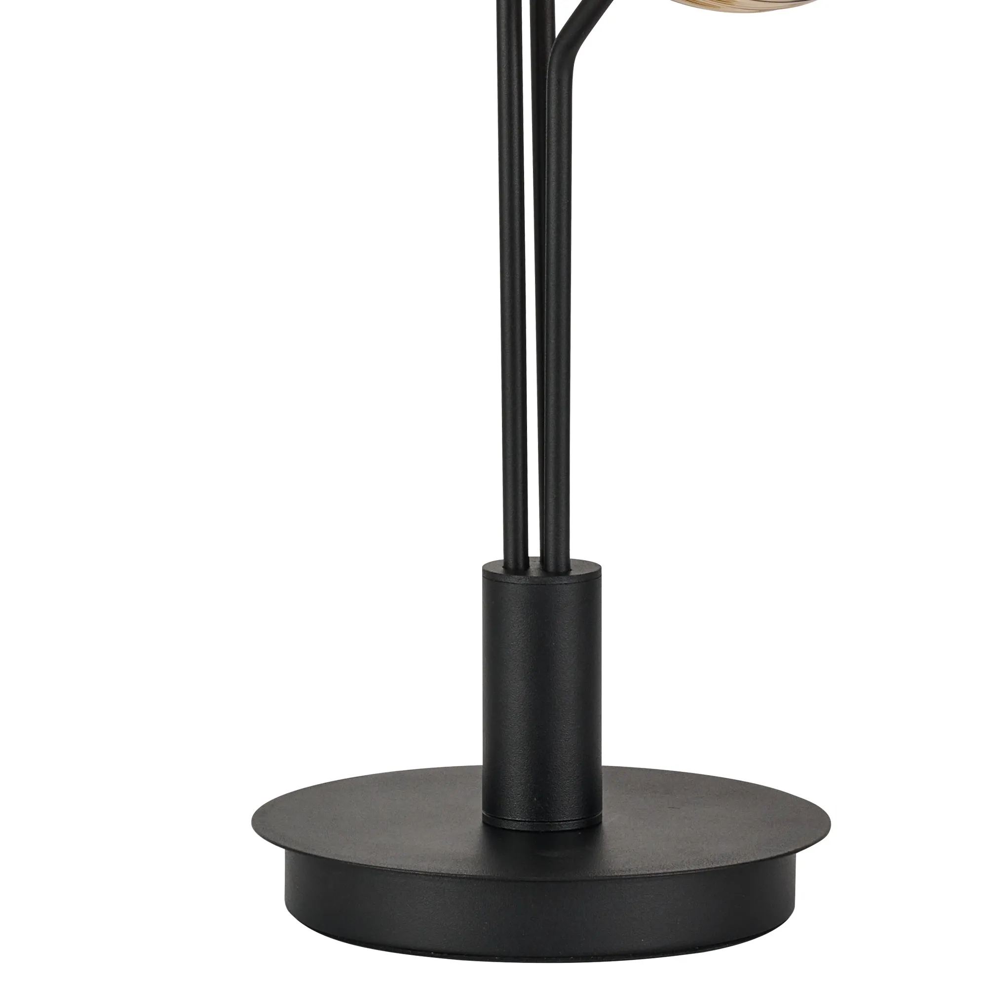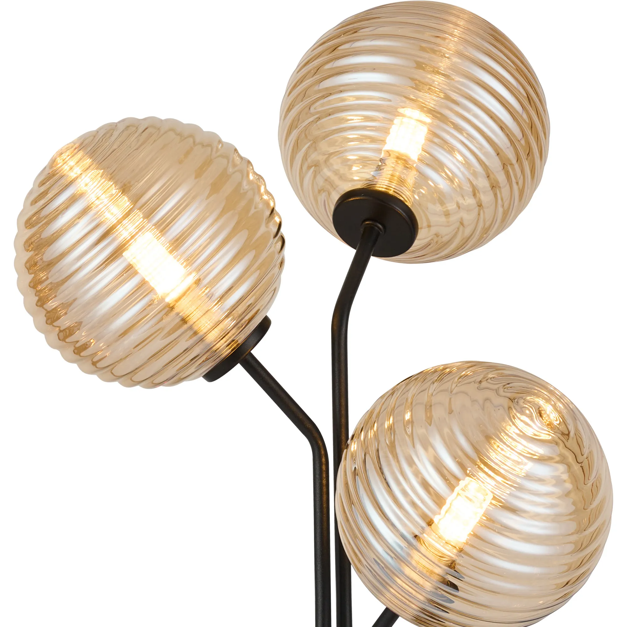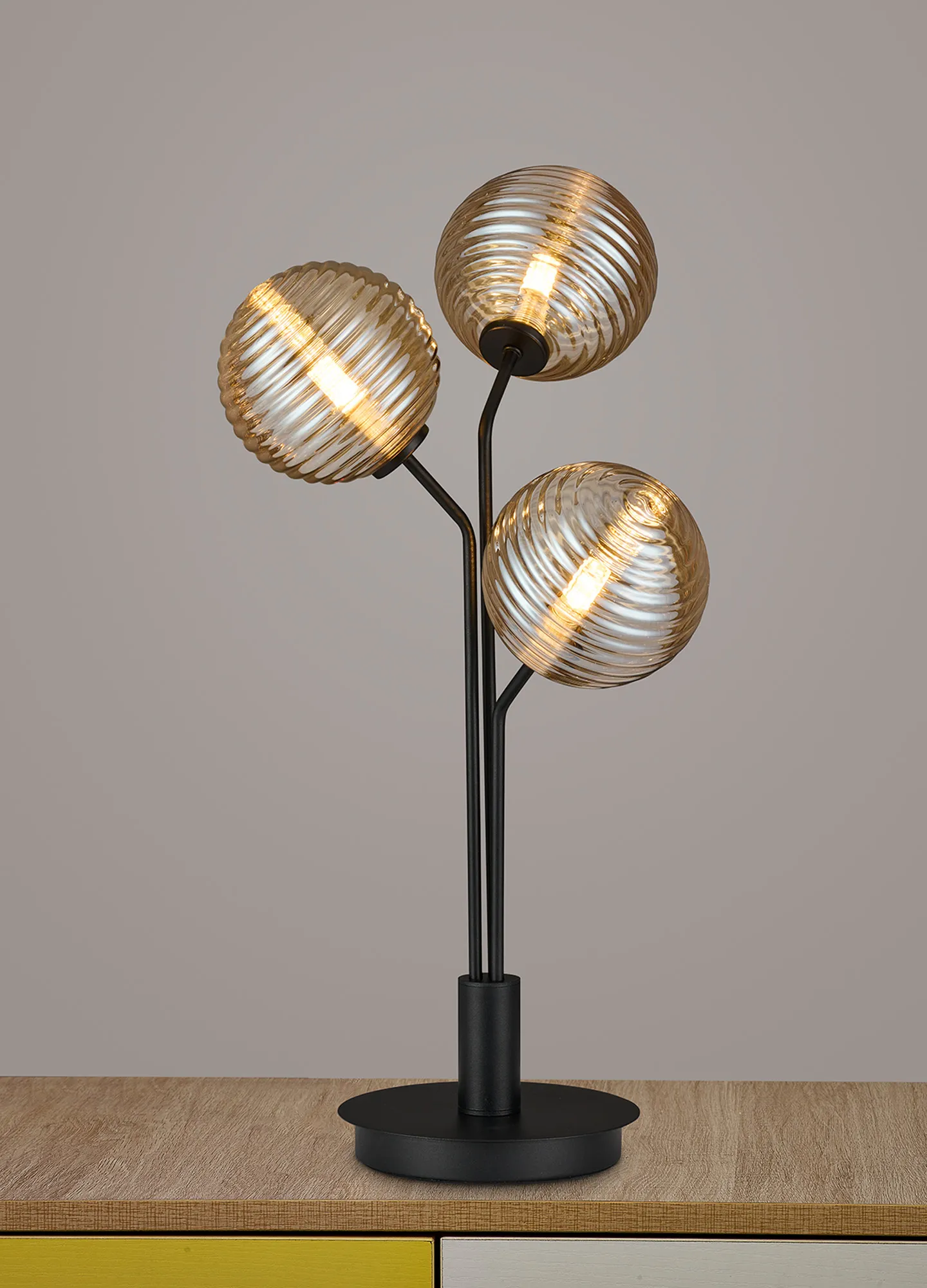 OTHER Duncan Table Lamp, 3 Light G9, Satin Black/Amber Ribbed Round Glass Shade