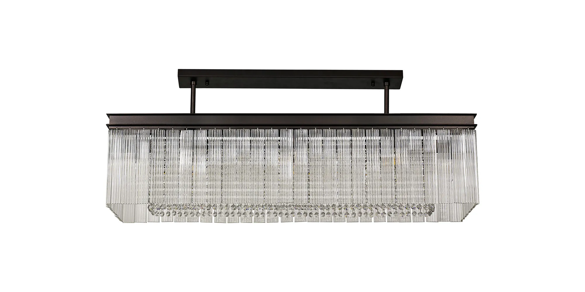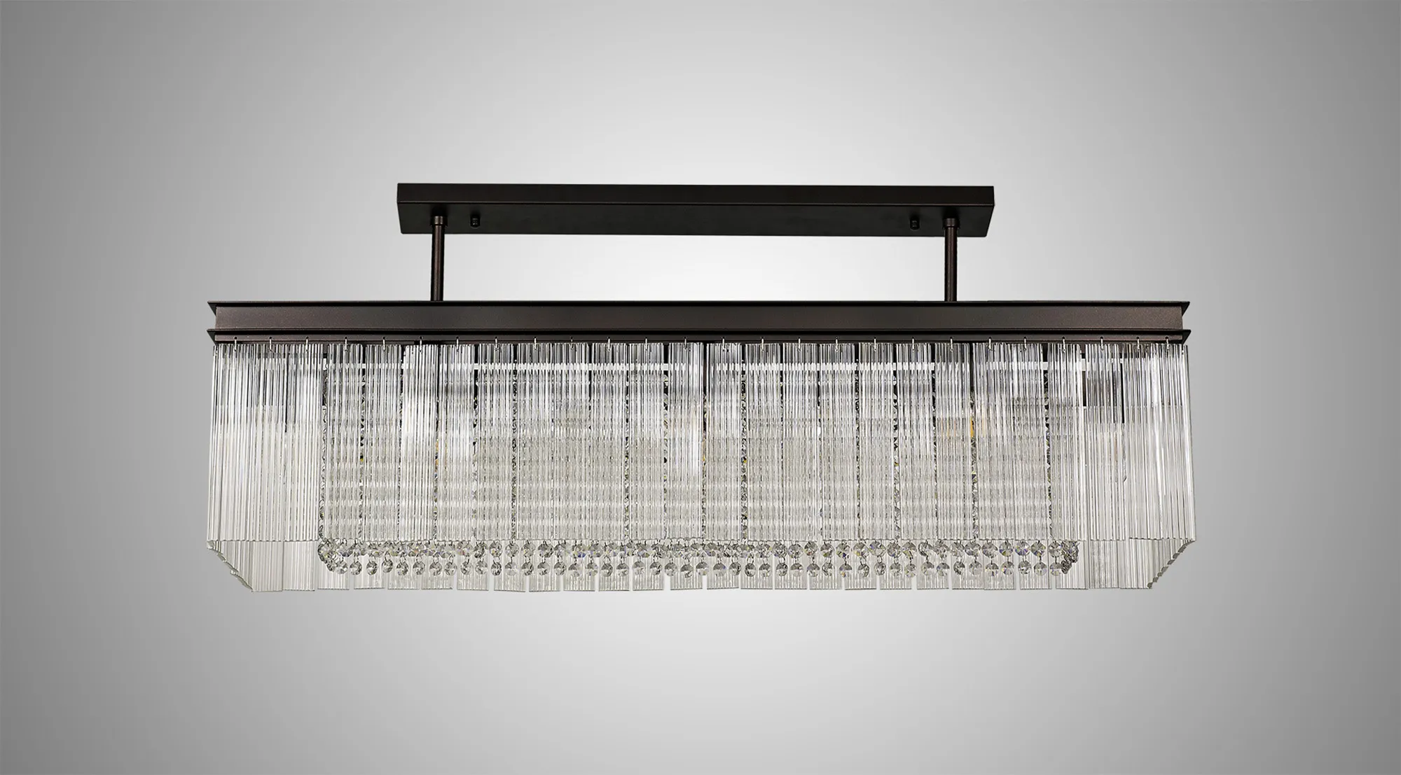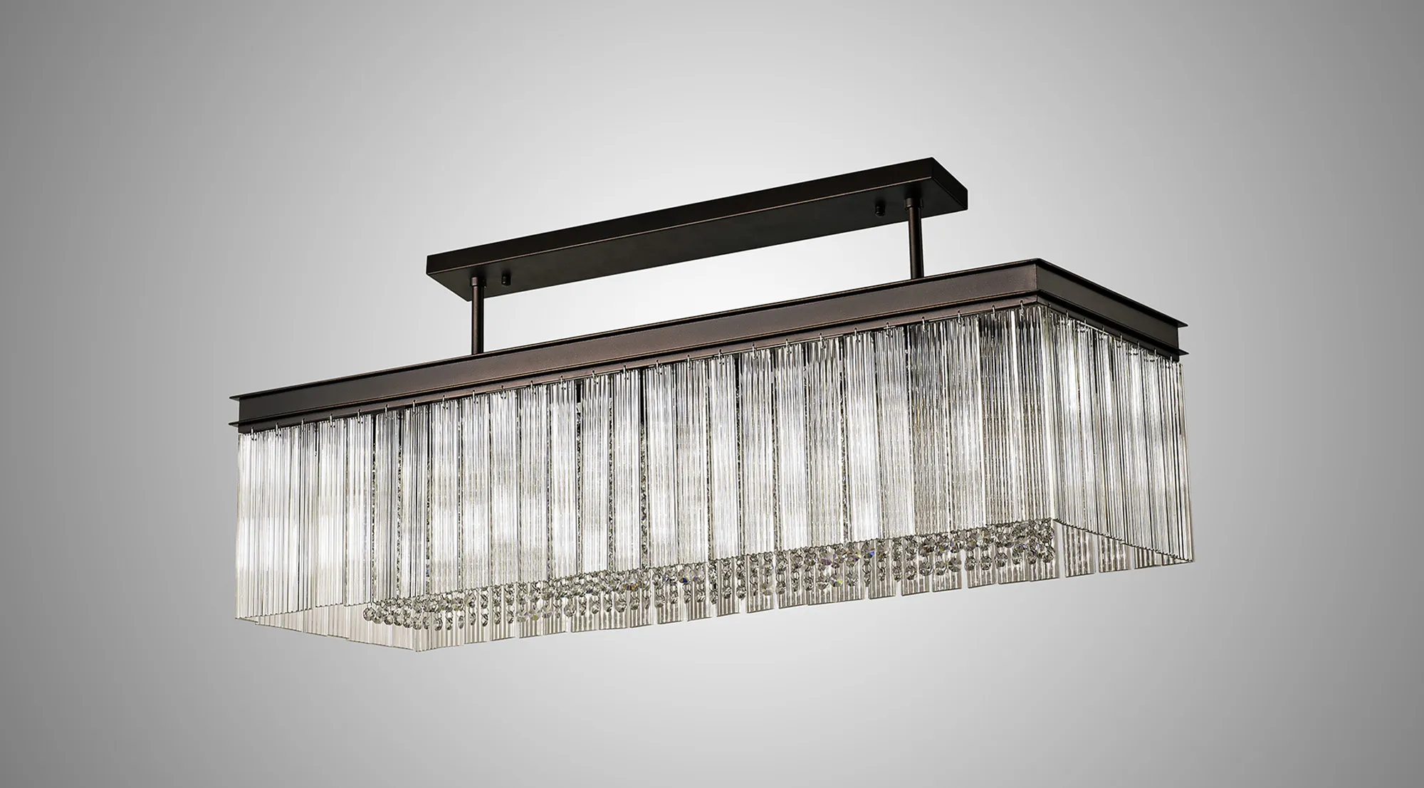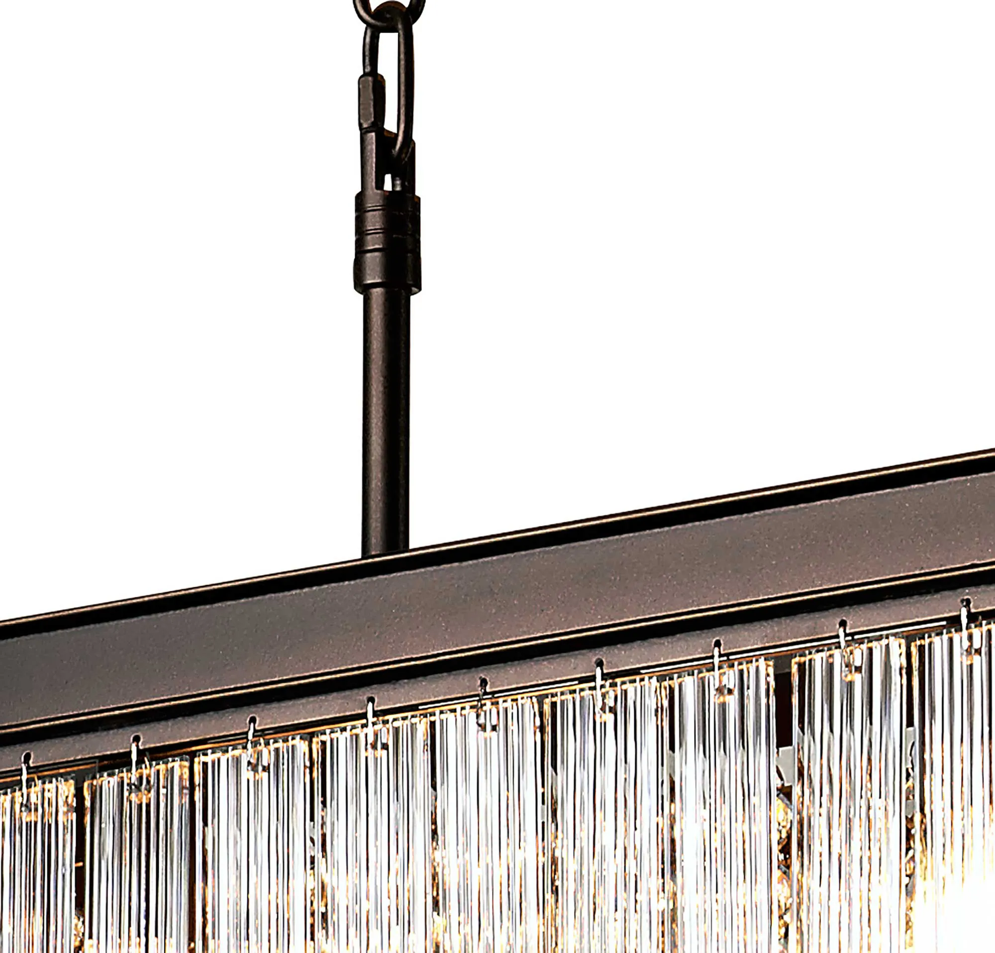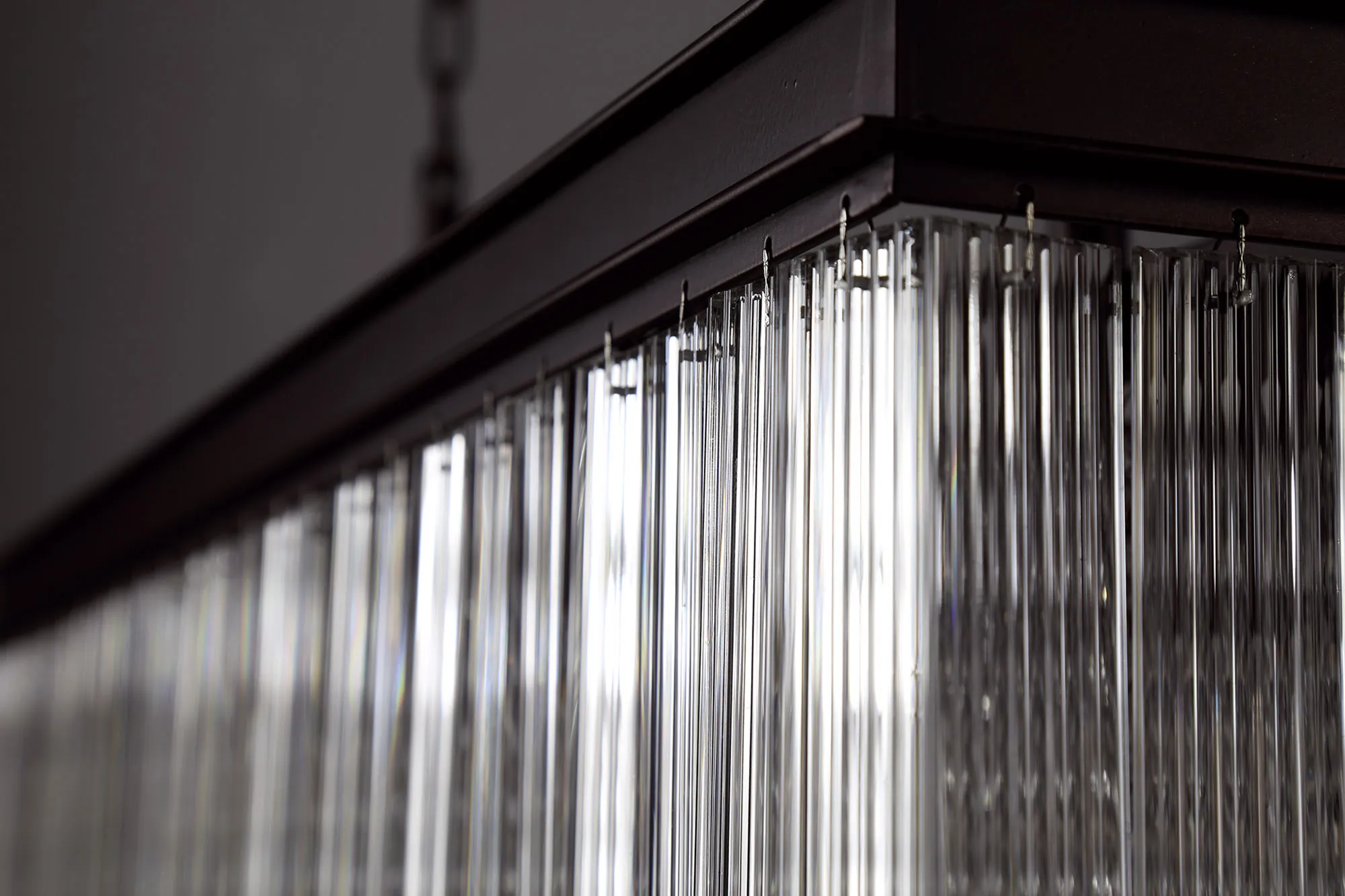 Traditional fittings form this comprehensive collection Sandy, the dark brown oxide colour finish of the framework is a more time-honoured tone for classic lighting styles. The solemn integrity of these models are maintained by the chosen crystal and glass pieces. A tier effect is created by alternating rings of long rectangular glass pieces with a ridged effect and strands of high quality, clear crystals buttons, with the new 3 tier 27 light making an impressive statement.