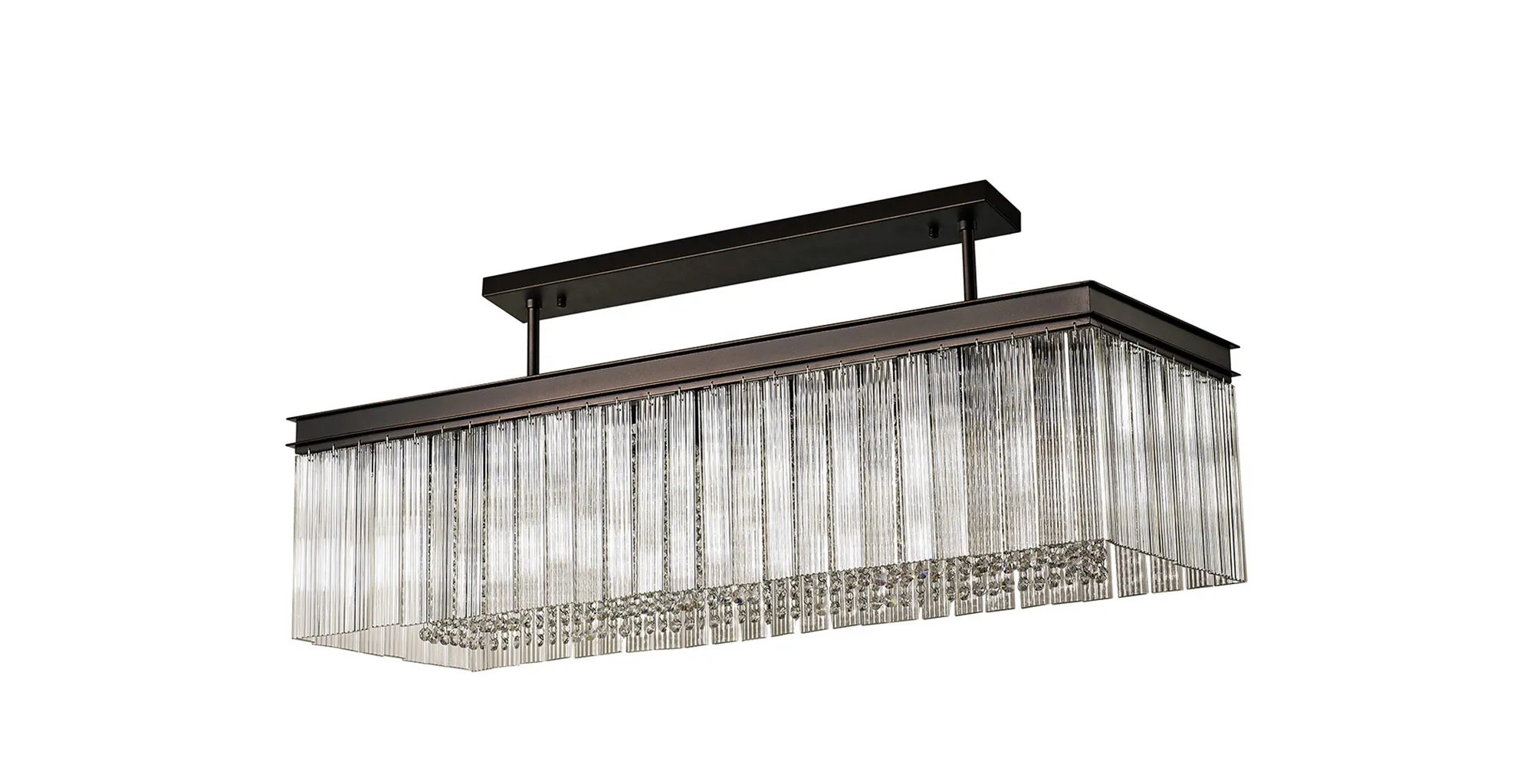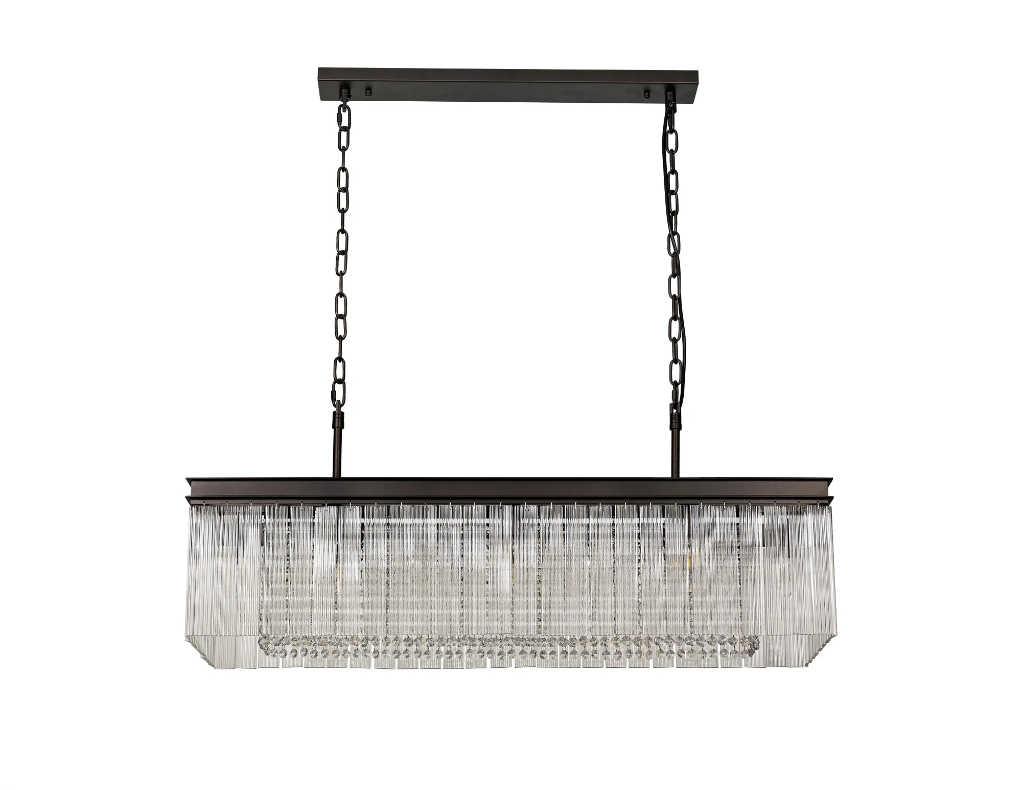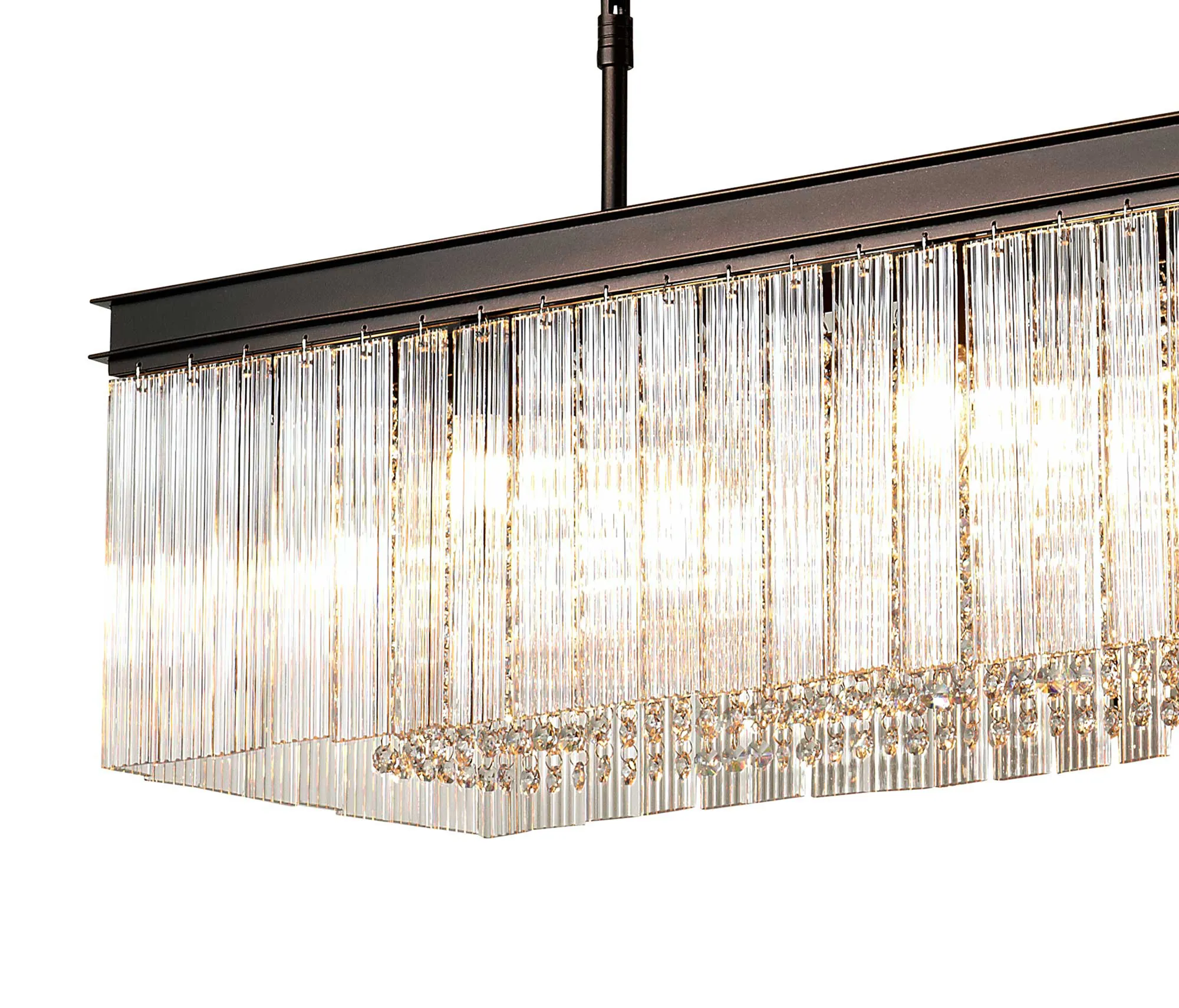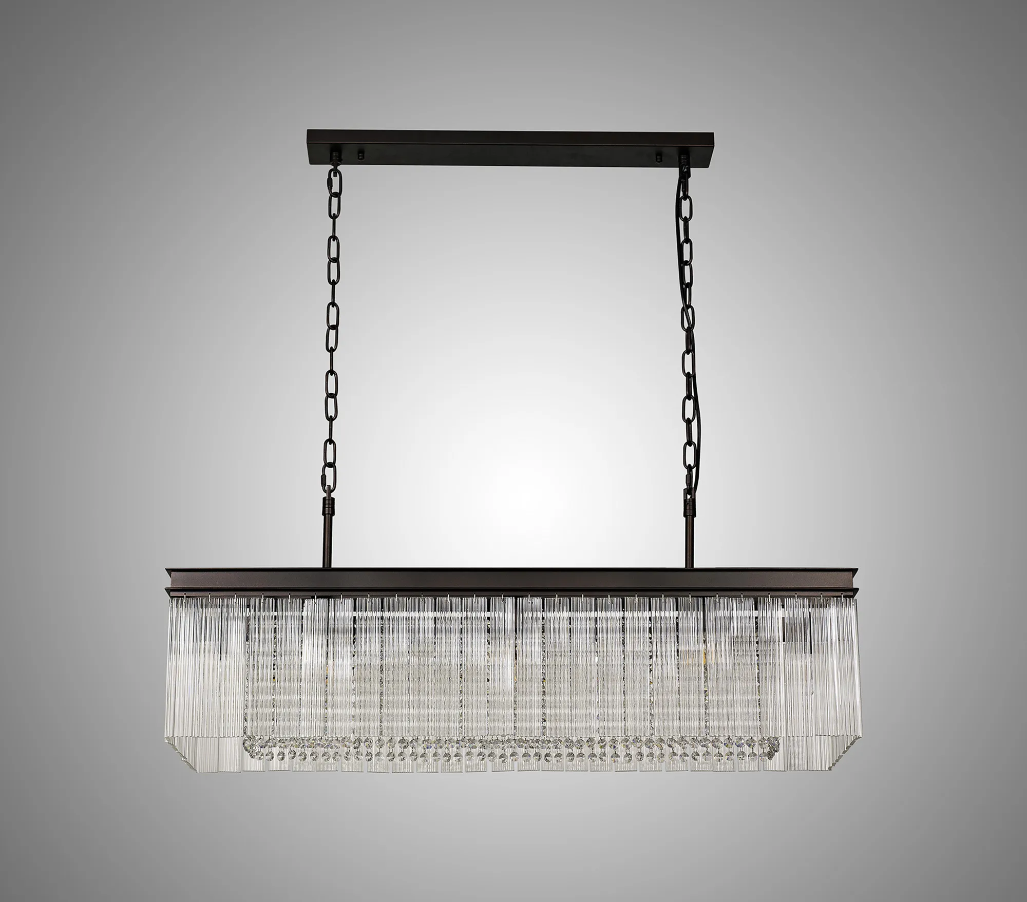 Traditional fittings form this comprehensive collection Sandy, the dark brown oxide colour finish of the framework is a more time-honoured tone for classic lighting styles. The solemn integrity of these models are maintained by the chosen crystal and glass pieces. A tier effect is created by alternating rings of long rectangular glass pieces with a ridged effect and strands of high quality, clear crystals buttons, with the new 3 tier 27 light making an impressive statement.