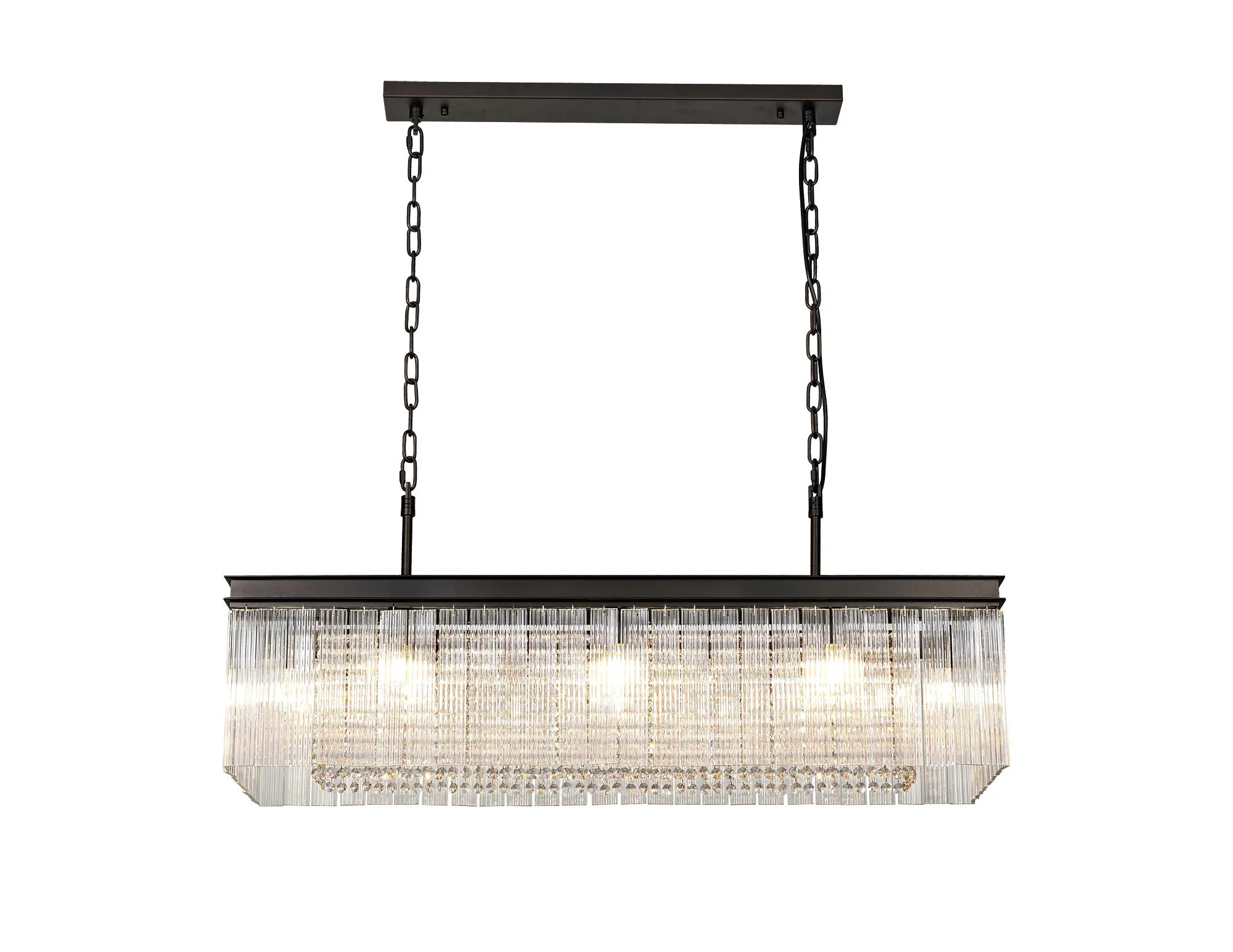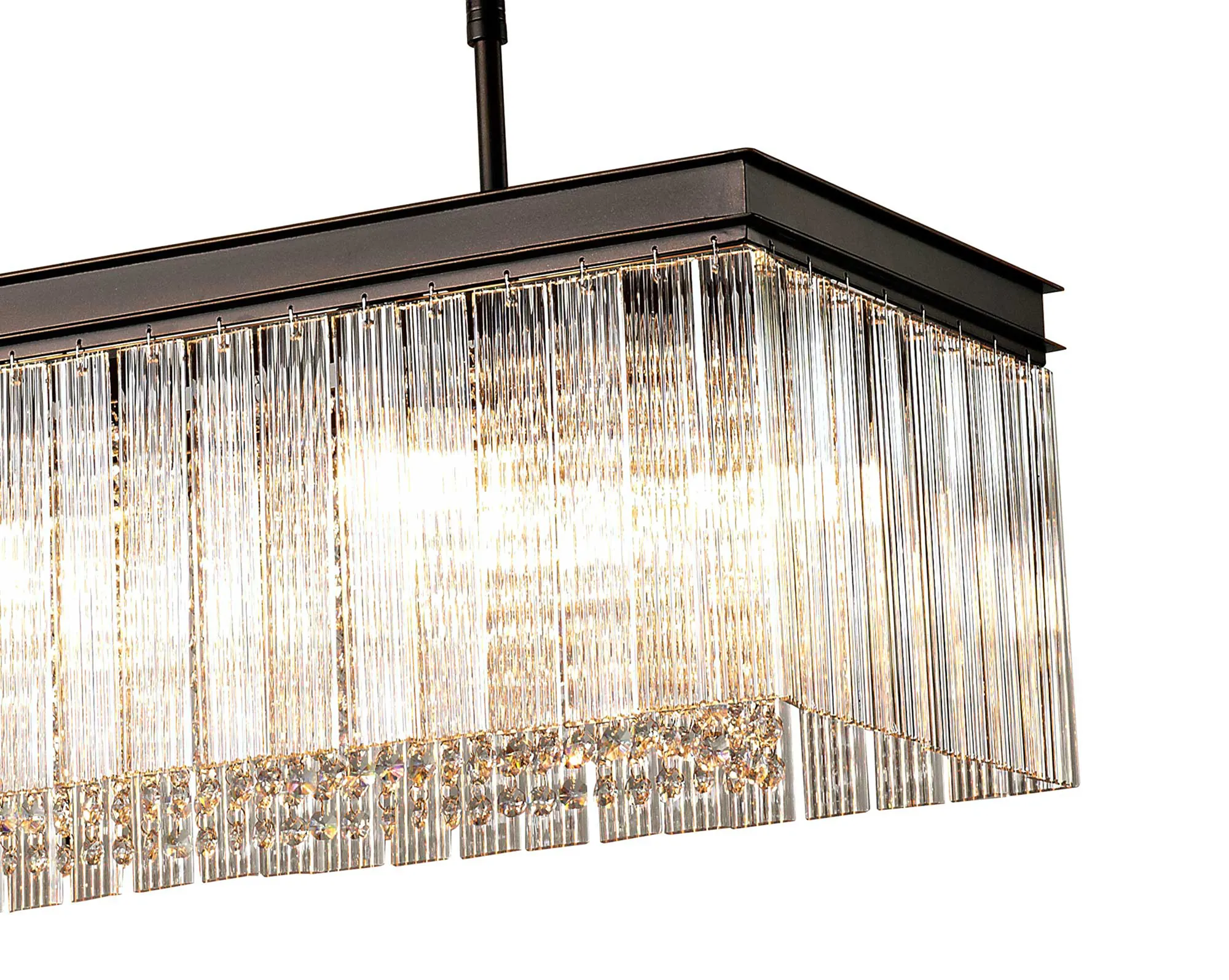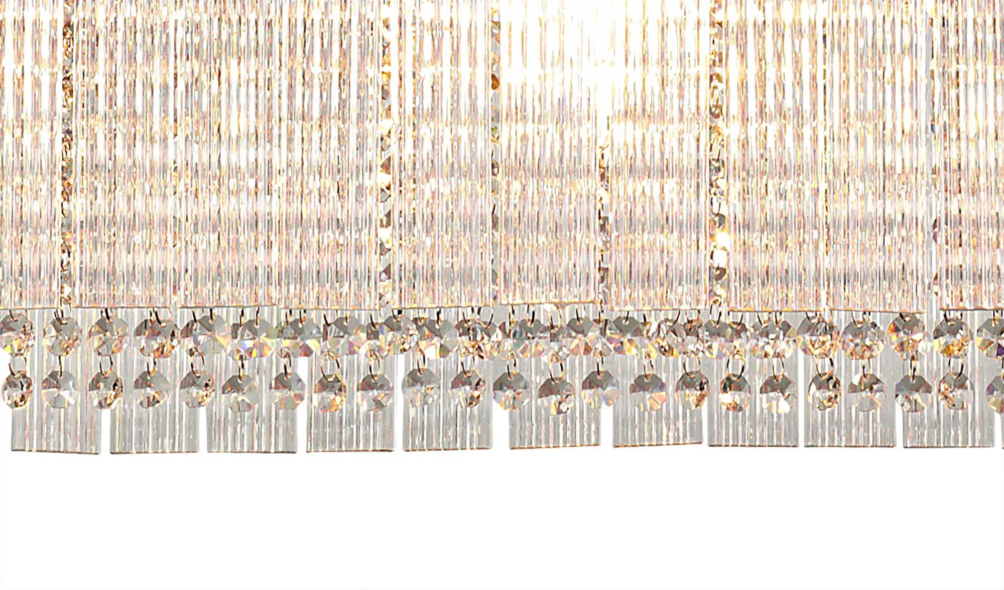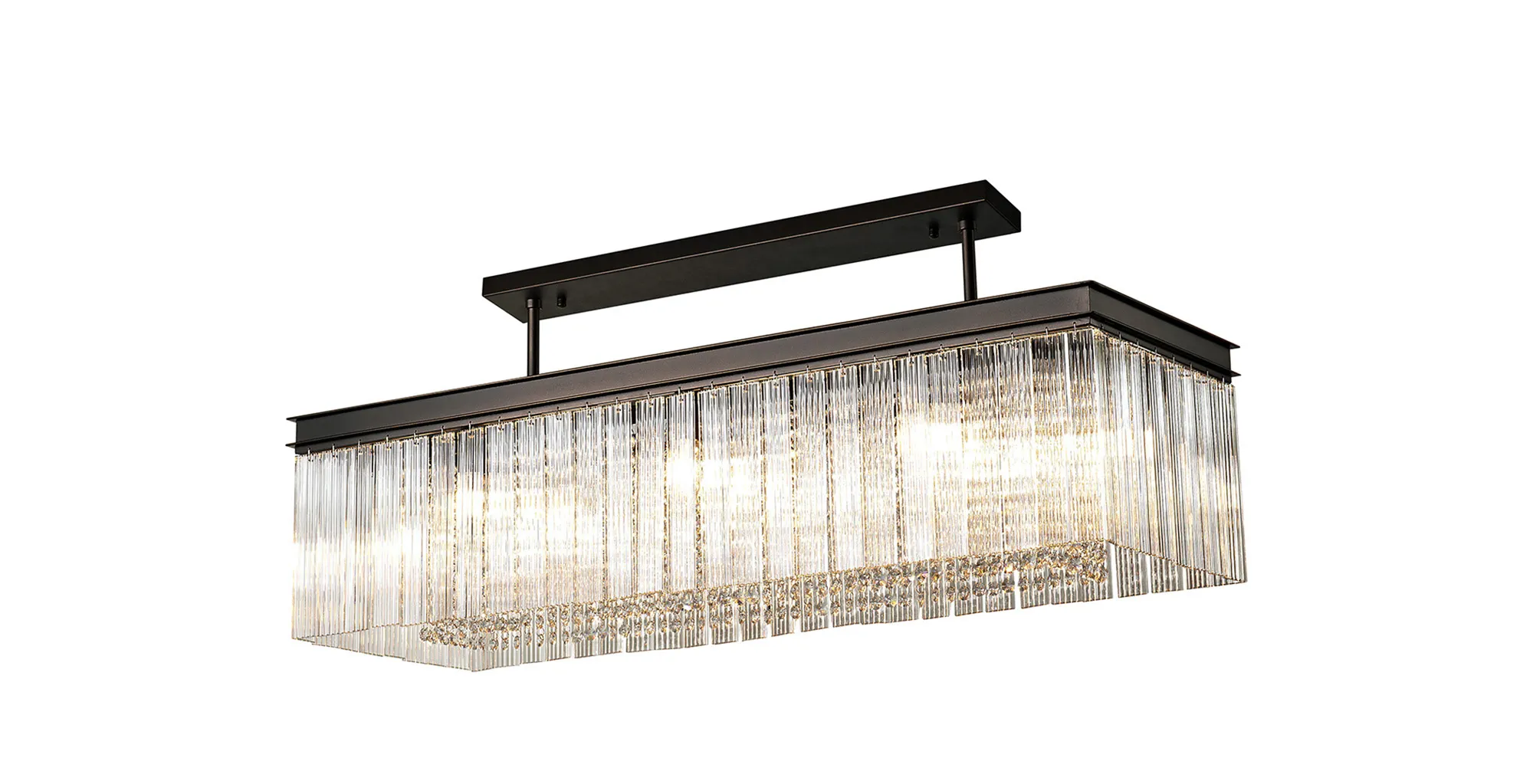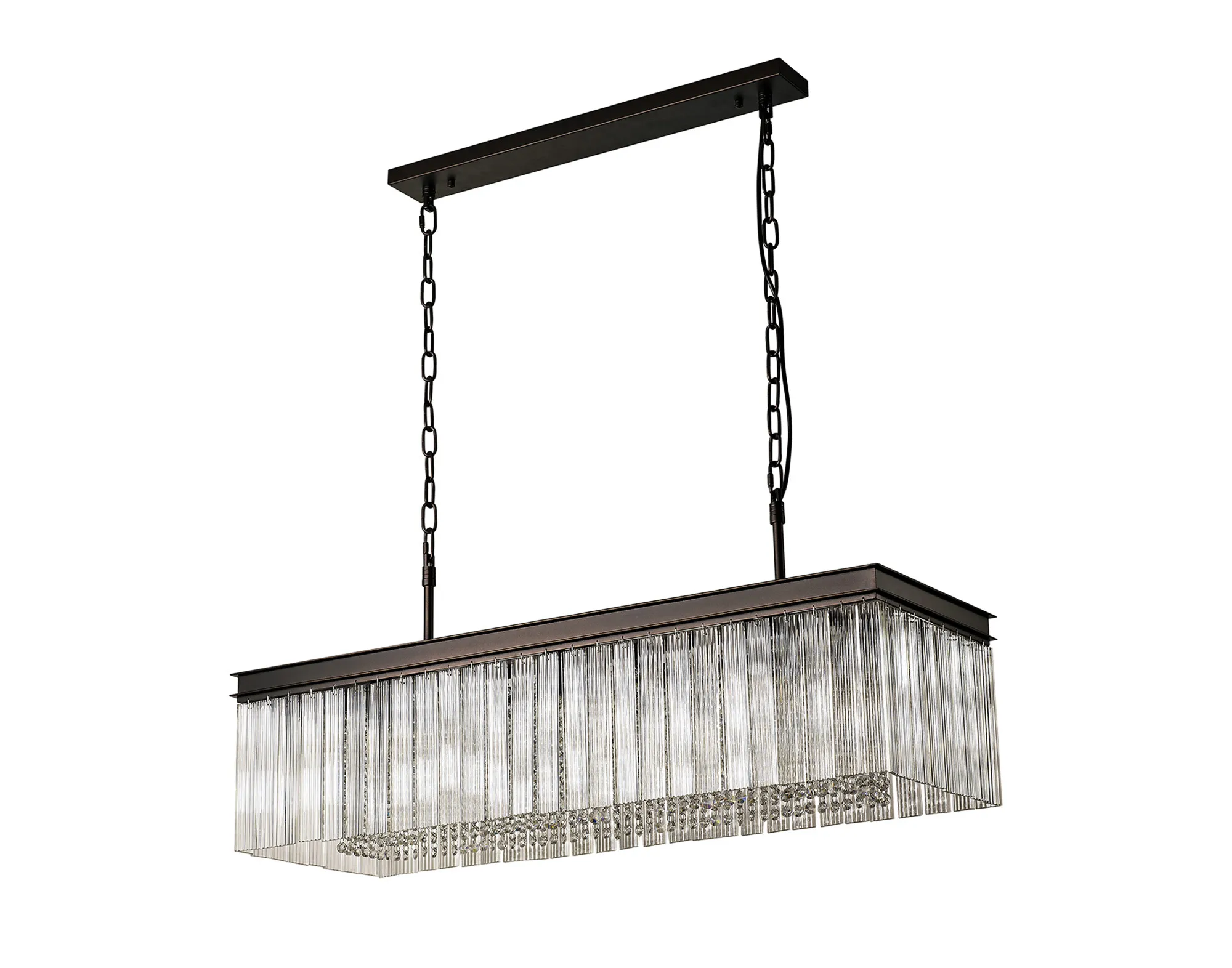 Traditional fittings form this comprehensive collection Sandy, the dark brown oxide colour finish of the framework is a more time-honoured tone for classic lighting styles. The solemn integrity of these models are maintained by the chosen crystal and glass pieces. A tier effect is created by alternating rings of long rectangular glass pieces with a ridged effect and strands of high quality, clear crystals buttons, with the new 3 tier 27 light making an impressive statement.