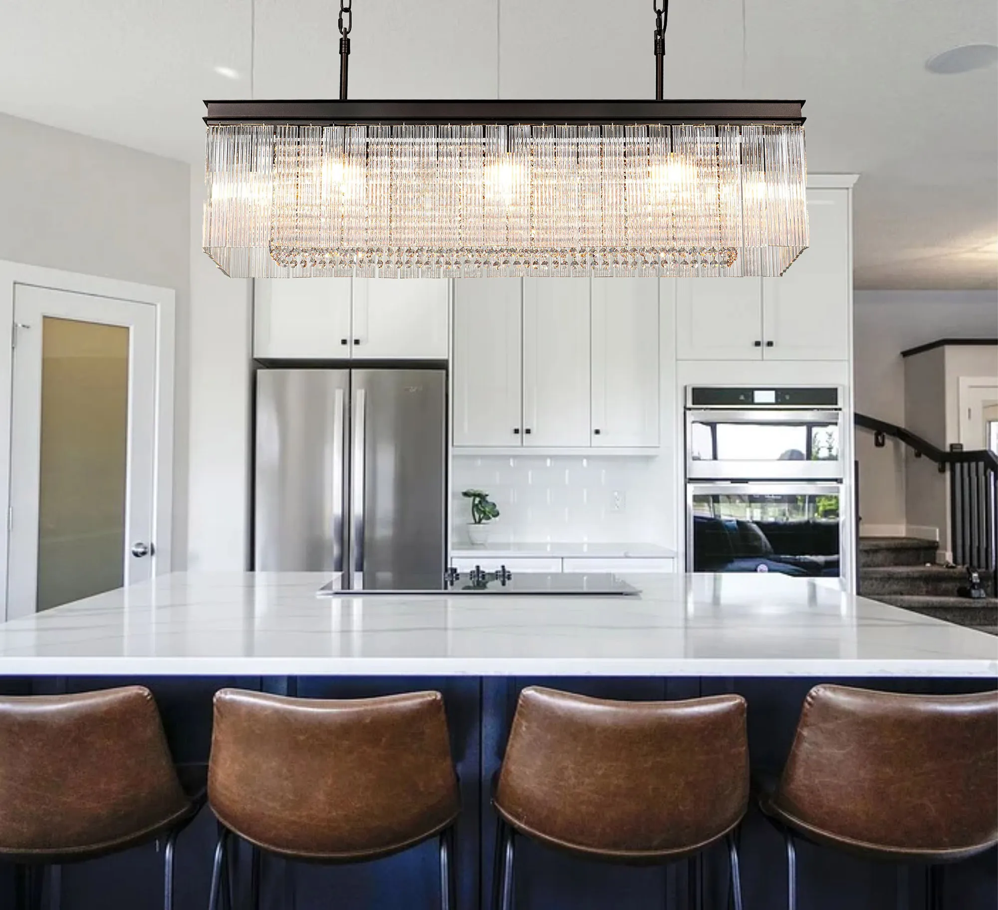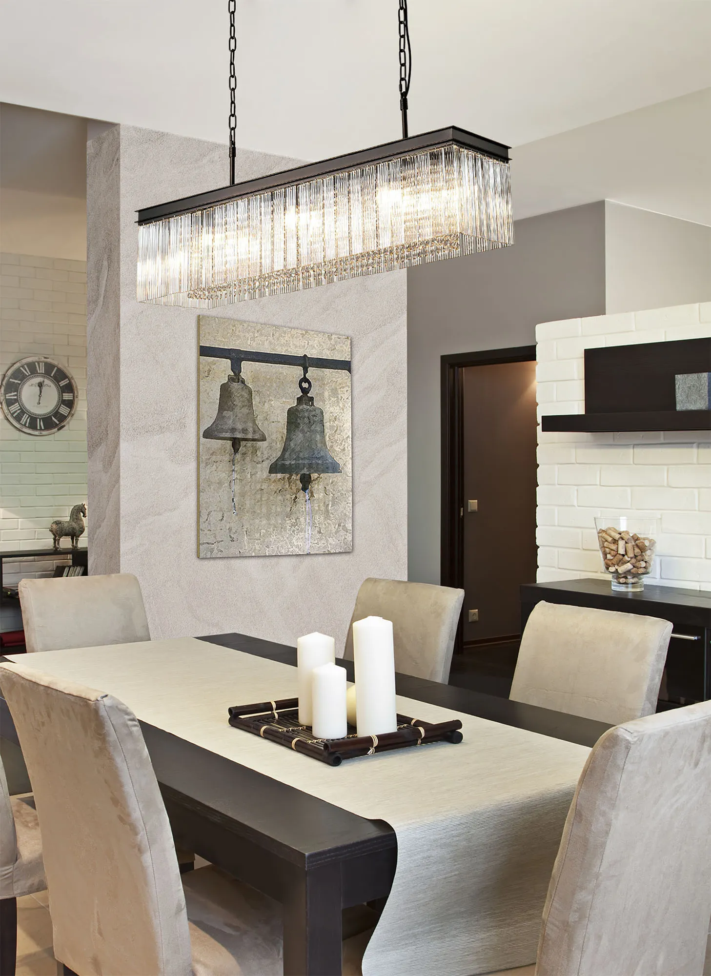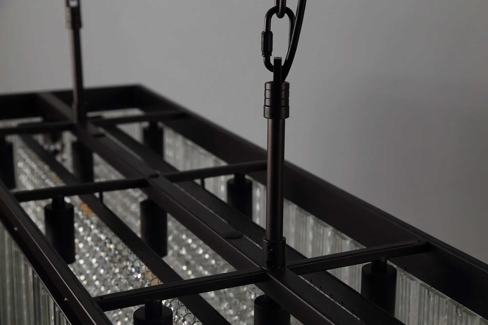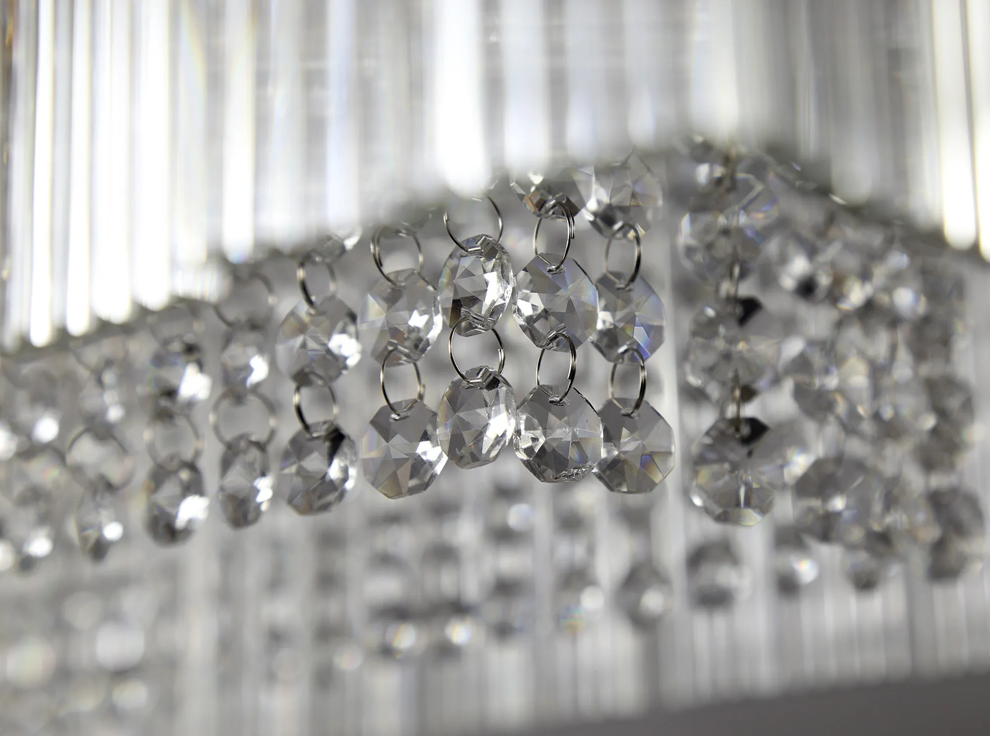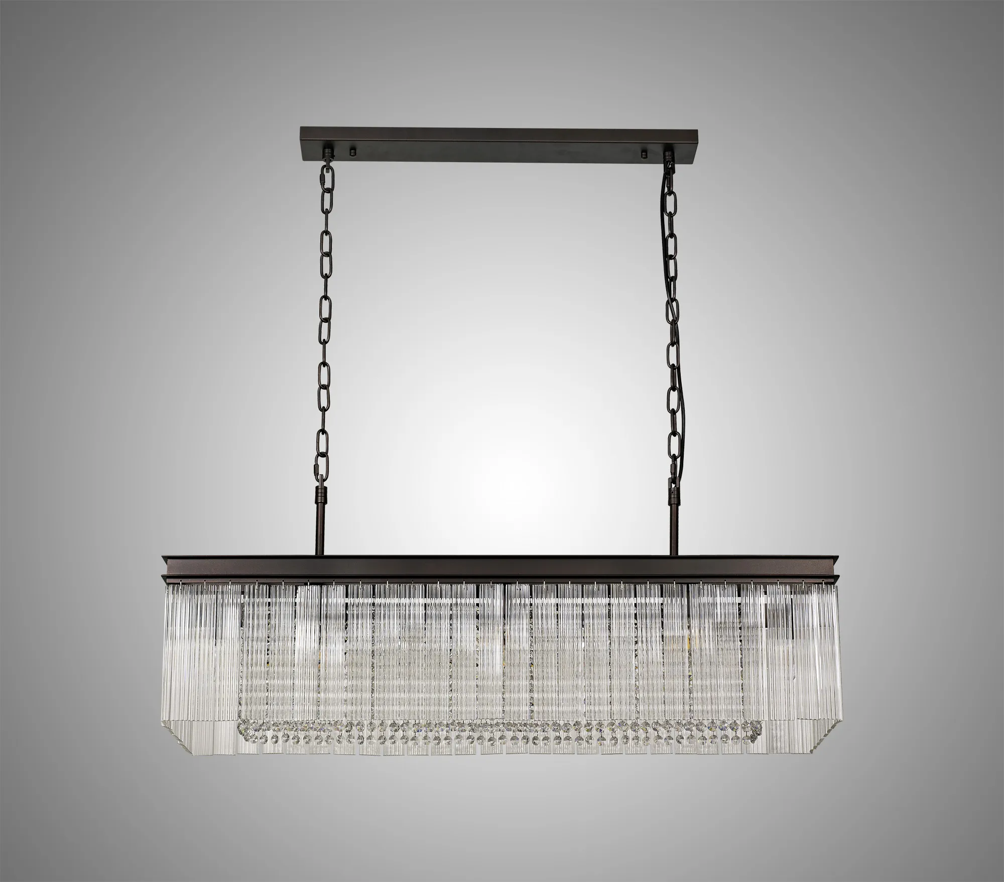 Traditional fittings form this comprehensive collection Sandy, the dark brown oxide colour finish of the framework is a more time-honoured tone for classic lighting styles. The solemn integrity of these models are maintained by the chosen crystal and glass pieces. A tier effect is created by alternating rings of long rectangular glass pieces with a ridged effect and strands of high quality, clear crystals buttons, with the new 3 tier 27 light making an impressive statement.