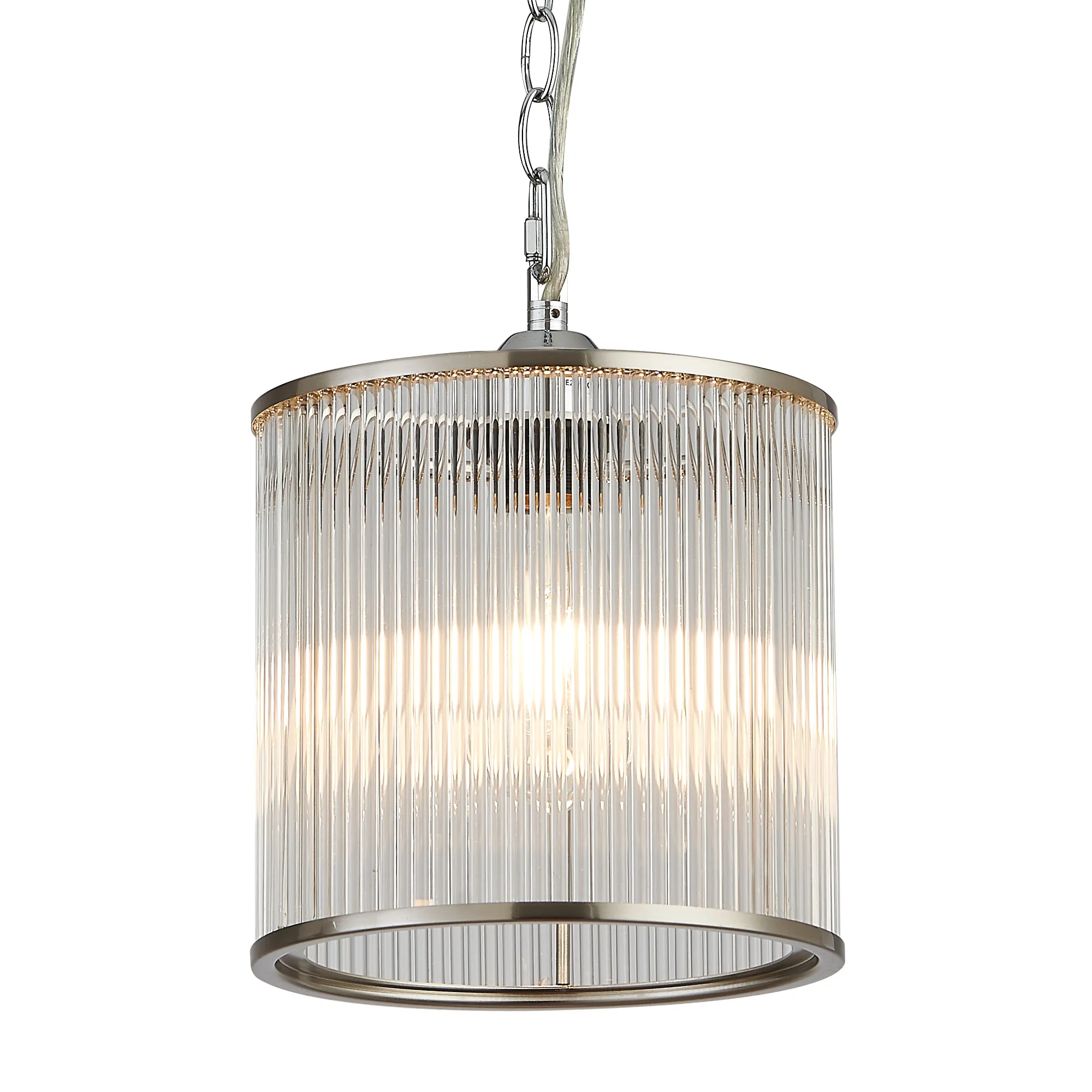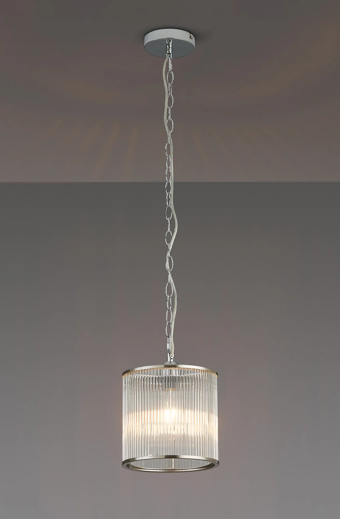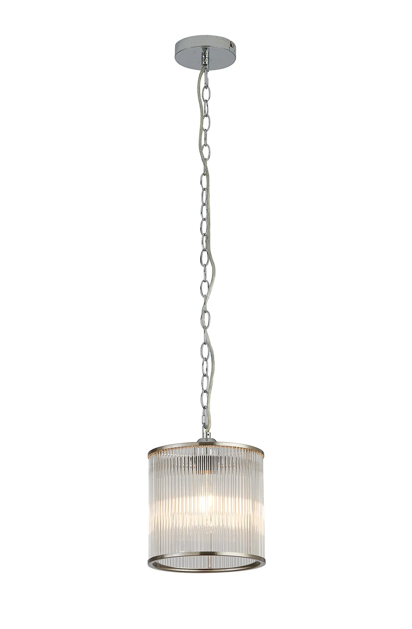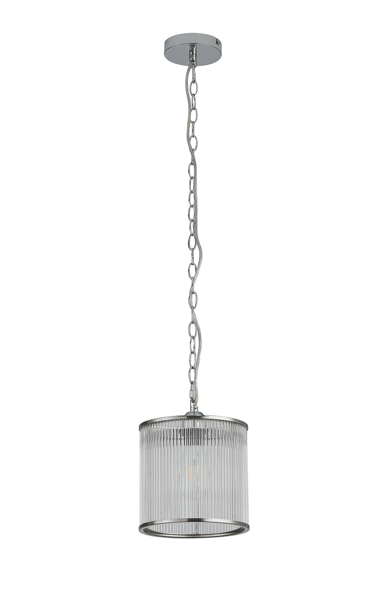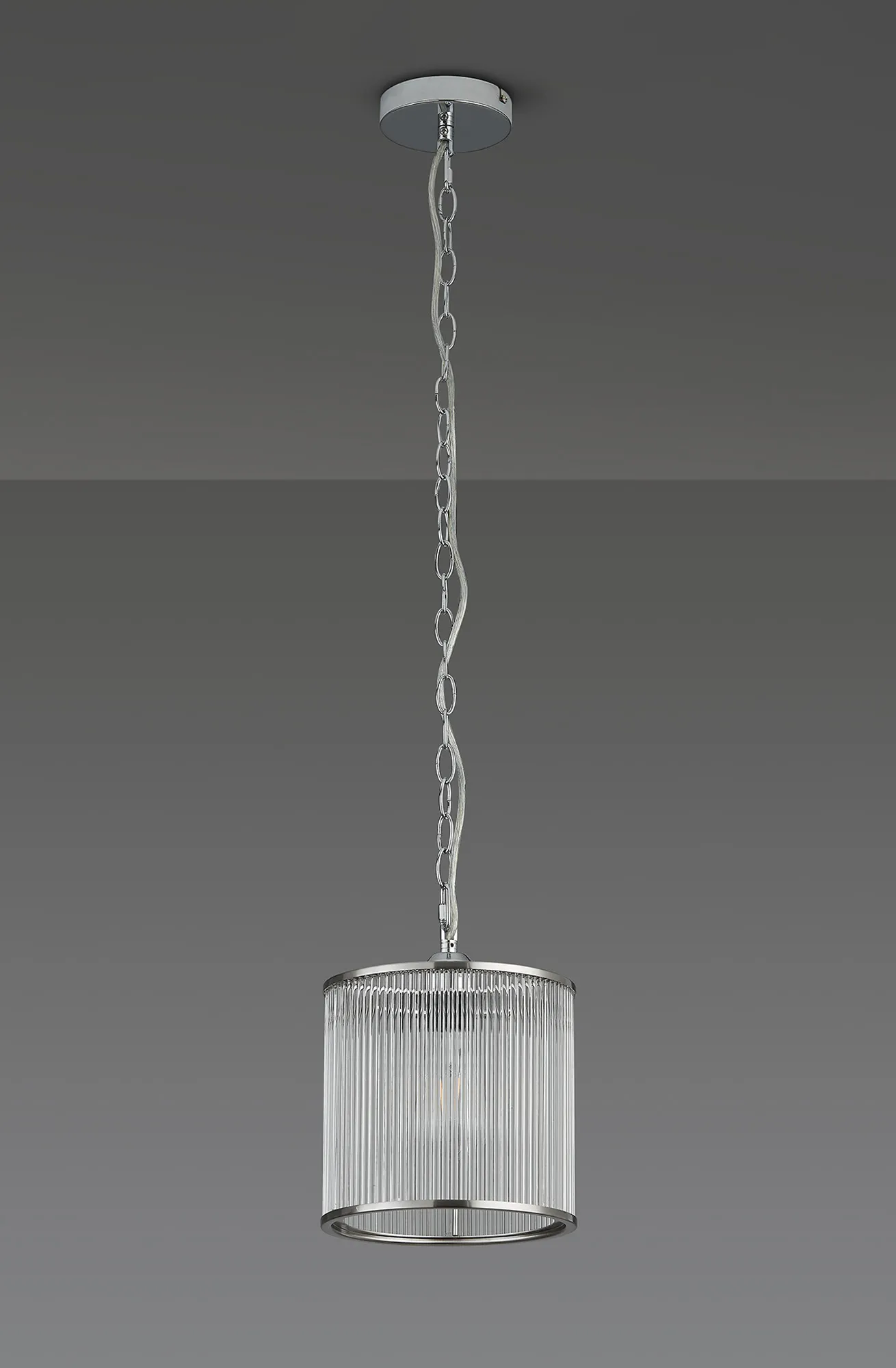 Salmon 1.2m Chain Single Pendant With 17.5 x 25cm Glass Rod Shade, 1 x E27, Polished Chrome/Clear