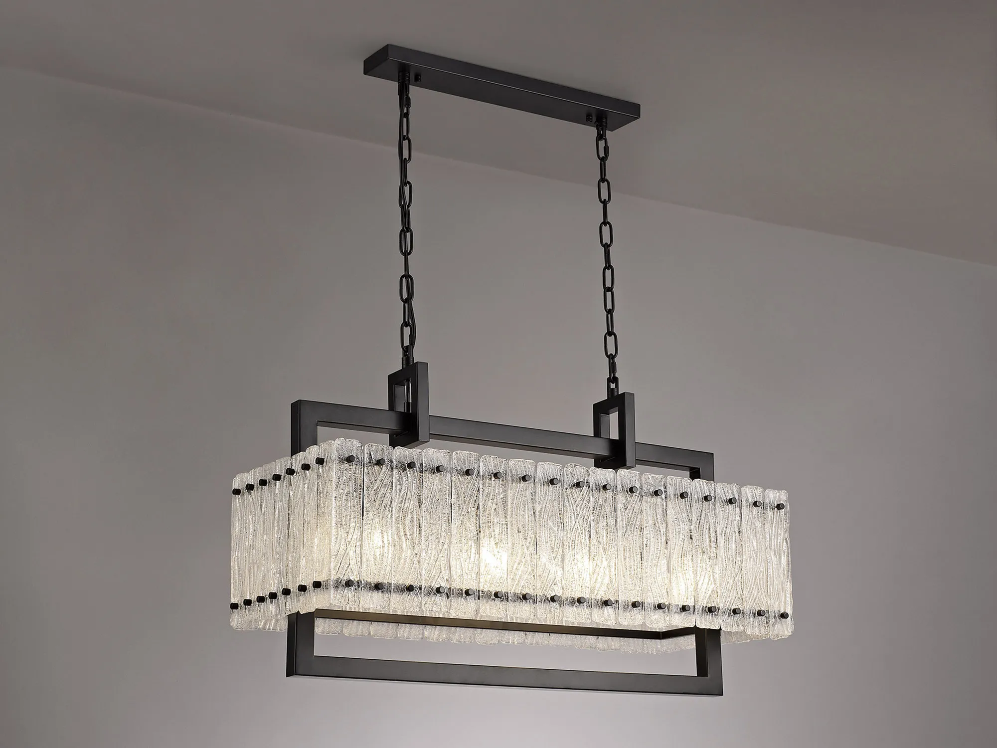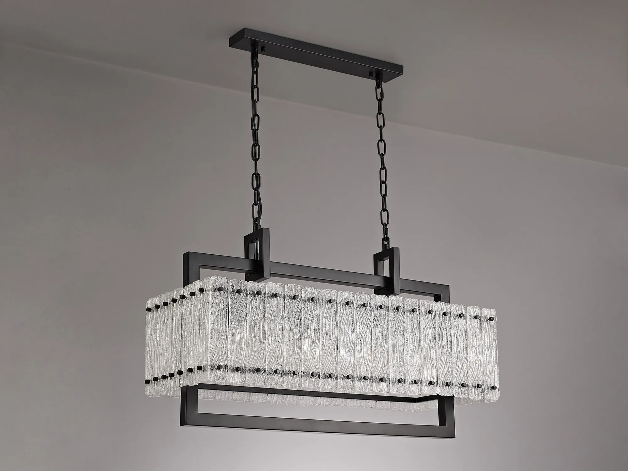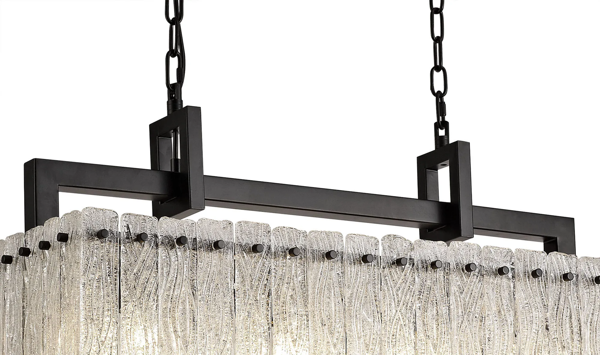 Botany Large Linear Pendant, 12 x E27, Matt Black/Crystal Sand Glass (20.2kg)