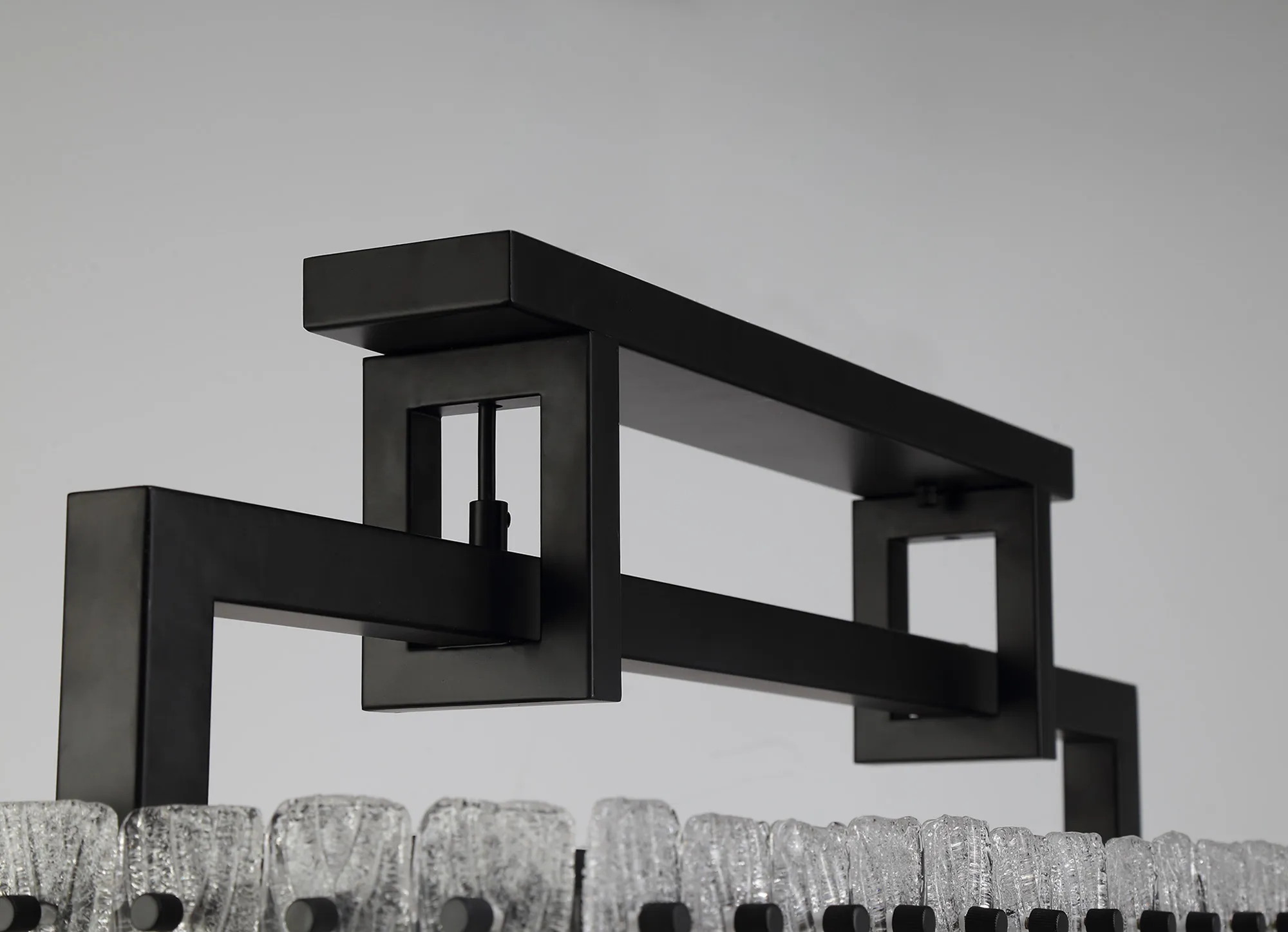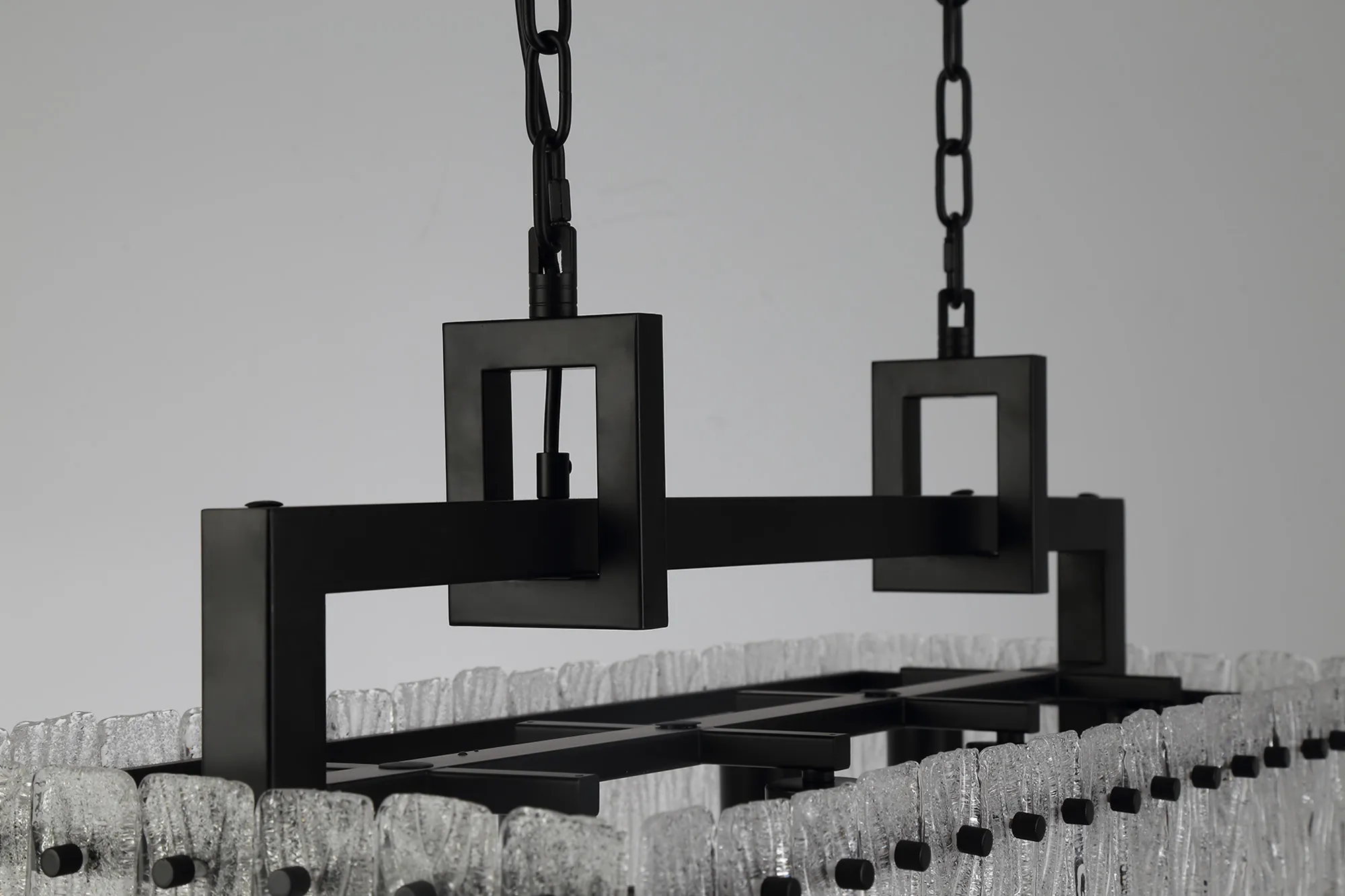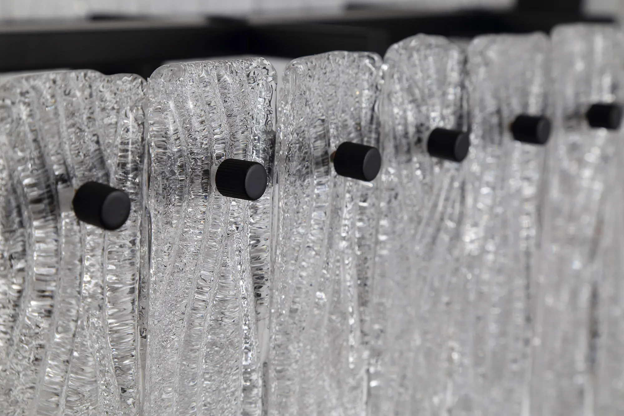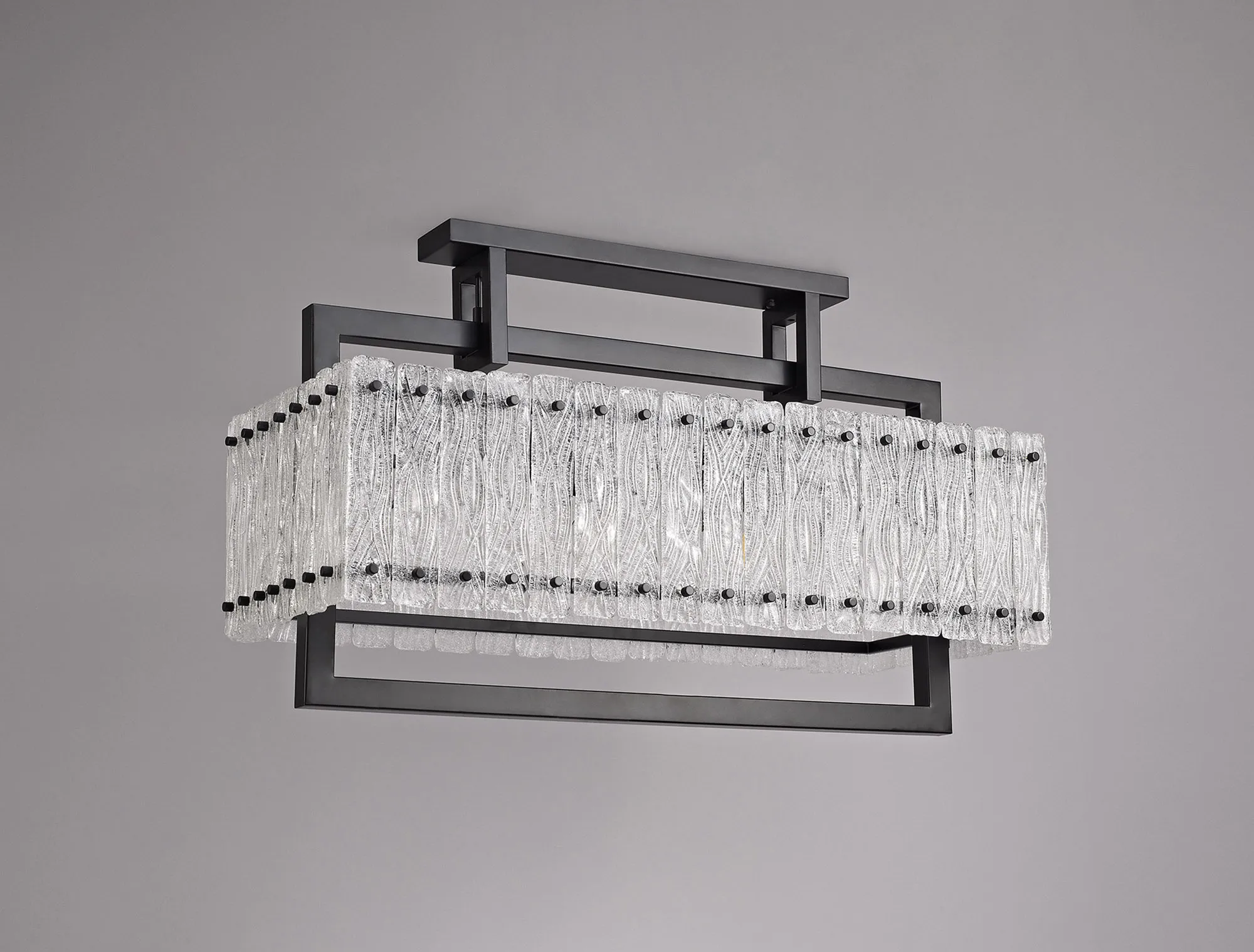 Botany Large Linear Pendant, 12 x E27, Matt Black/Crystal Sand Glass (20.2kg)