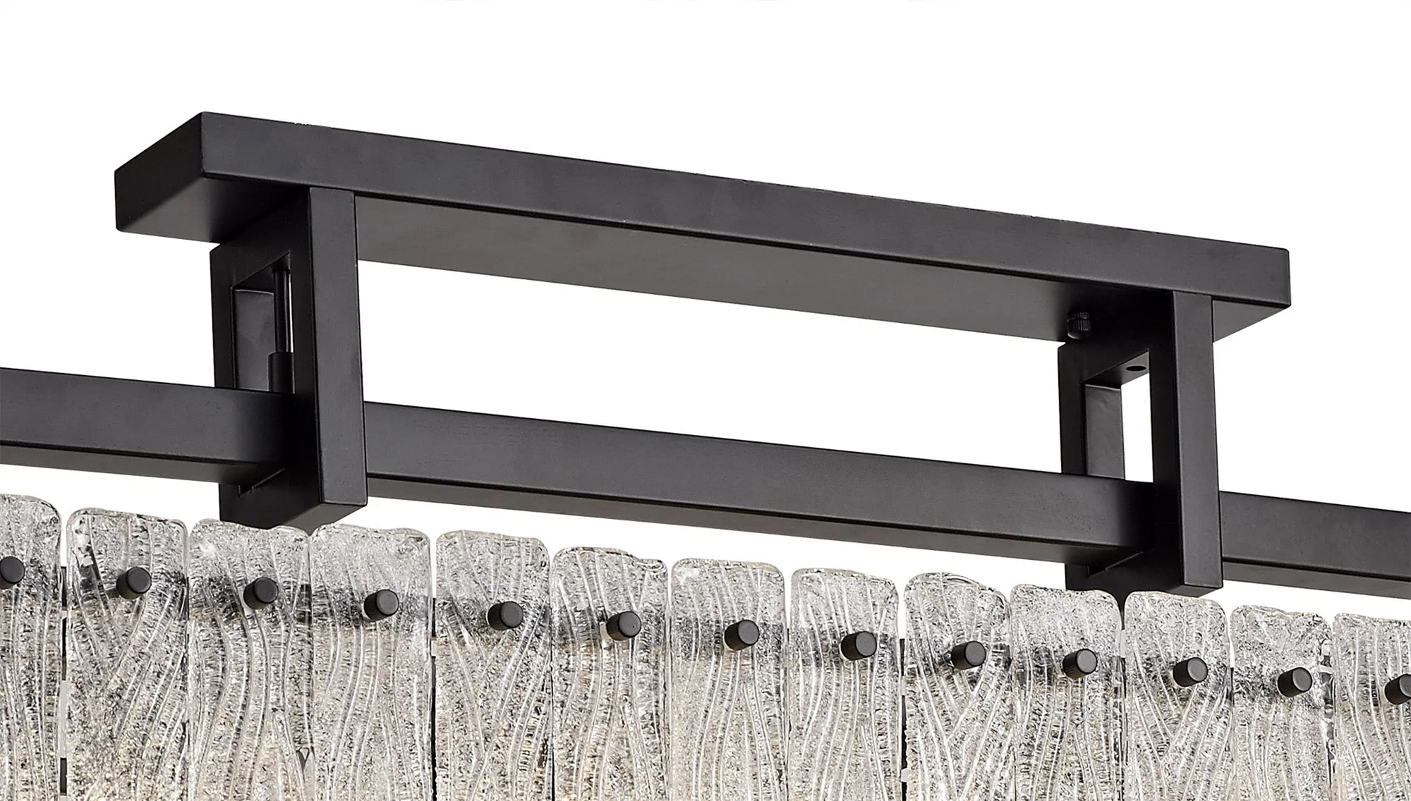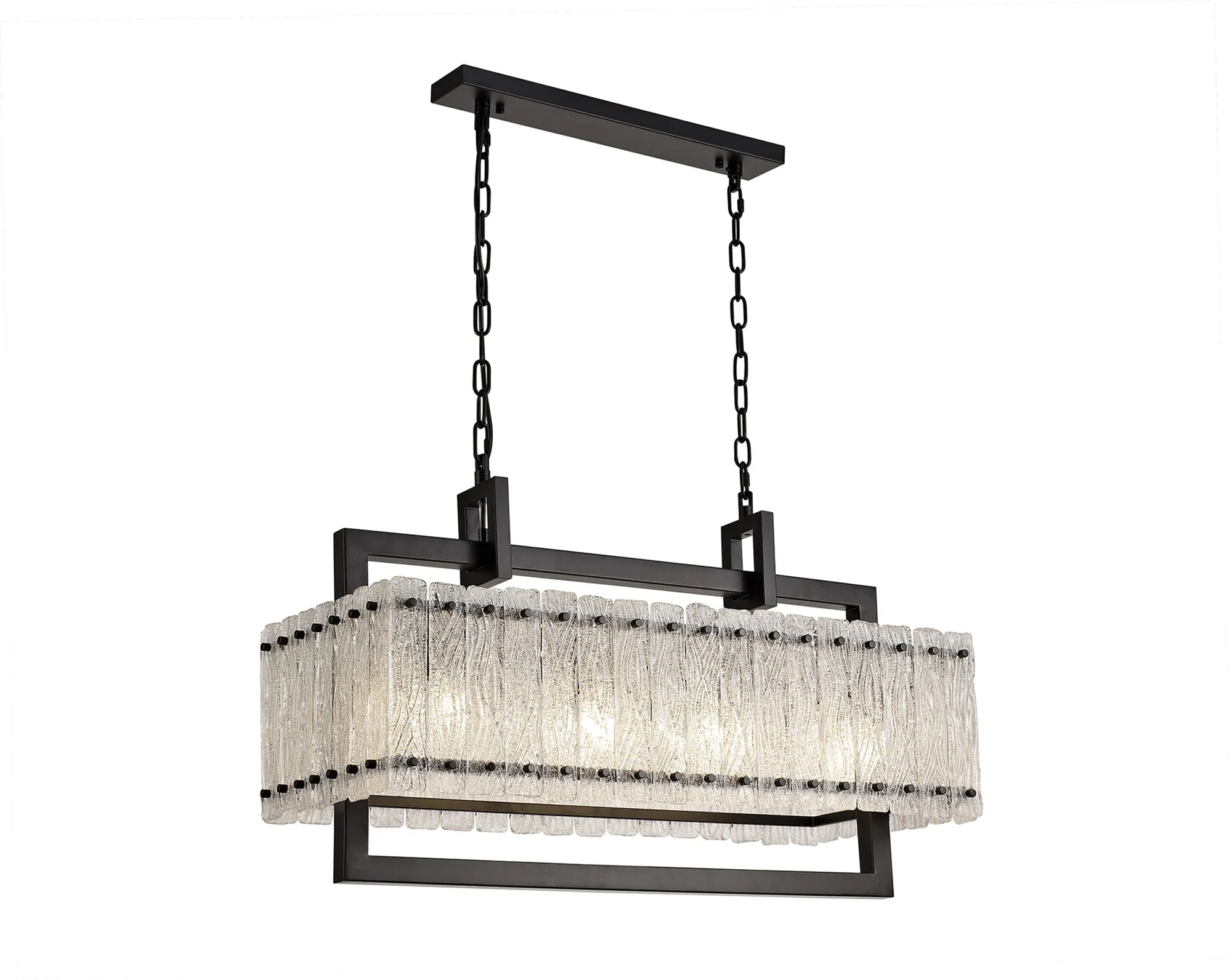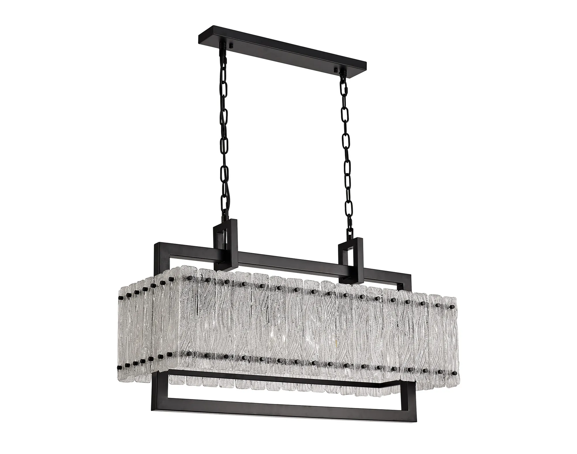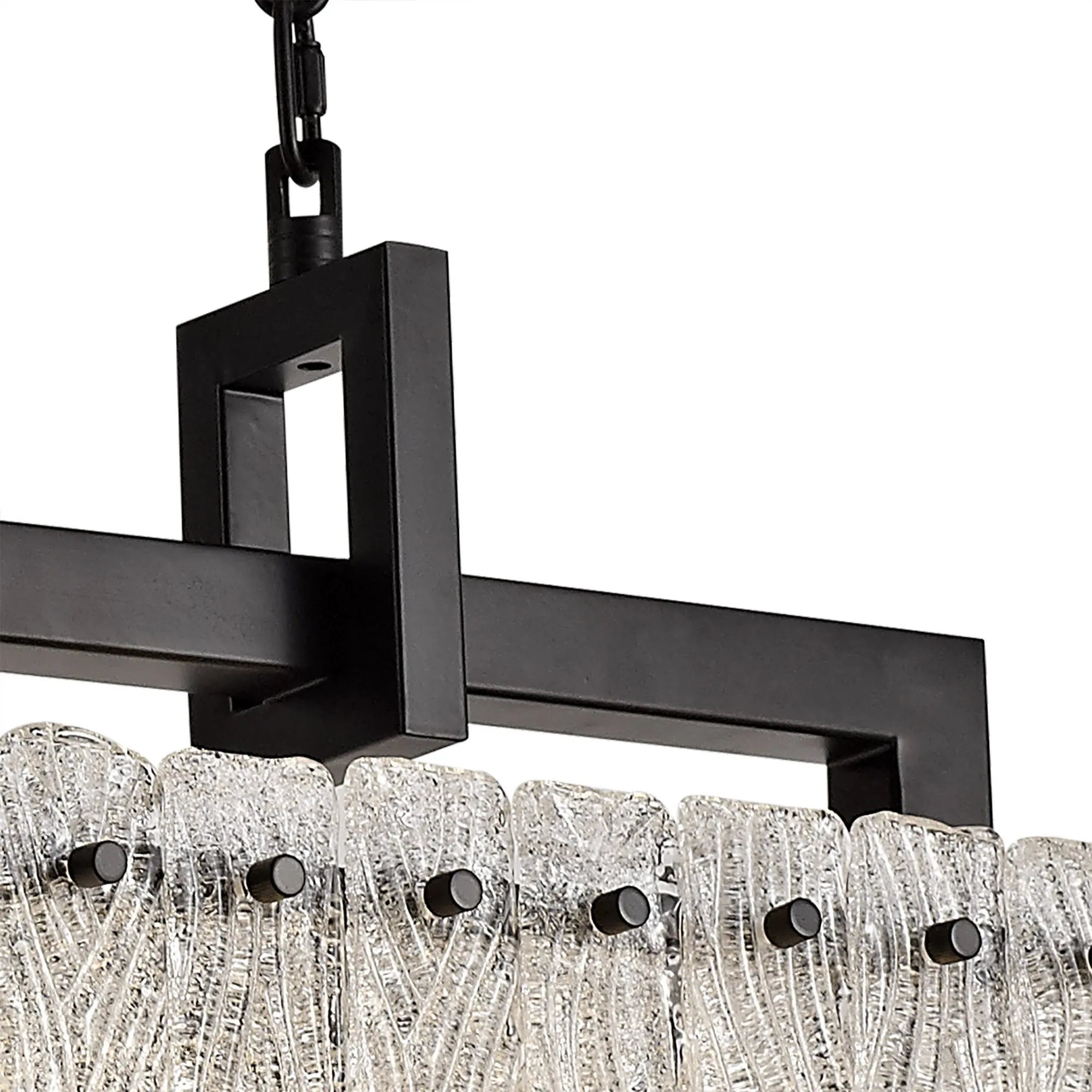 Botany Large Linear Pendant, 12 Light E27, Matt Black/Crystal Sand Glass Item Weight: 20.2kg