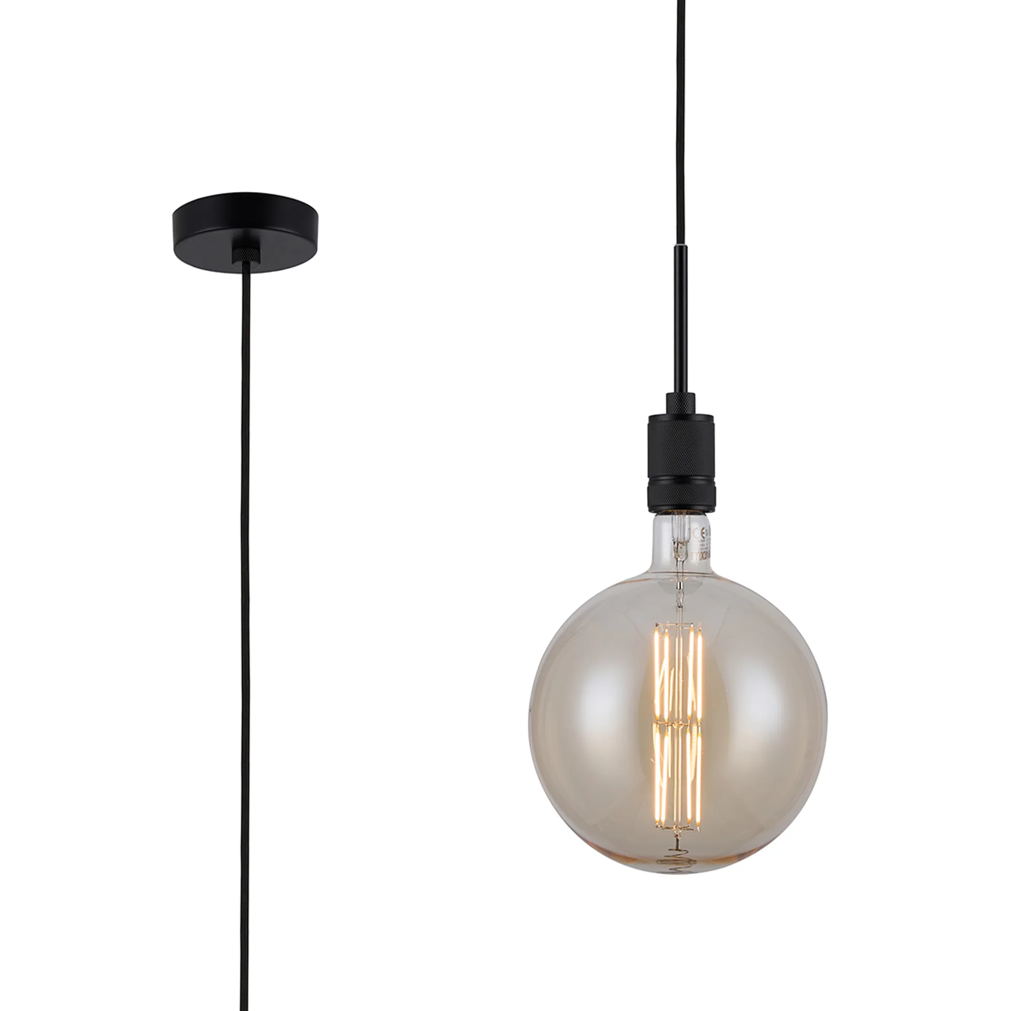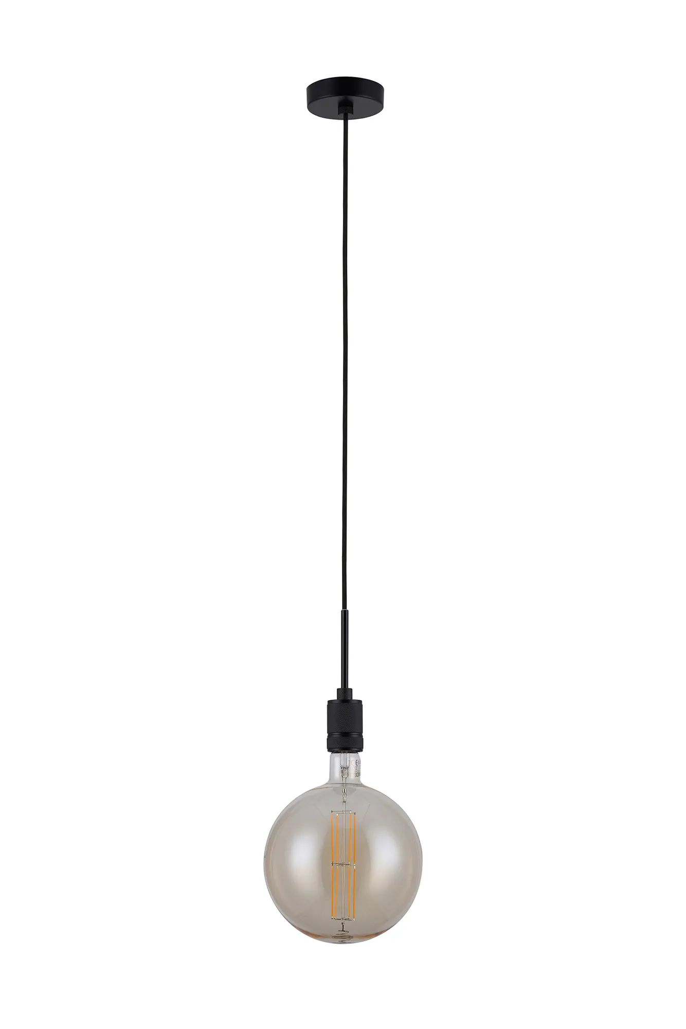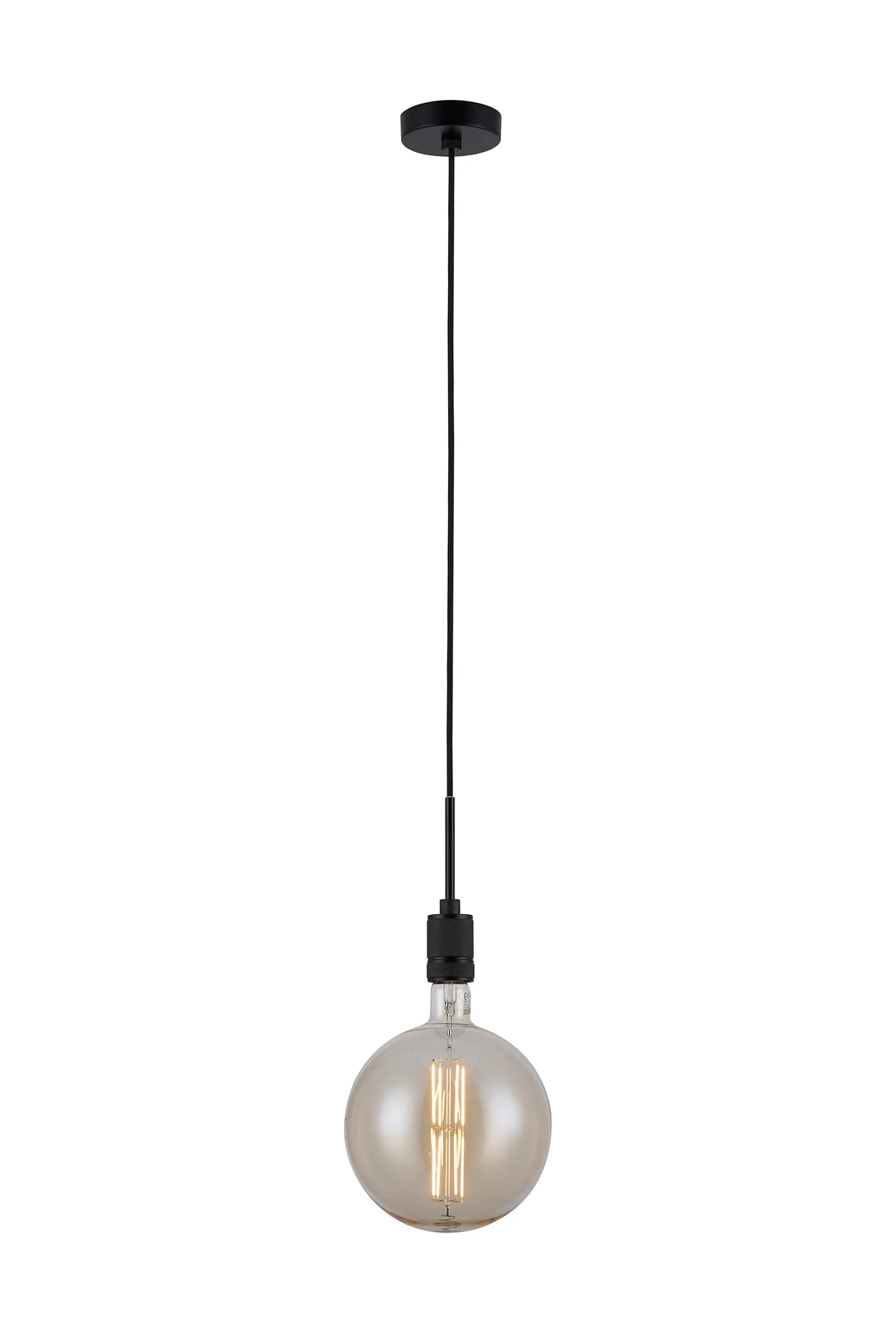 OTHER Burlington 20cm Knurled Pendant Light With Decorative Lamp Included, 1 x E27, 1800K, 630lm, Black/Amber