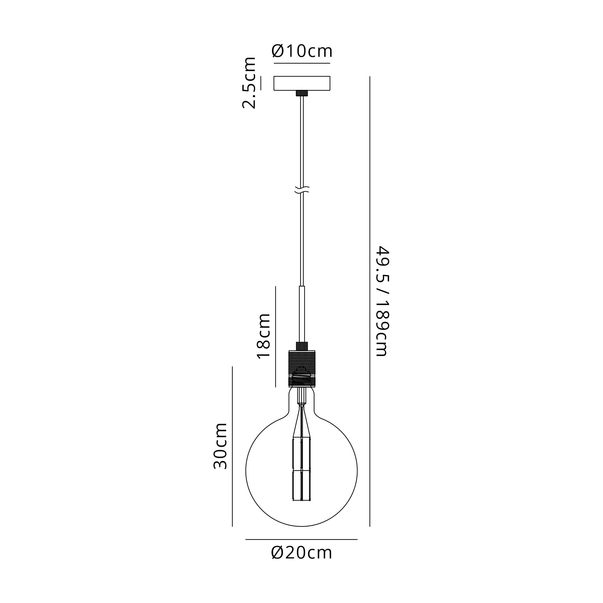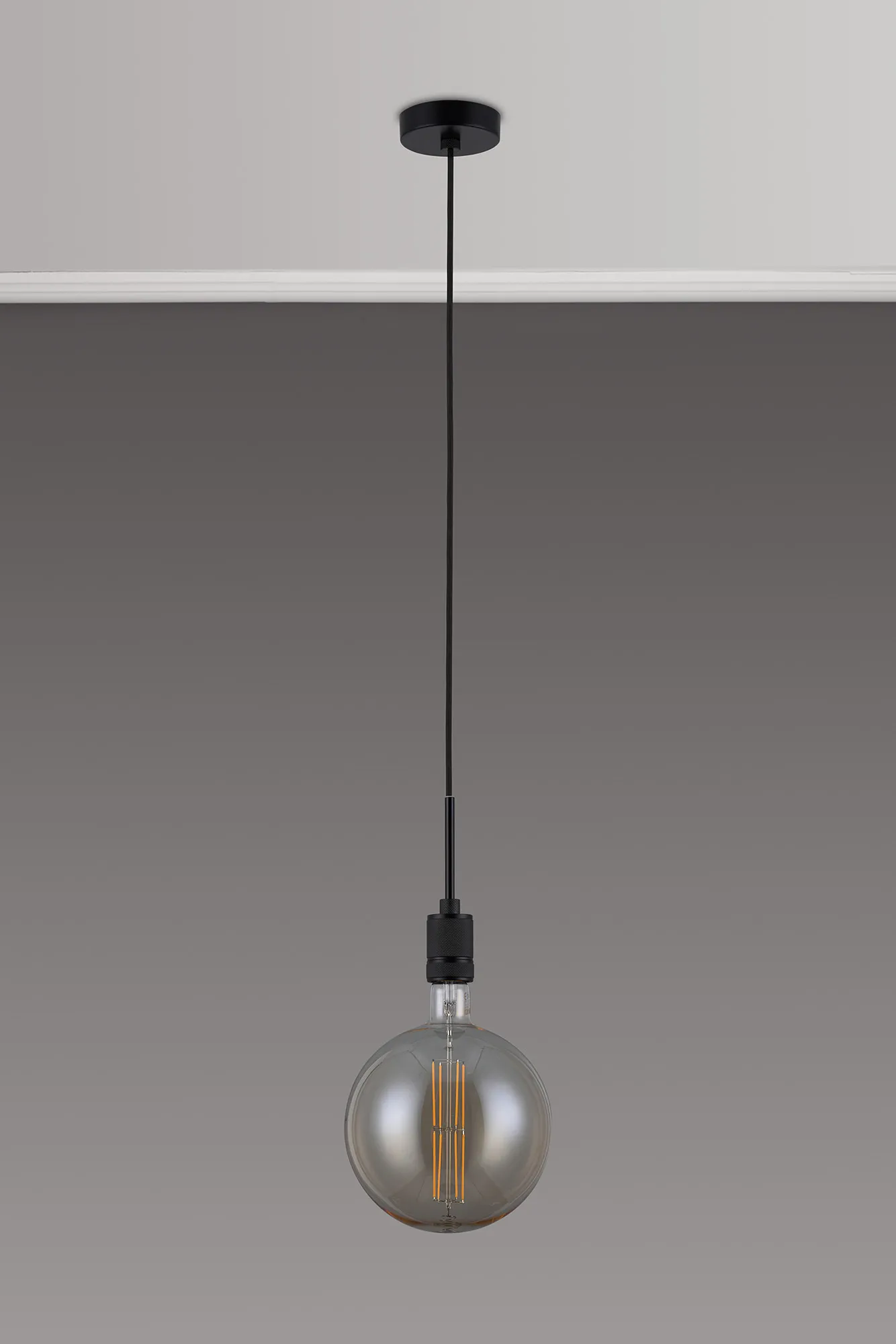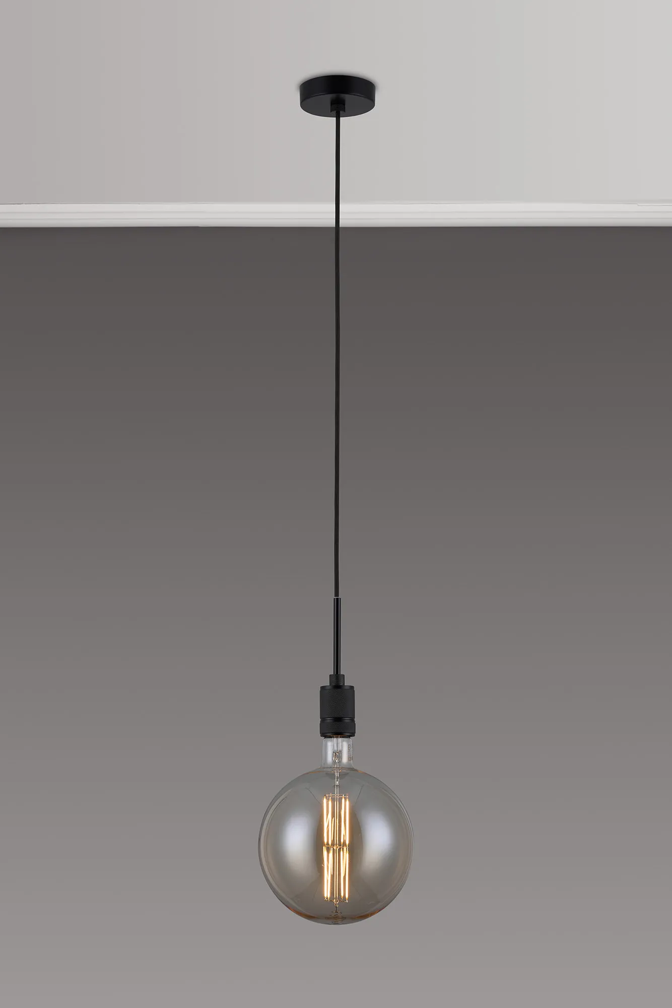 OTHER Burlington 20cm Knurled Pendant Light With Decorative Lamp Included, 1 x E27, 1800K, 630lm, Black/Amber