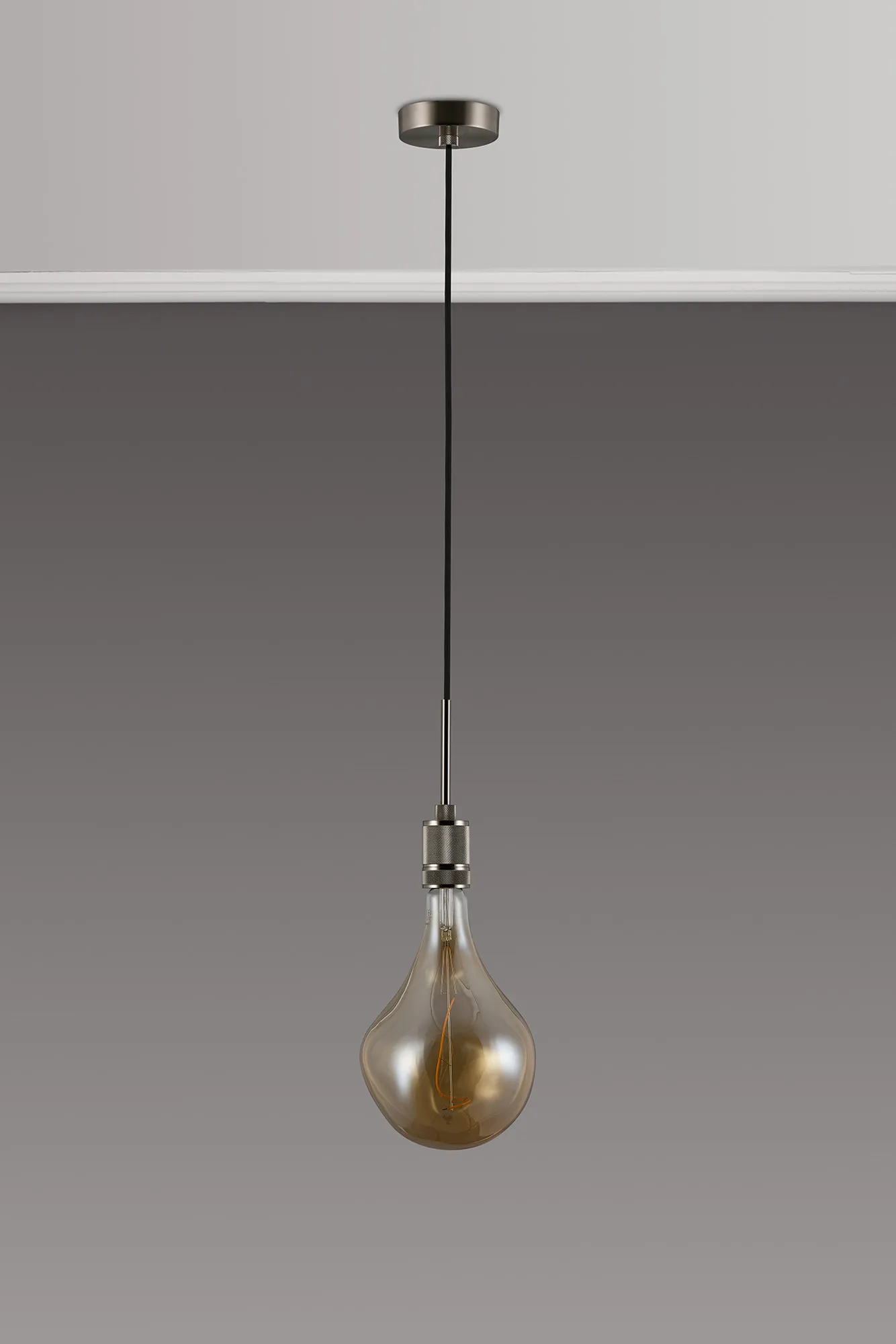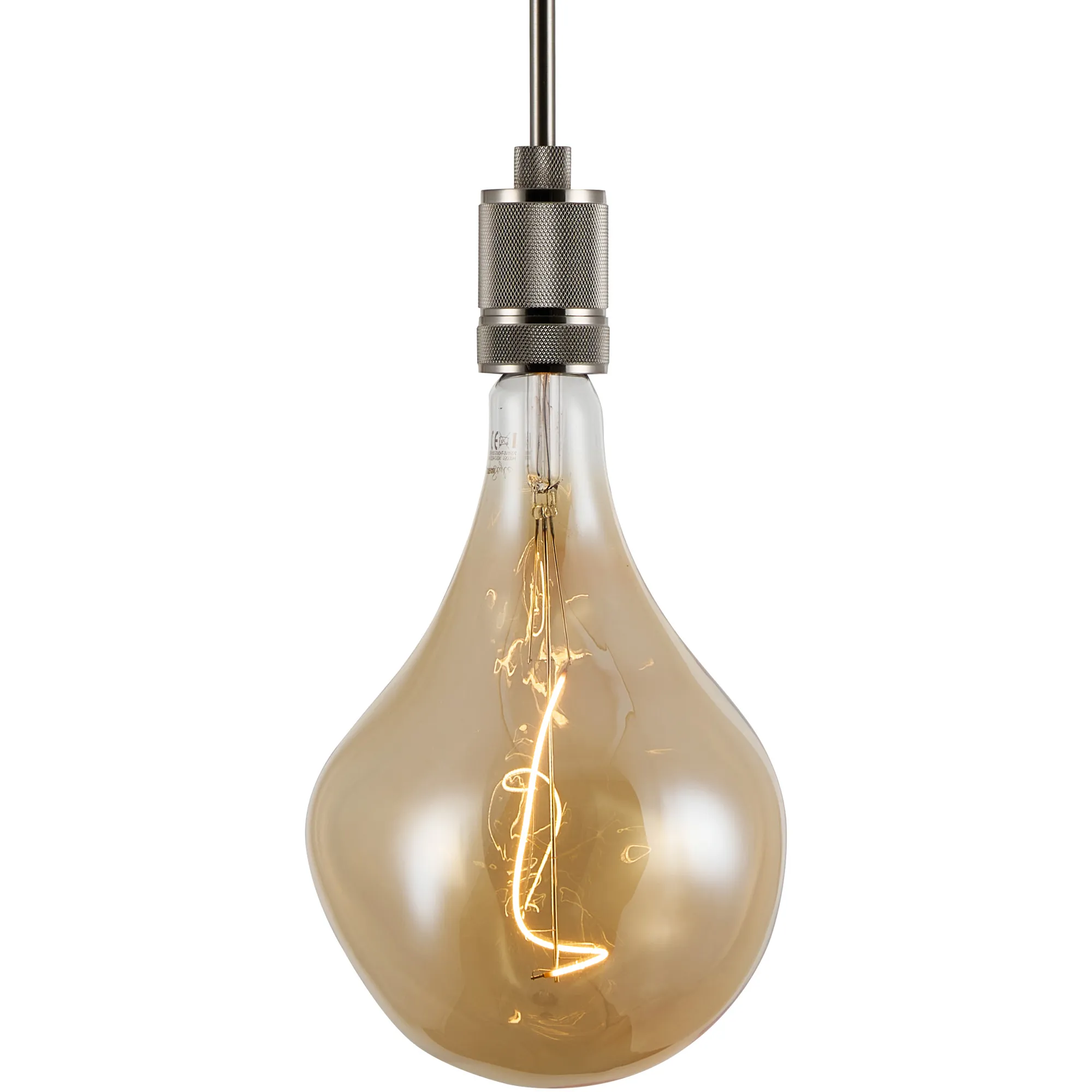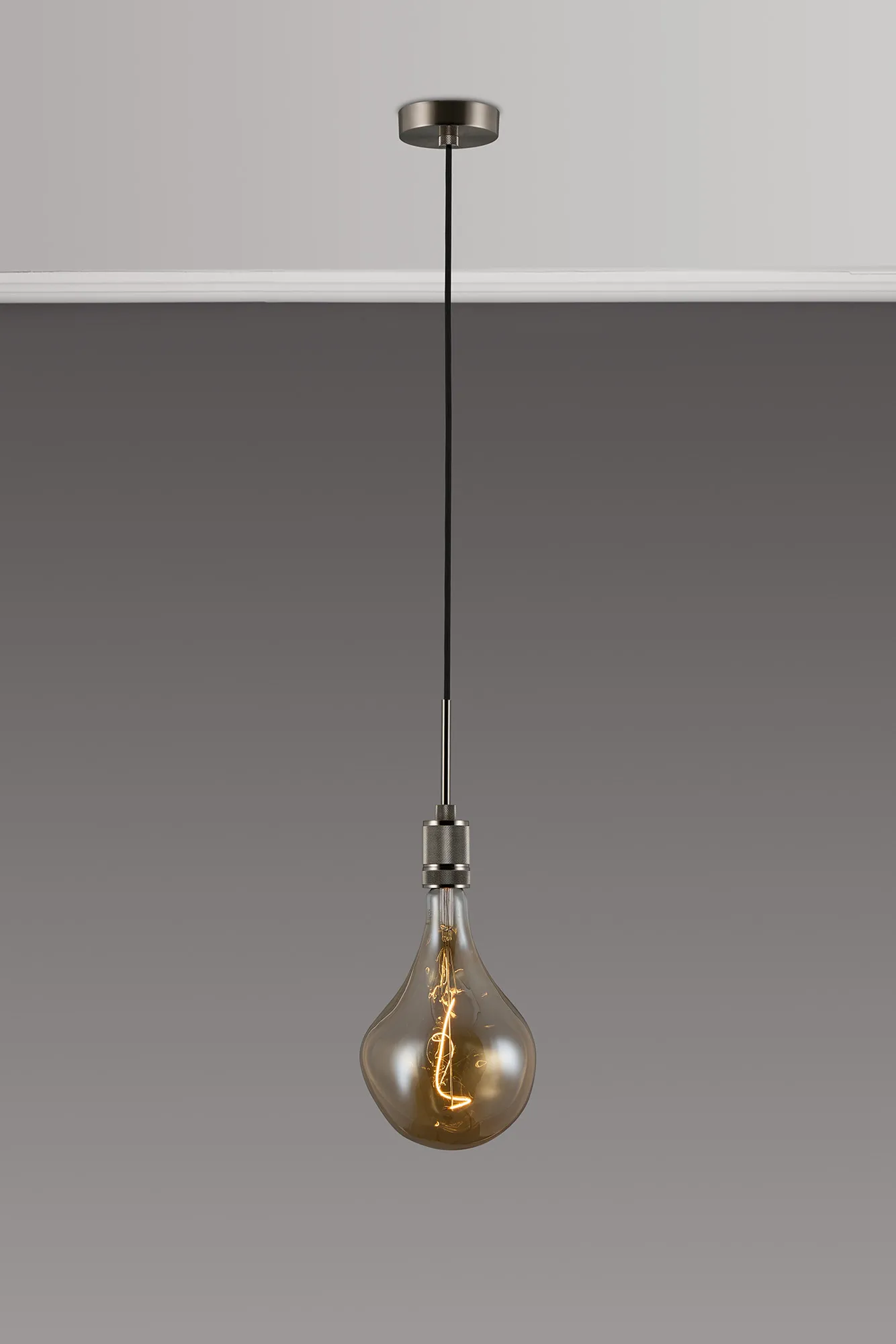 OTHER Burlington 16cm Knurled Pendant Light With Decorative Lamp Included, 1 x E27, 2100K, 200lm, Satin Nickel/Amber