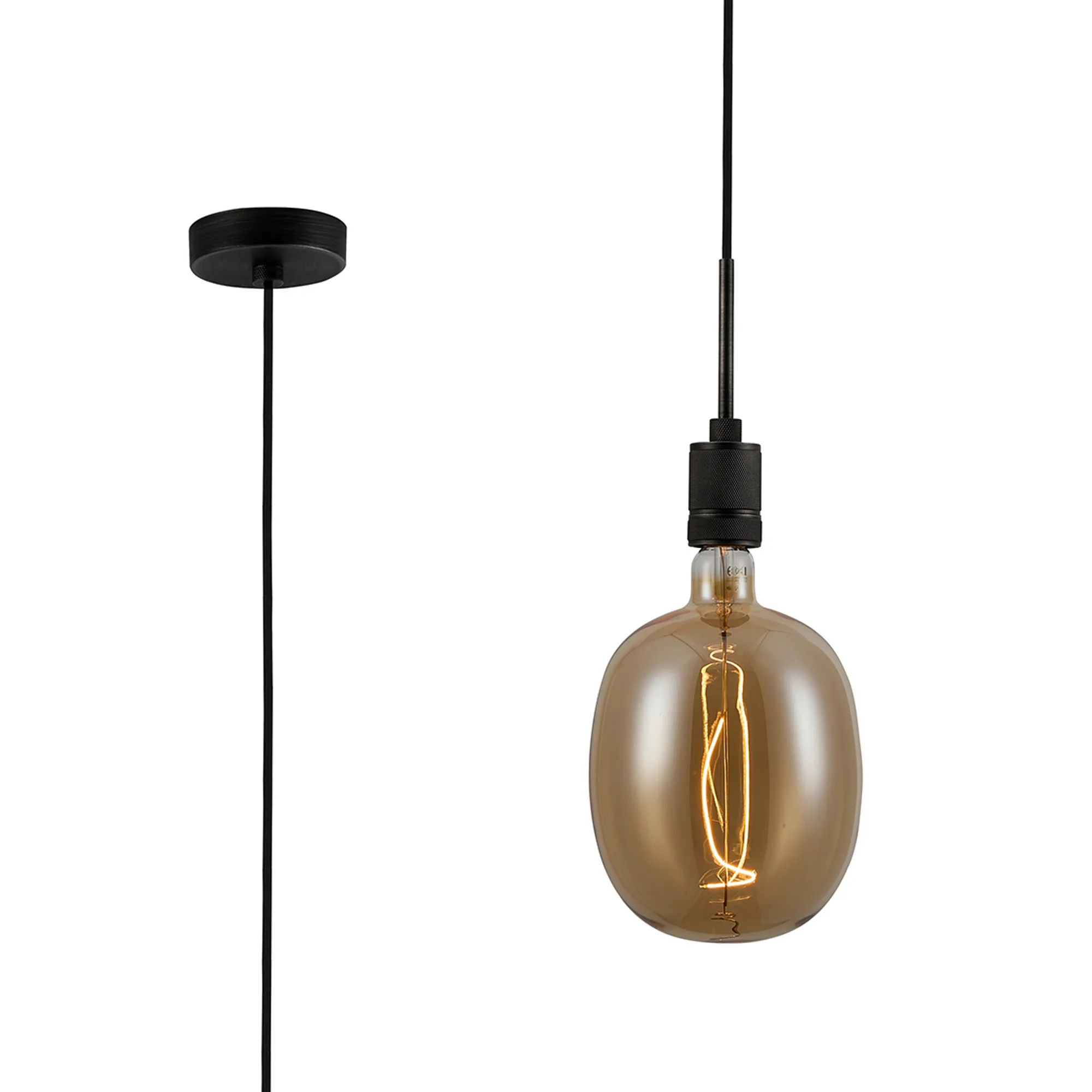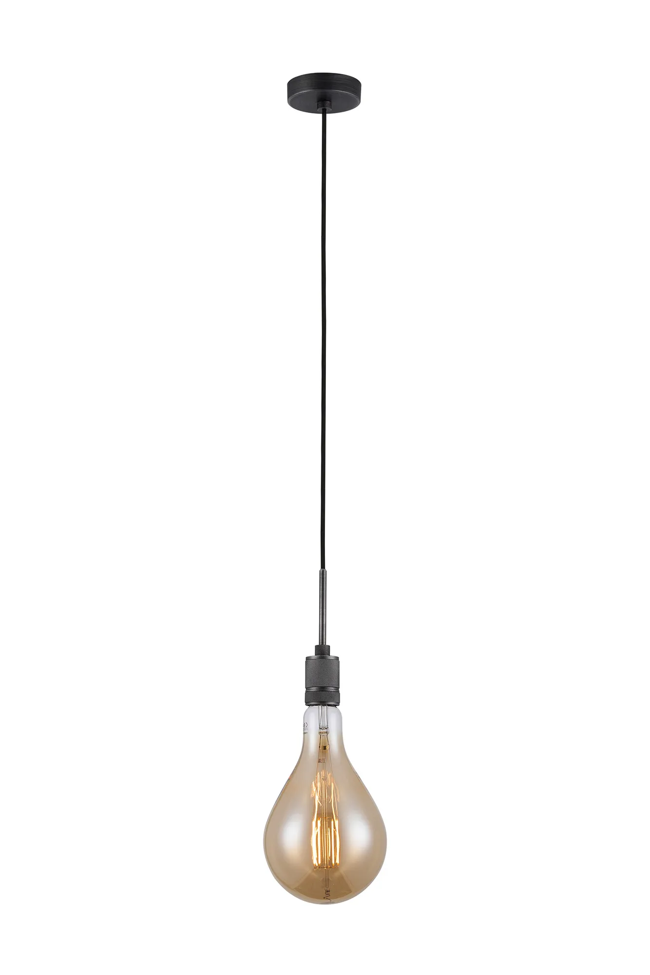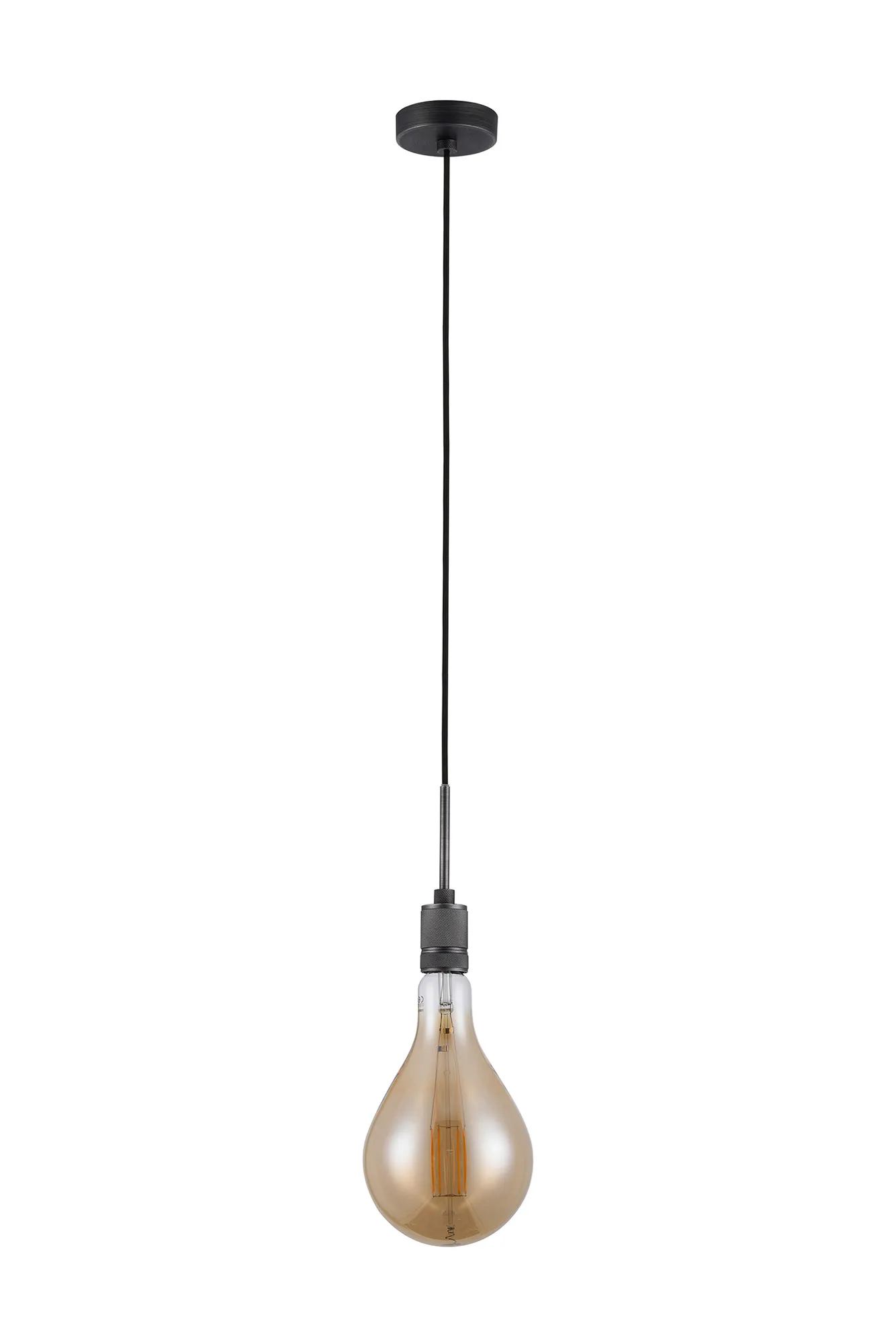 OTHER Burlington 16cm Knurled Pendant Light With Decorative Lamp Included, 1 x E27, 2100K, 200lm, Pewter/Amber