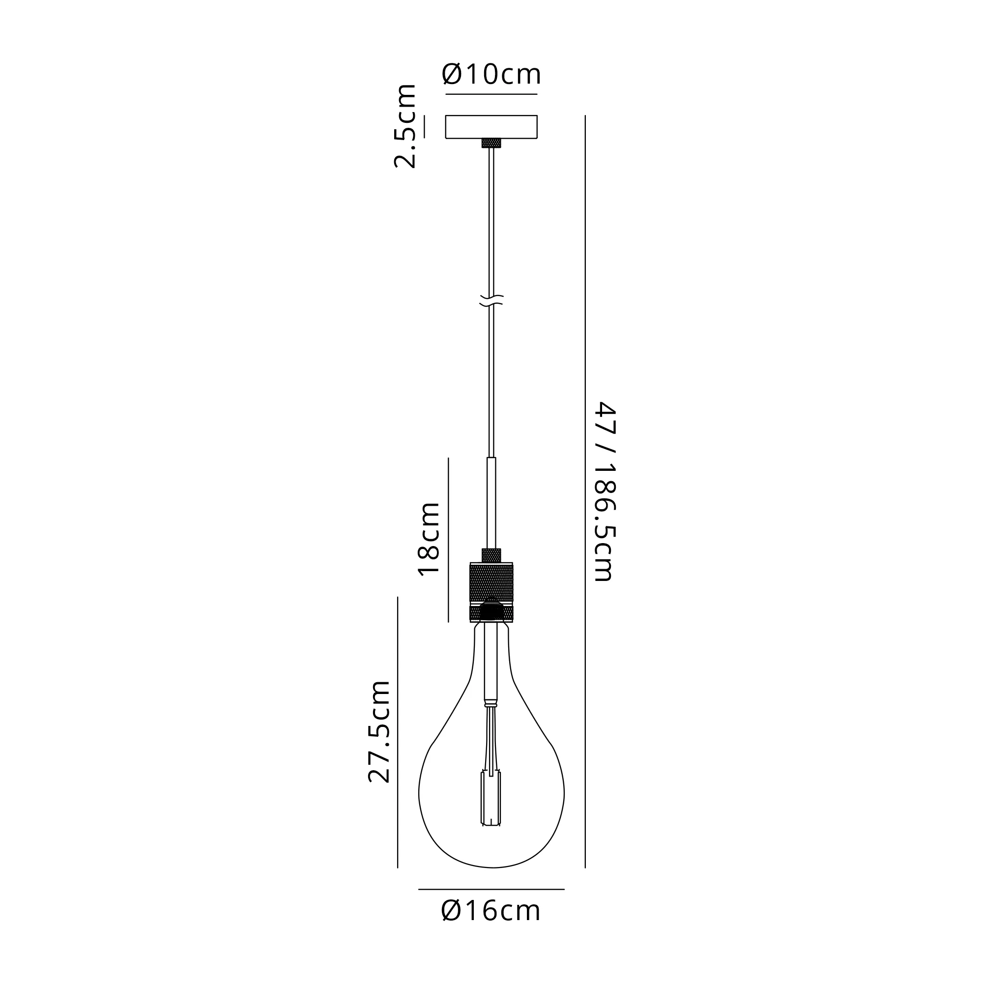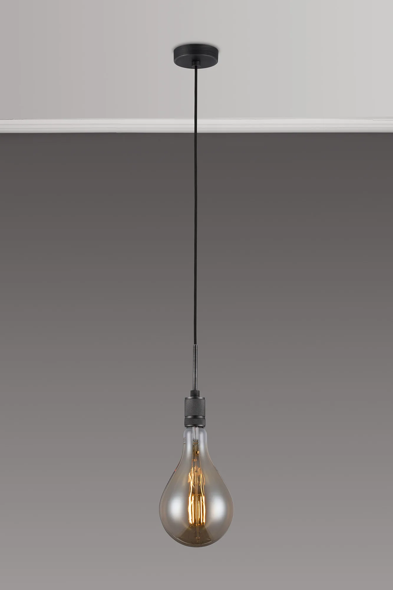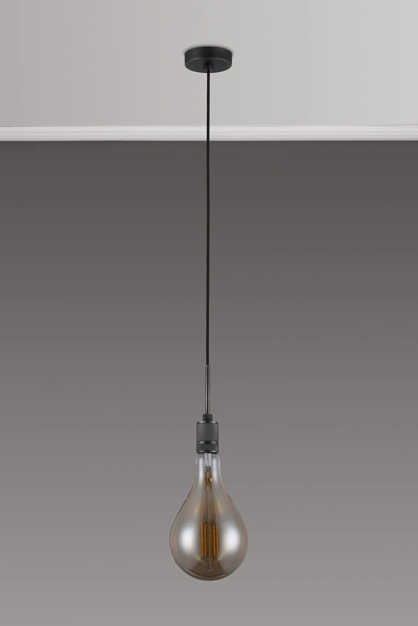 OTHER Burlington 16cm Knurled Pendant Light With Decorative Lamp Included, 1 x E27, 2100K, 200lm, Pewter/Amber