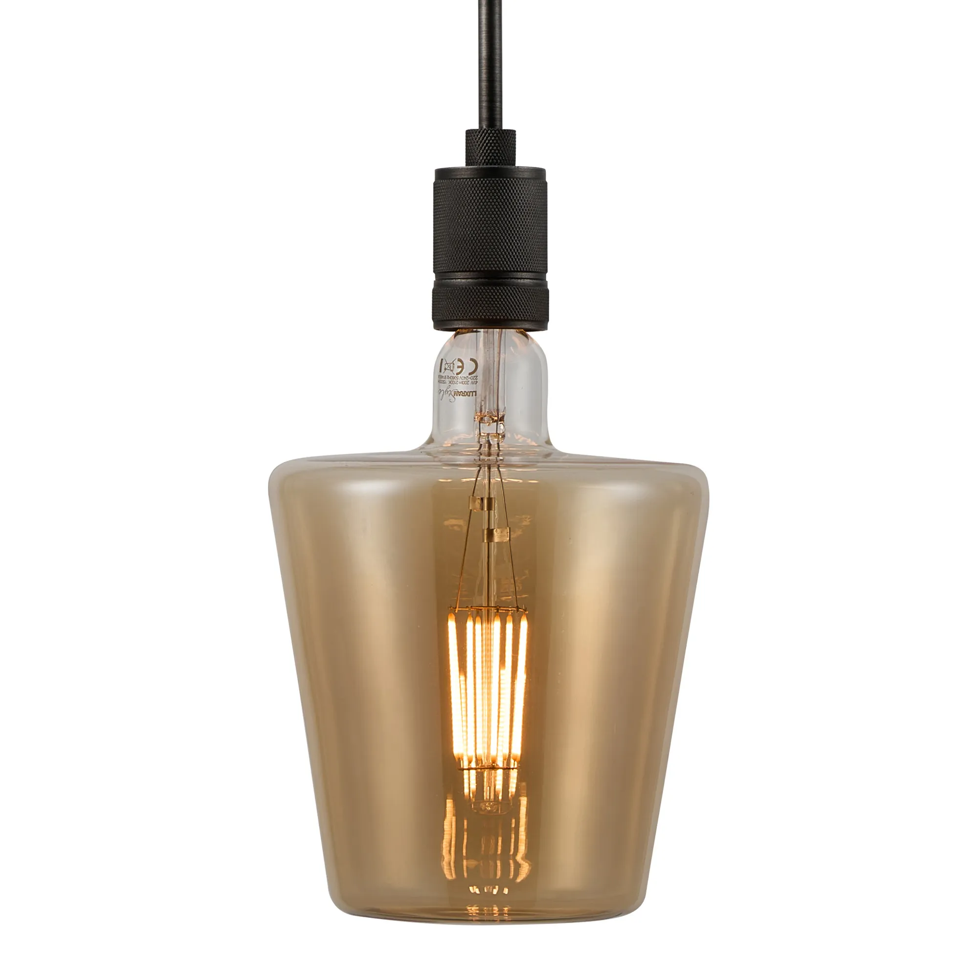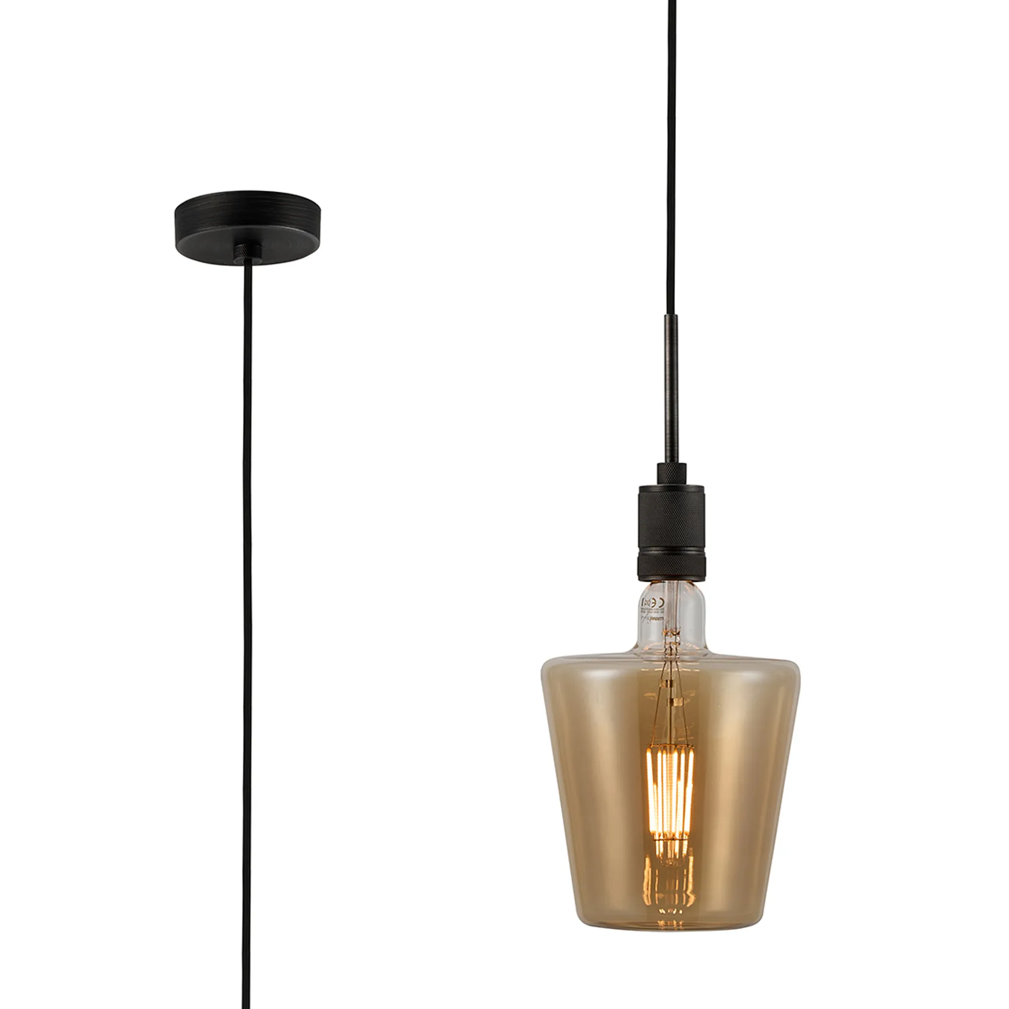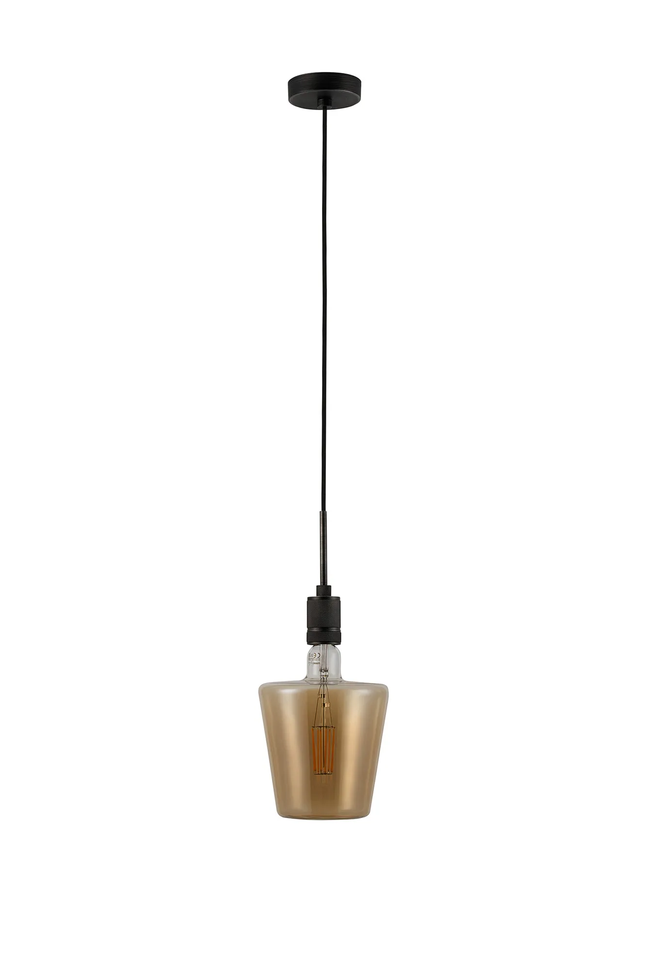 OTHER Burlington 25cm Knurled Pendant Light With Decorative Lamp Included, 1 x E27, 2100K, 200lm, Pewter/Amber