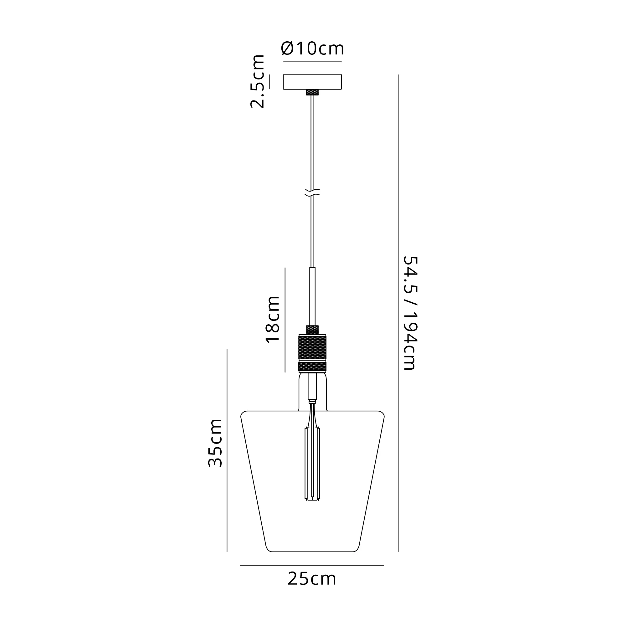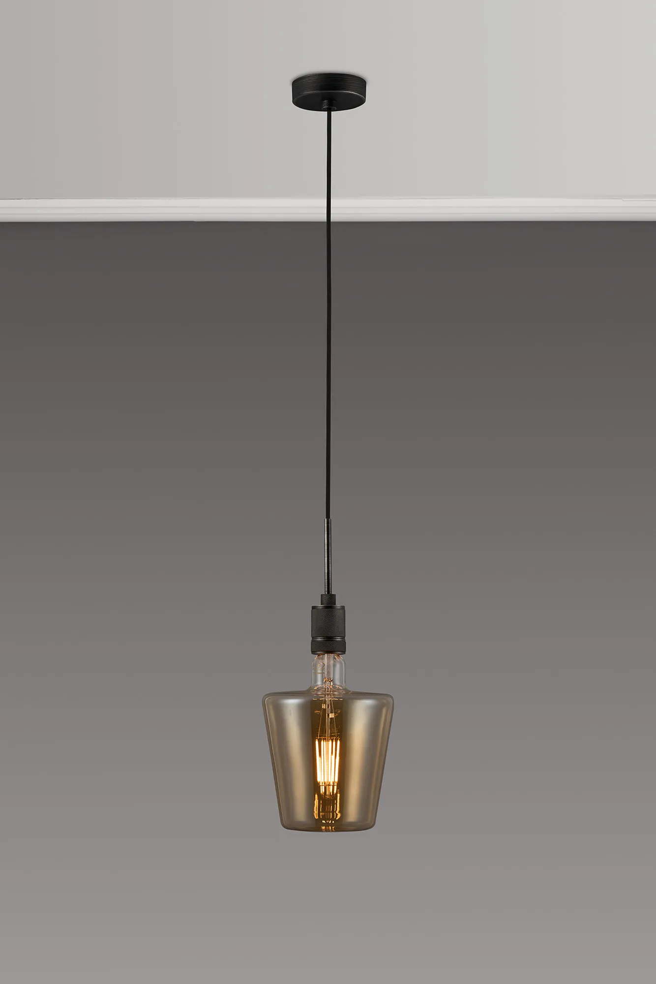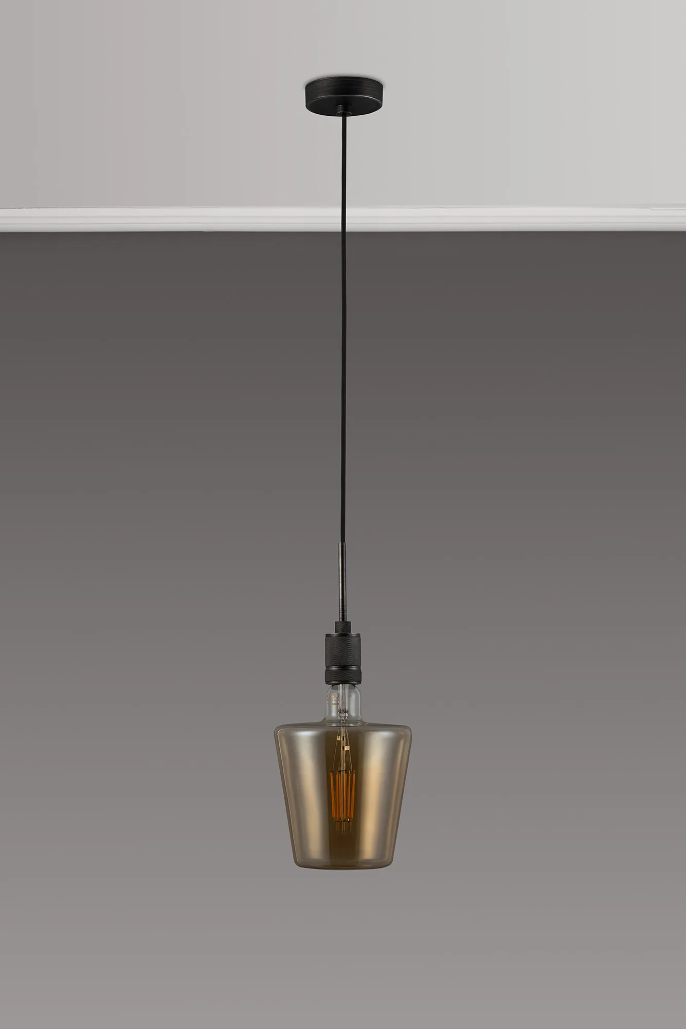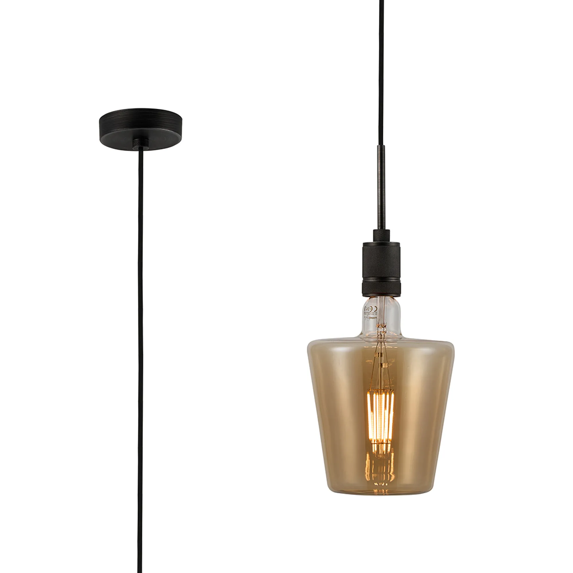 OTHER Burlington 25cm Knurled Pendant Light With Decorative Lamp Included, 1 x E27, 2100K, 200lm, Pewter/Amber