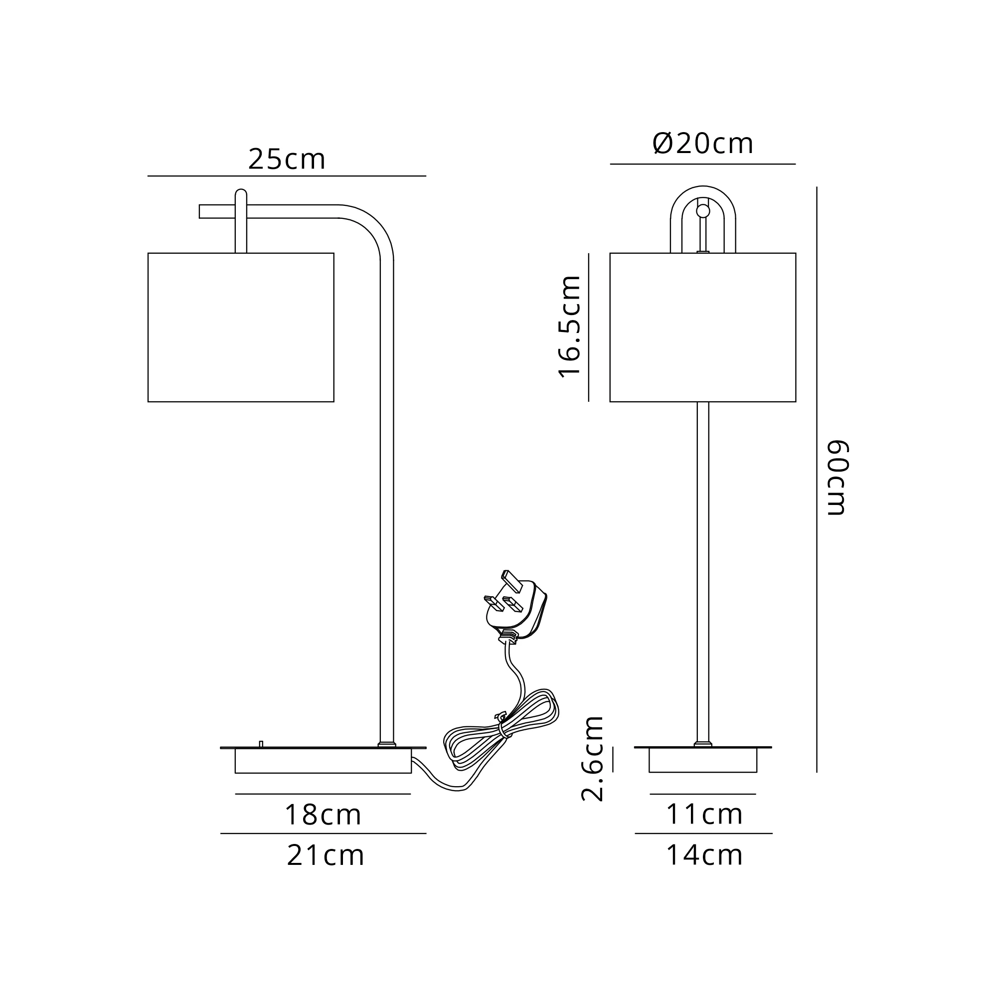 Kirby Table Lamp, Without Shade, 1 x E27, Black Chrome