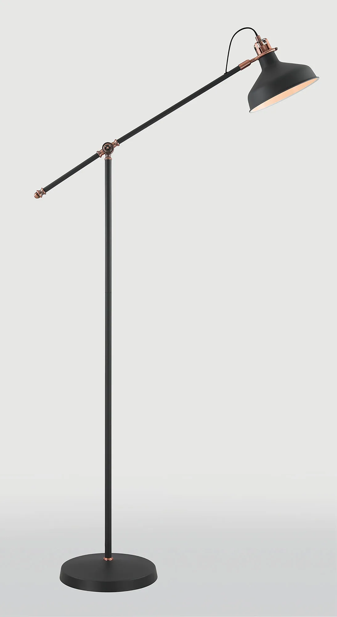 Gisborne Floor Lamp, 2 x E27, Graphite/Copper/White