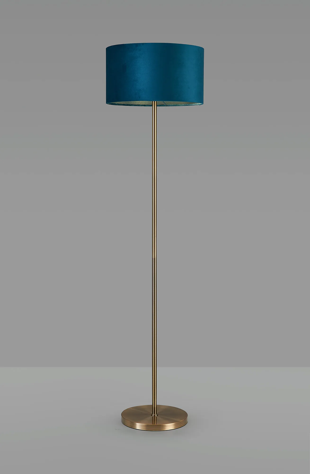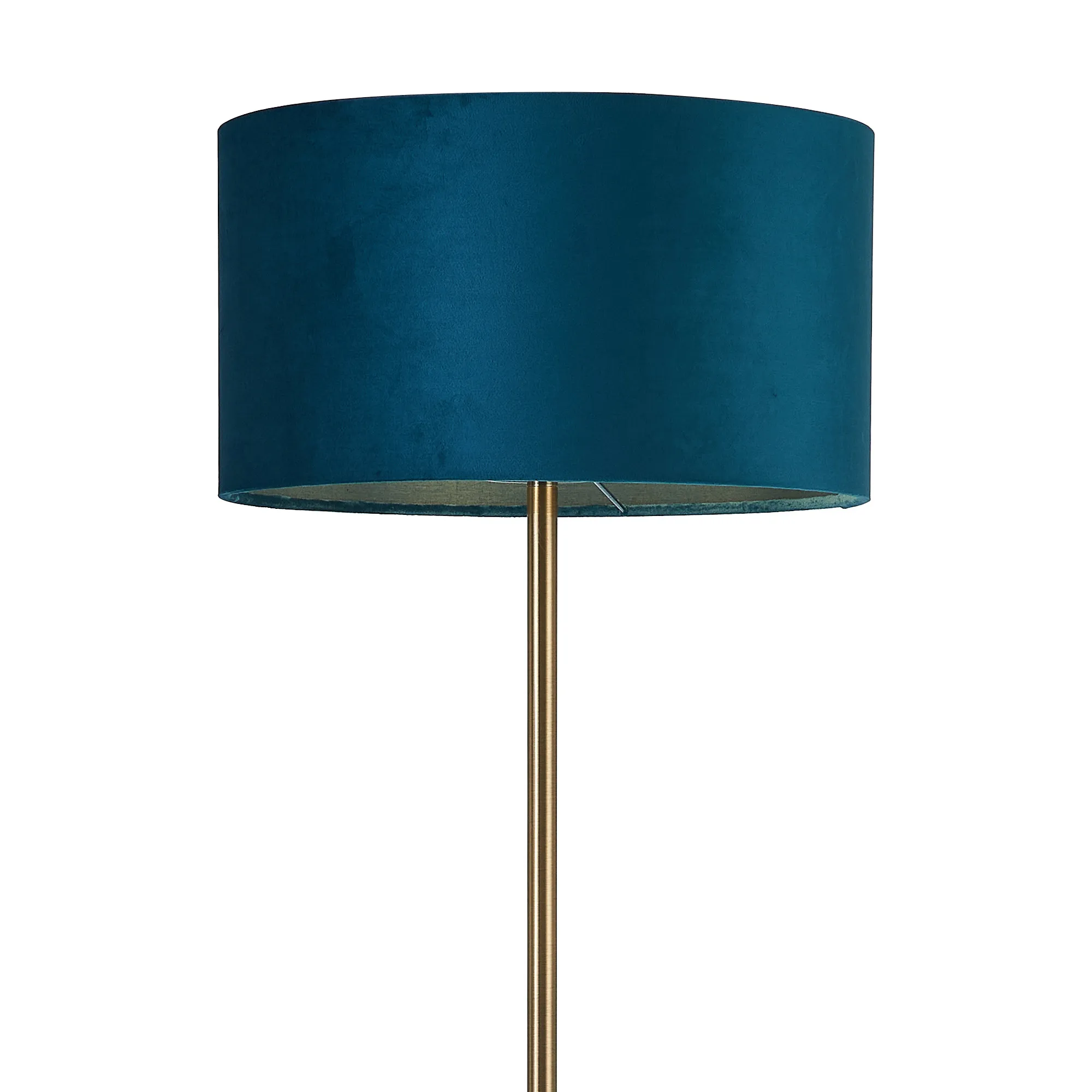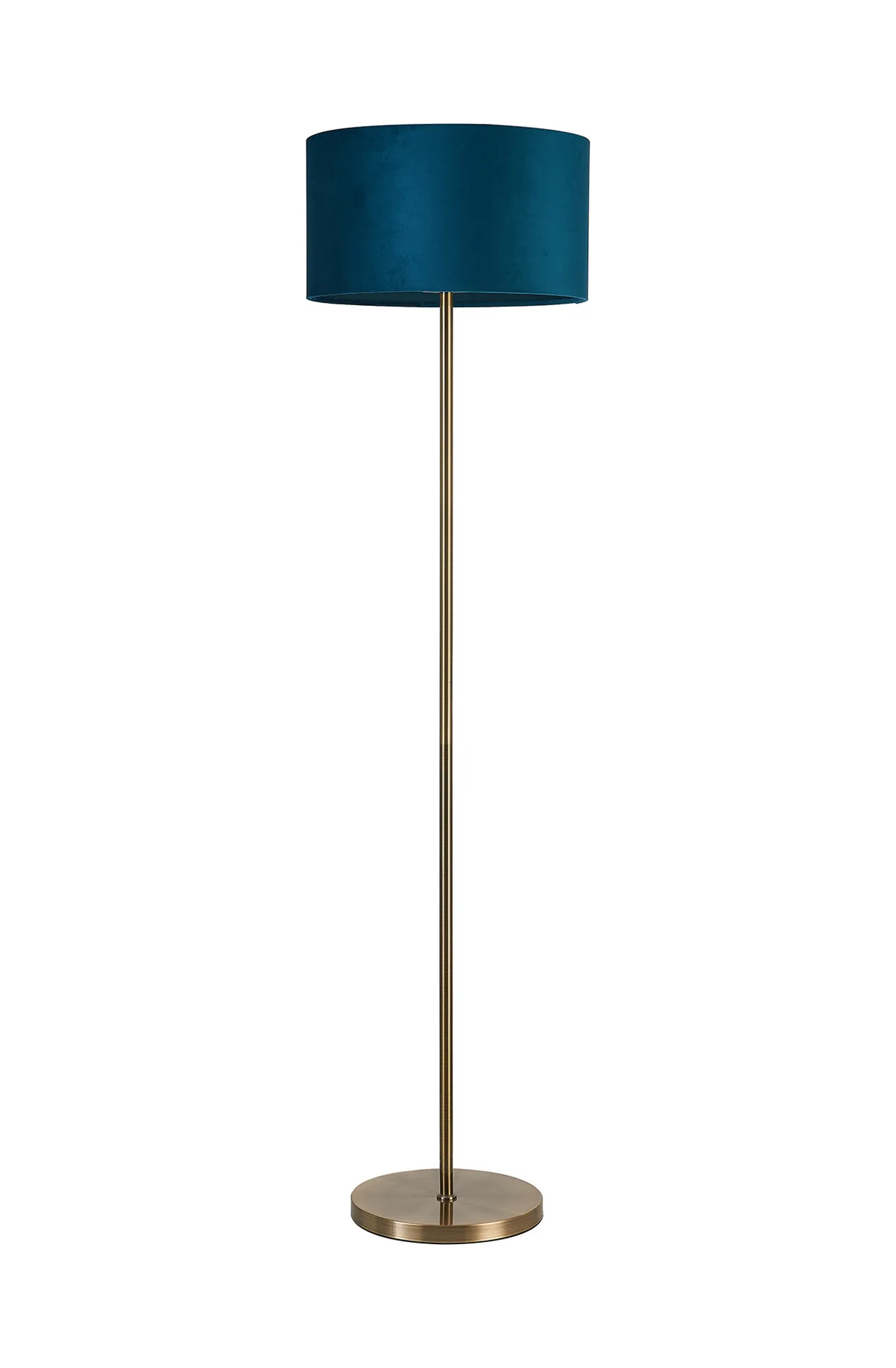 Colbourne Floor Lamp, 1 Light E27, Antique Brass/Teal 30x20cm Velvet Shade