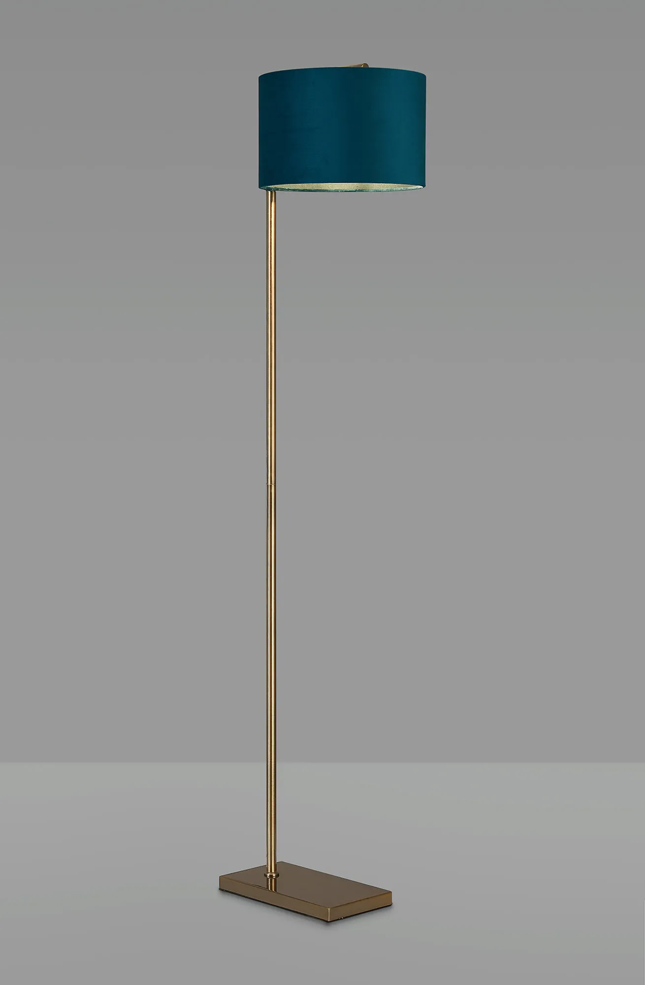 Colbourne Floor Lamp, 1 Light E27, Antique Brass/Teal 40x22cm Velvet Shade