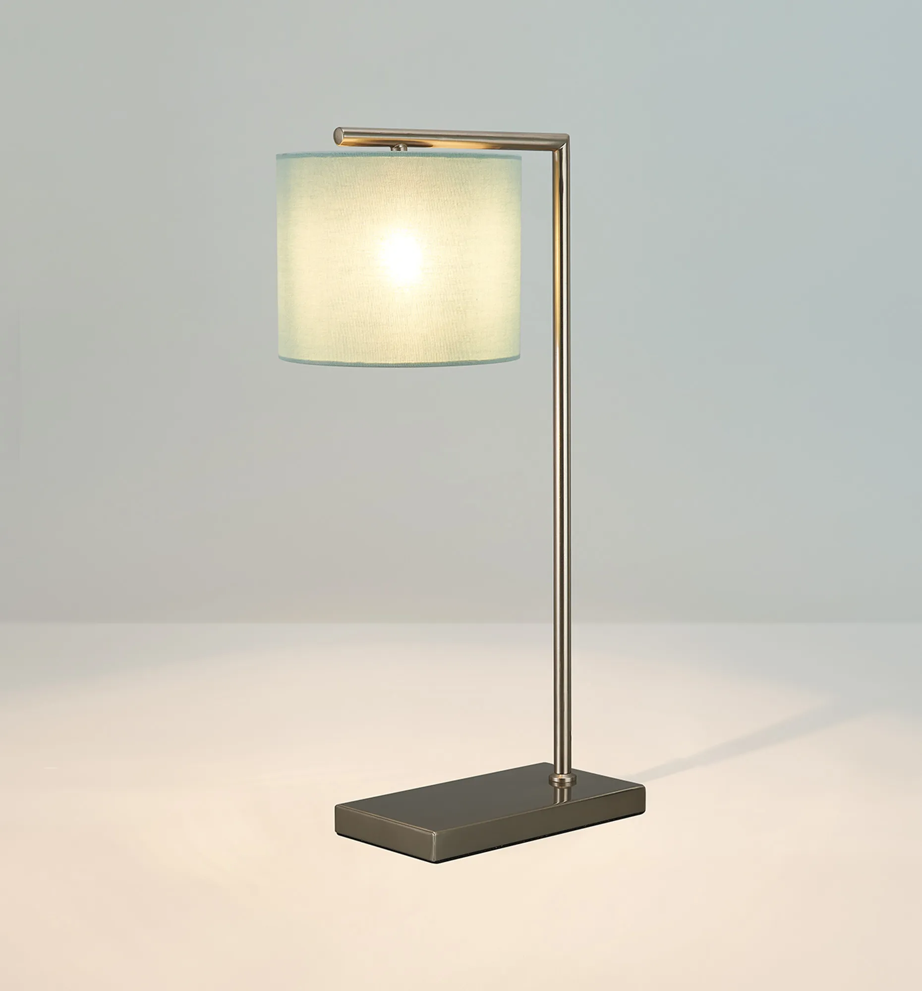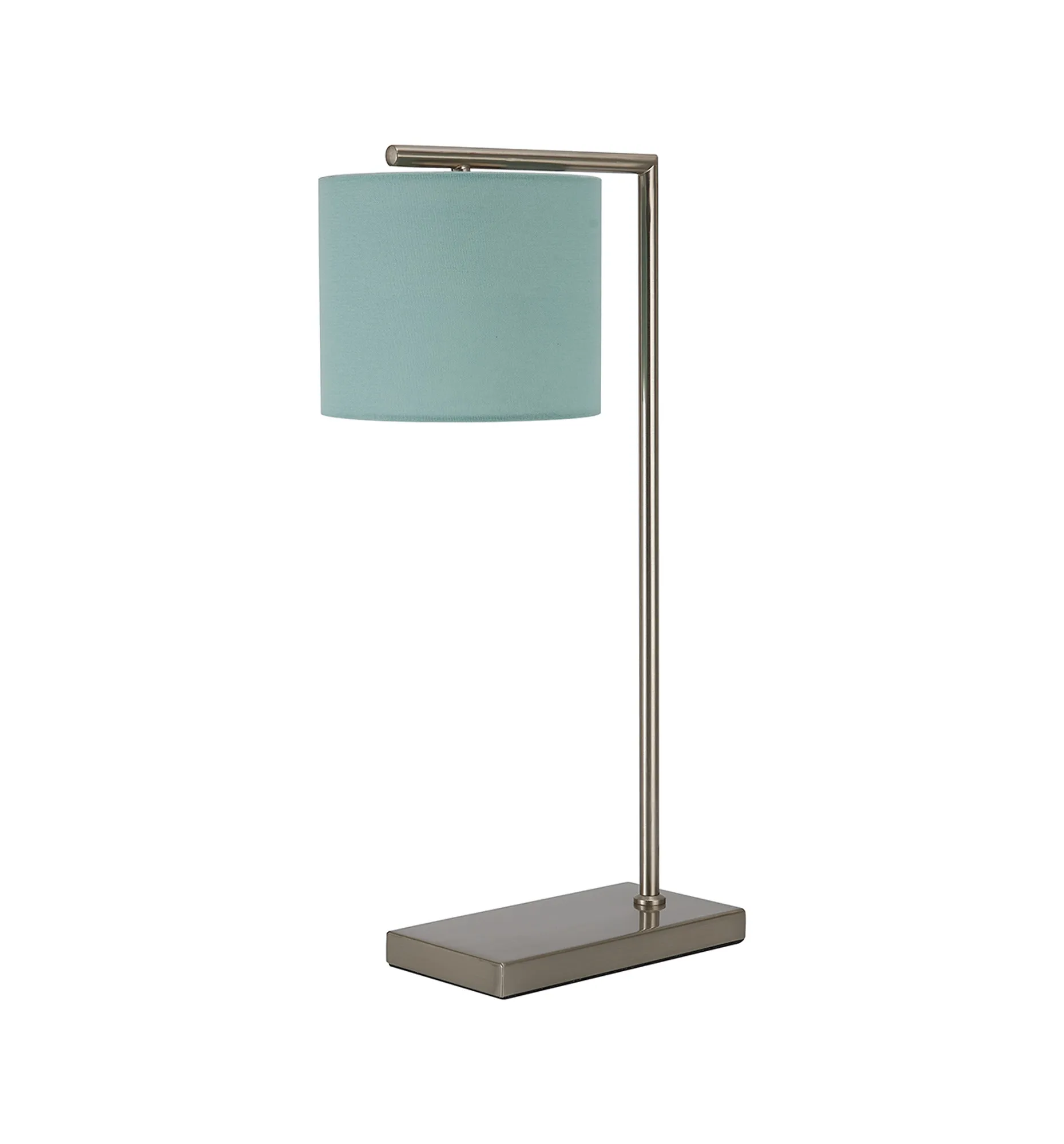 Colbourne Floor Lamp, 1 Light E27, Satin Nickel/Duck Egg 30x20cm Linen Shade