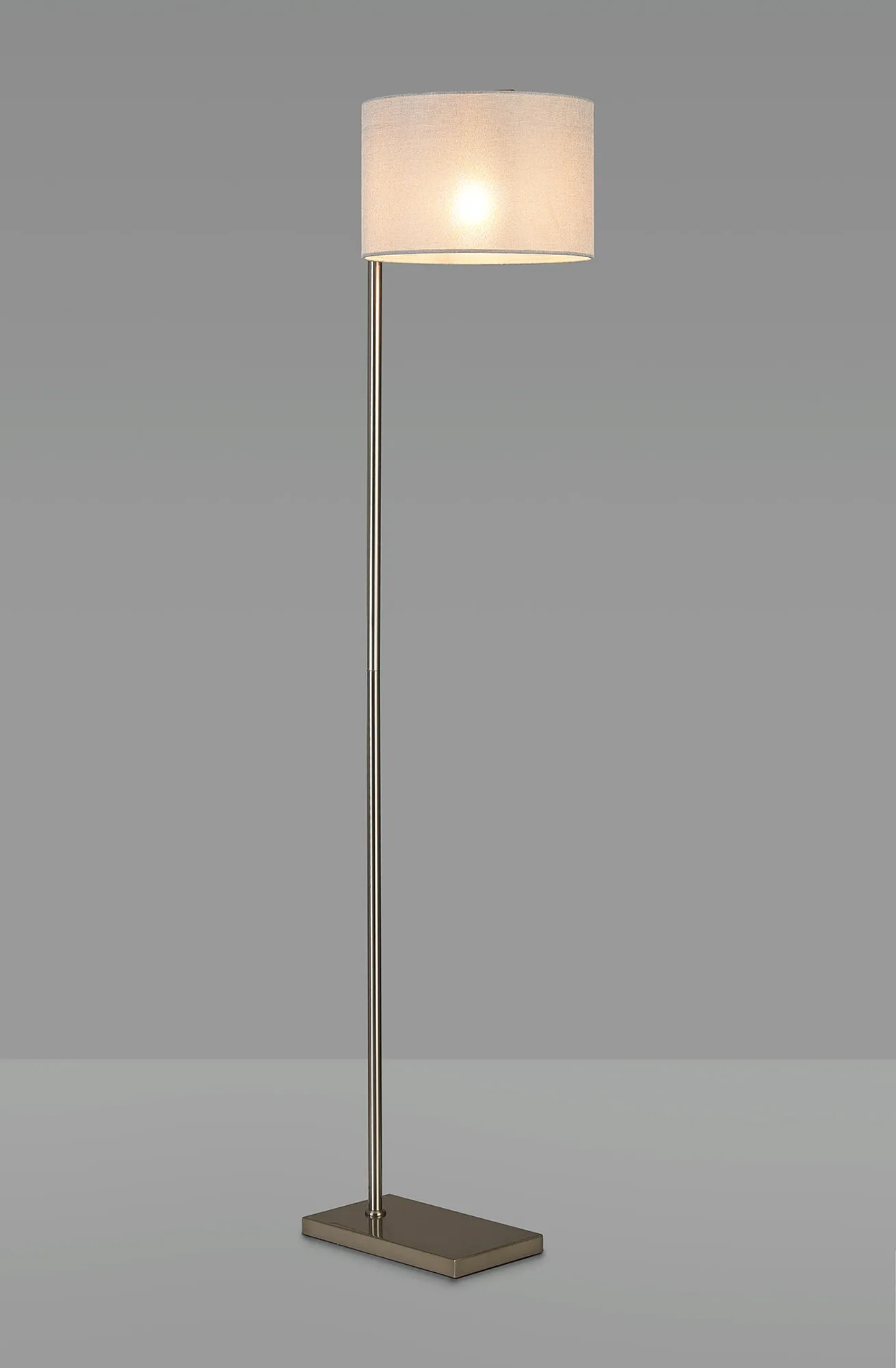 Colbourne Table Lamp, 1 Light E27, Satin Nickel/Cement 20x16.5cm Linen Shade