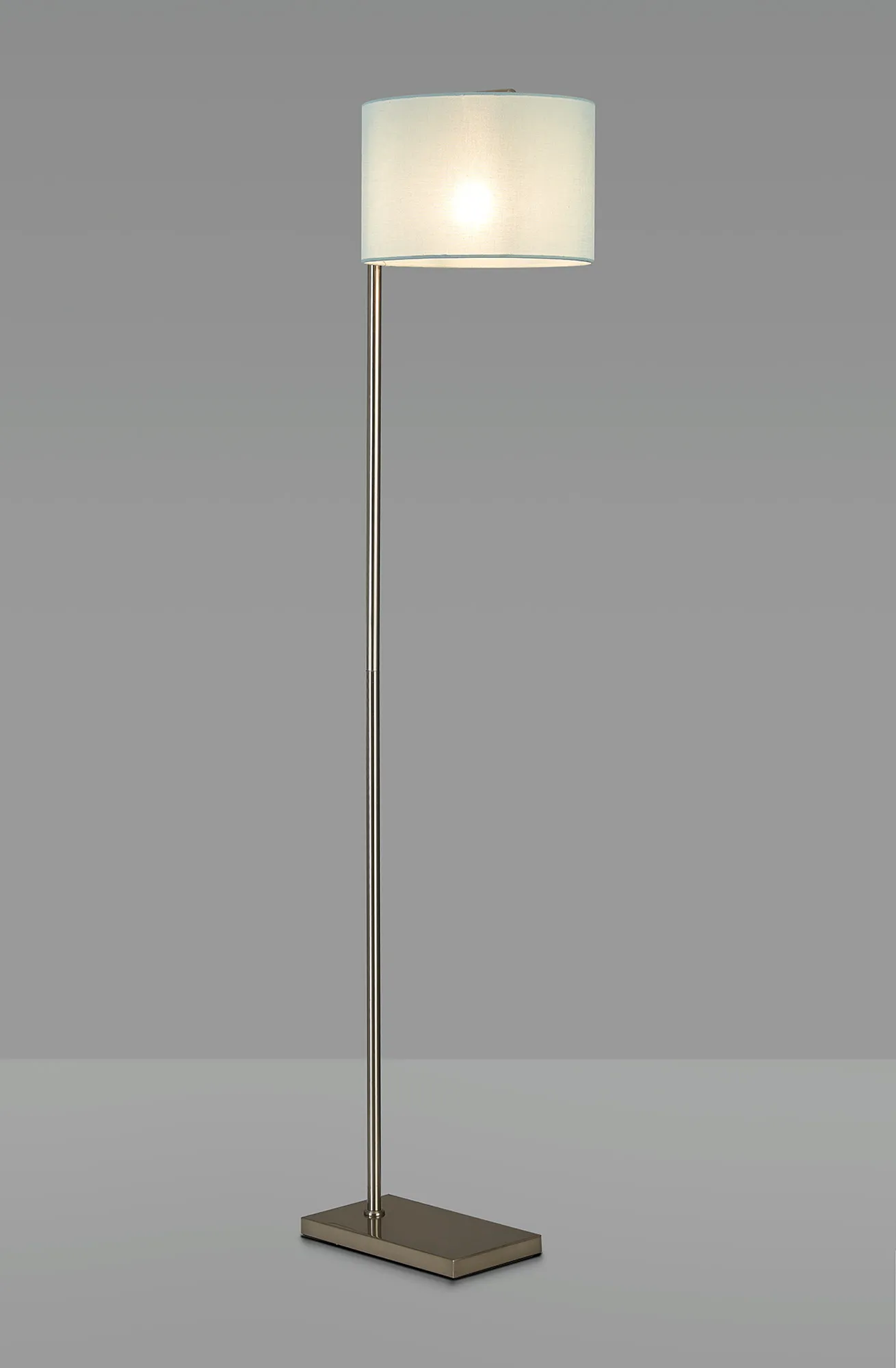 Colbourne Table Lamp, 1 Light E27, Satin Nickel/Duck Egg 20x16.5cm Linen Shade